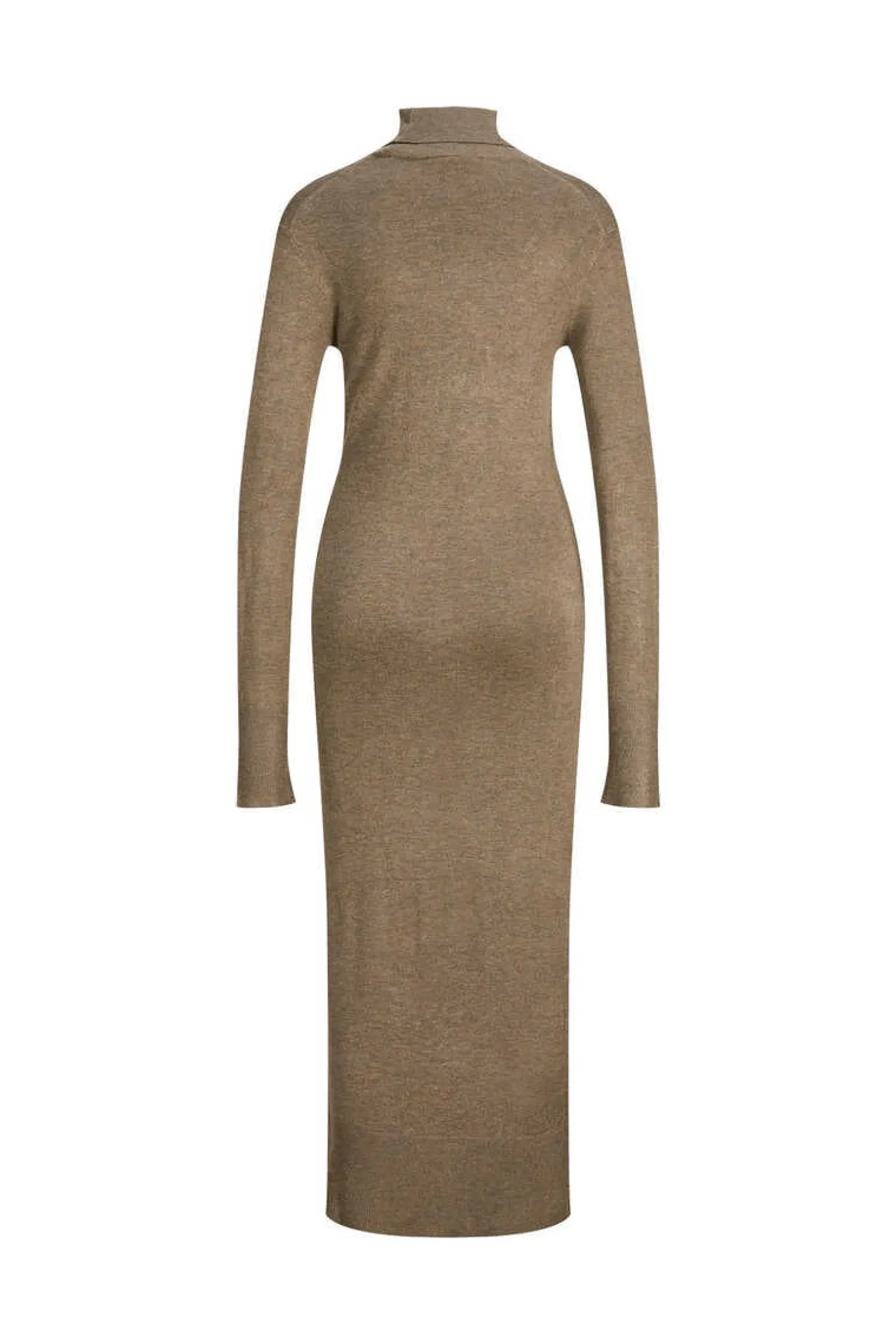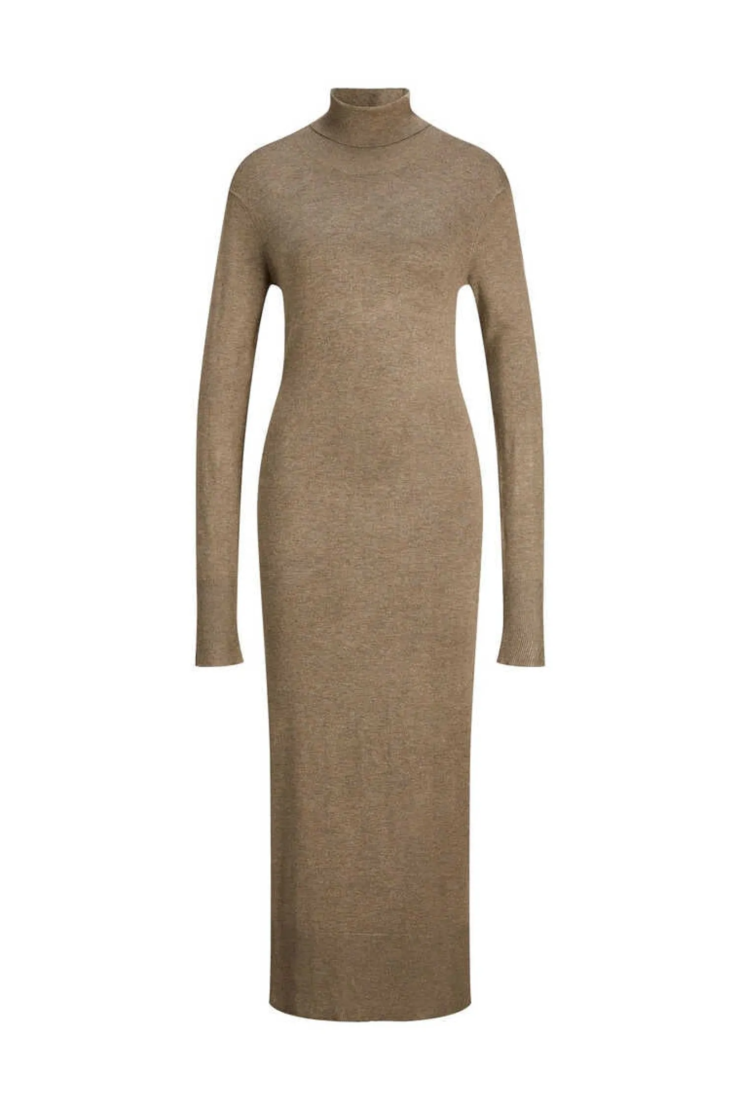 Vestido Midi Slim Fit Com Gola Dobrada E Manga Comprida. Tecido De Malha. Estilo Casual E Facil De Usar Todo O Dia.