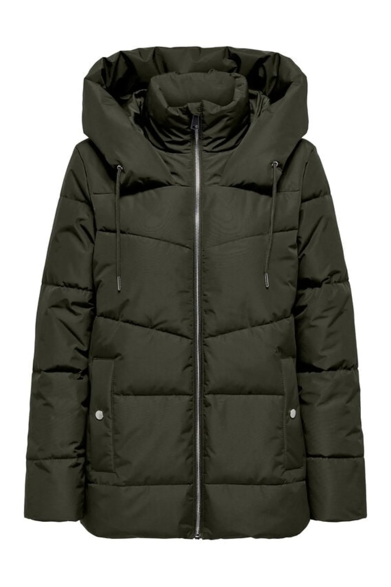 Casaco Acolchoado Com Gola Alta E Capuz Com Cordao Ajustavel. Fecho-Eclair Frontal. Manga Comprida. Dois Bolsos Laterais Funcionais Com Botao.