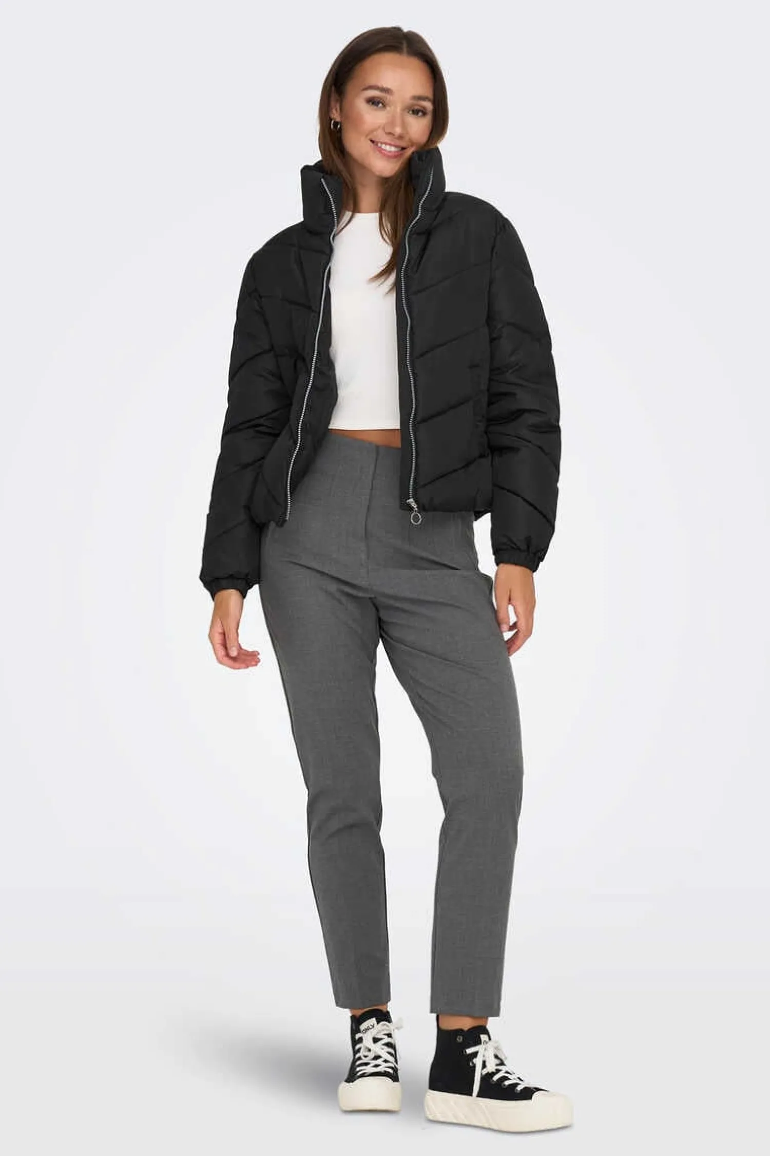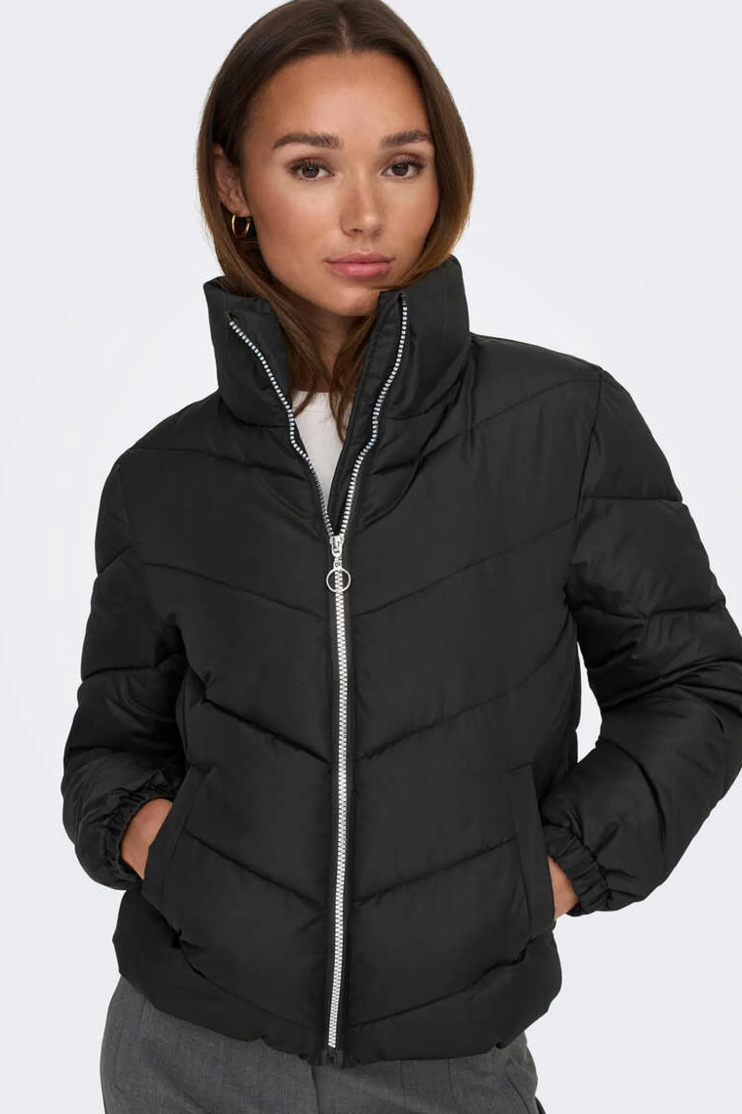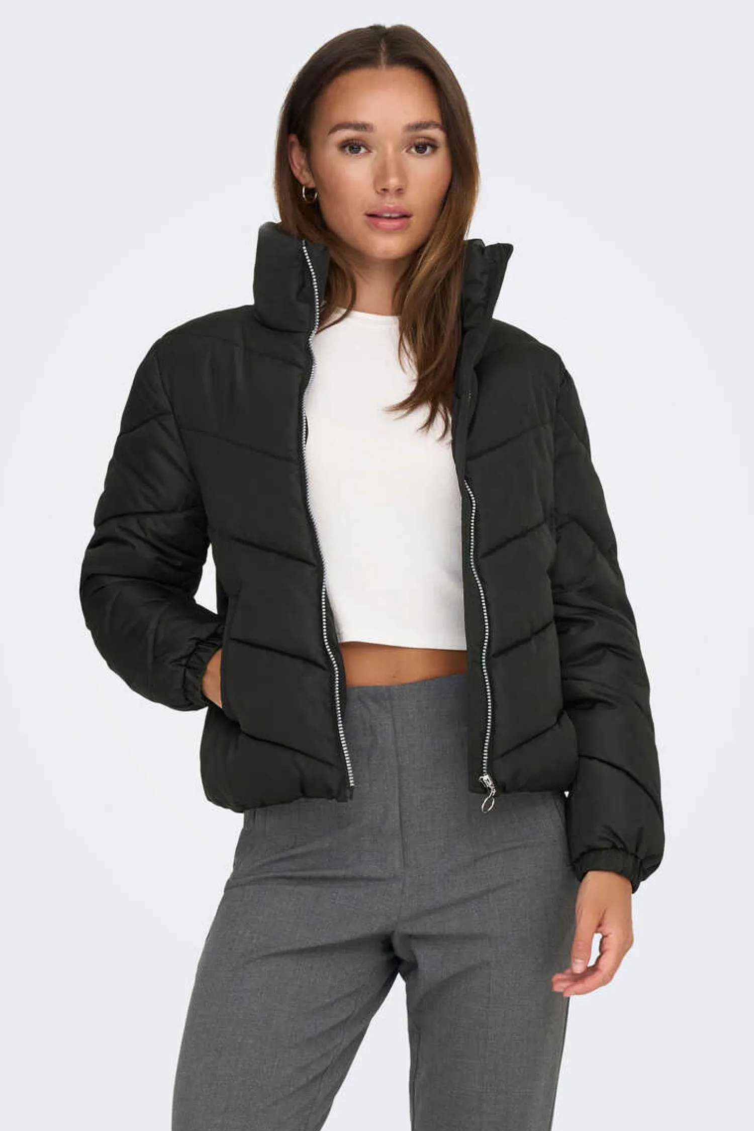 Casaco Acolchoado Curto Com Gola Alta. Mangas Compridas Com Bainha Elastica. Fecho-Eclair Frontal. Dois Bolsos Laterais.