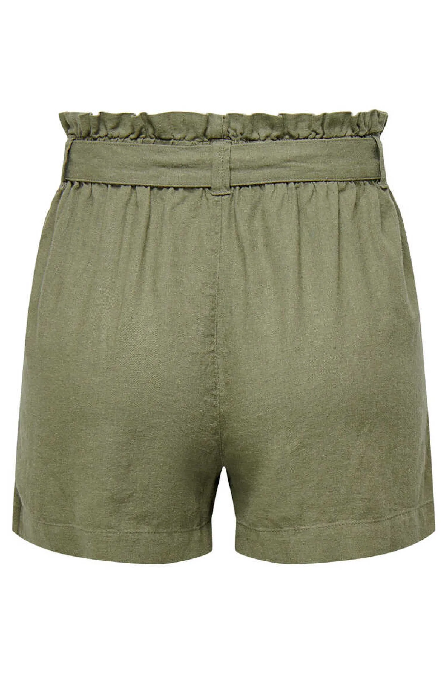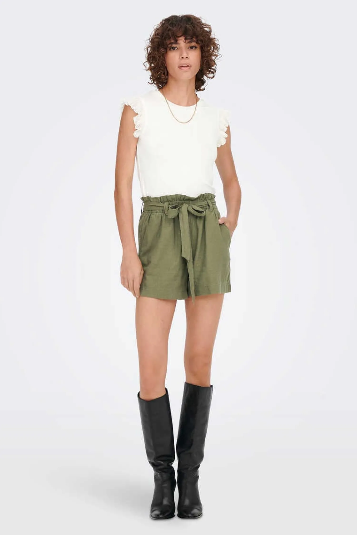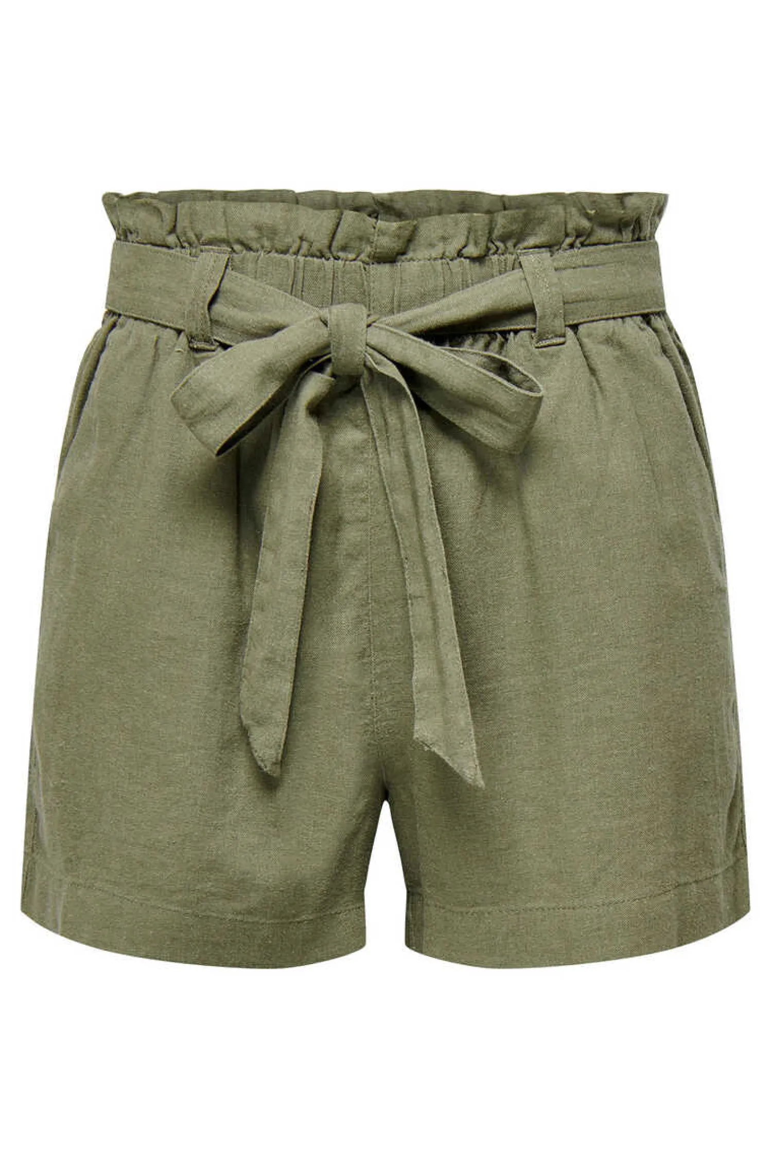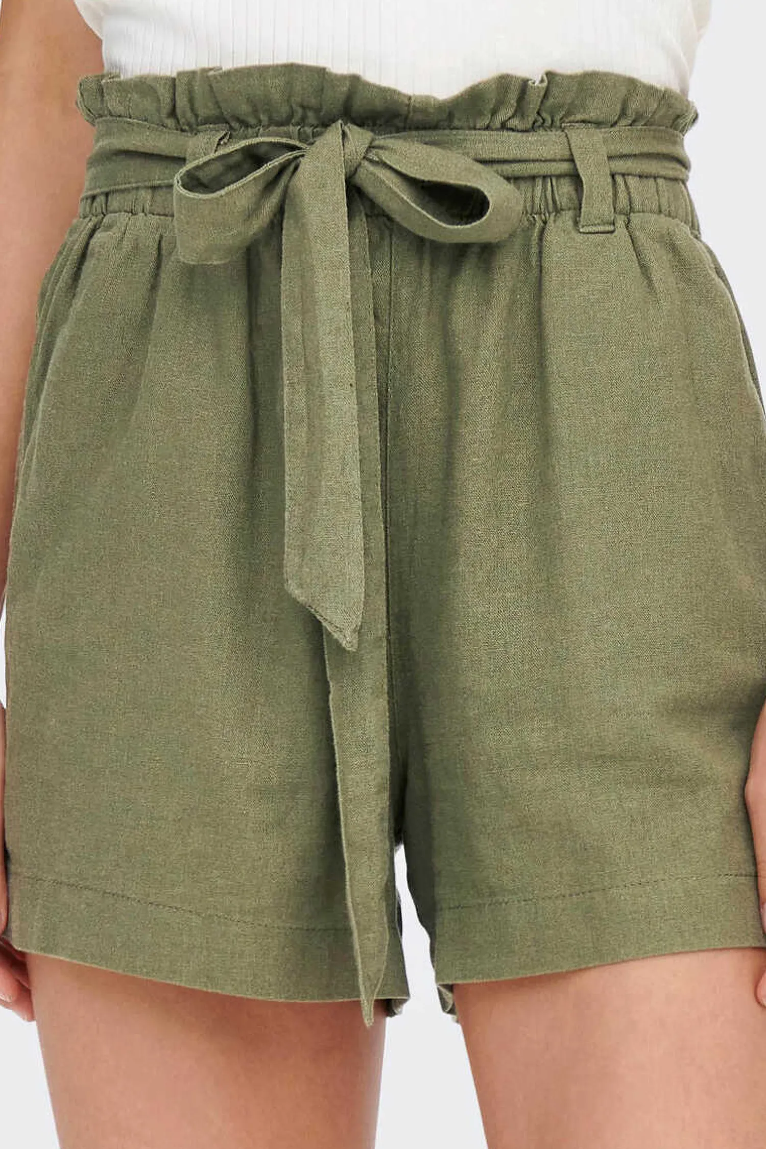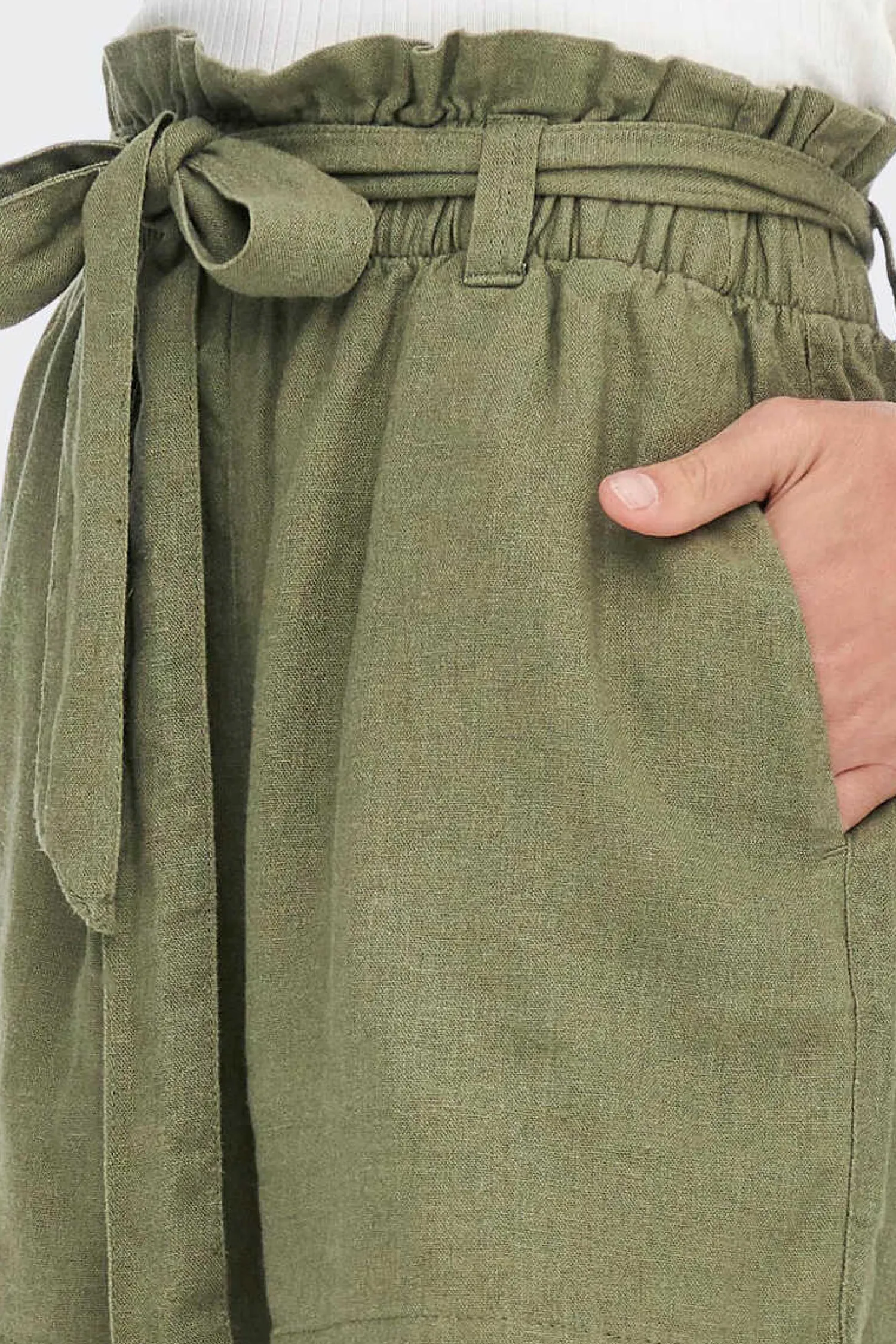 Calcoes De Mistura De Linho Fluido De Corte Alto Com Cintura Elastica E Cinto De Lacada Do Mesmo Tecido.