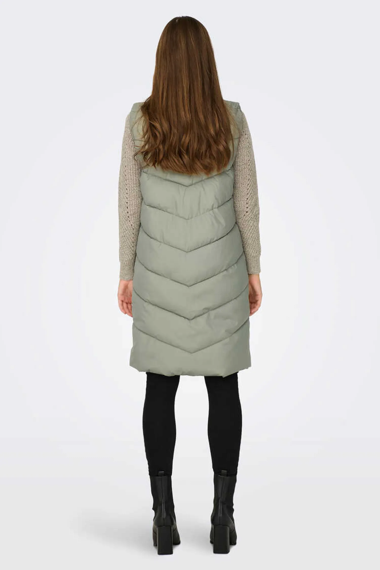 Colete Comprido Acolchoado Com Gola Alta. Sem Mangas. Fecho-Eclair Frontal E Dois Bolsos Laterais.