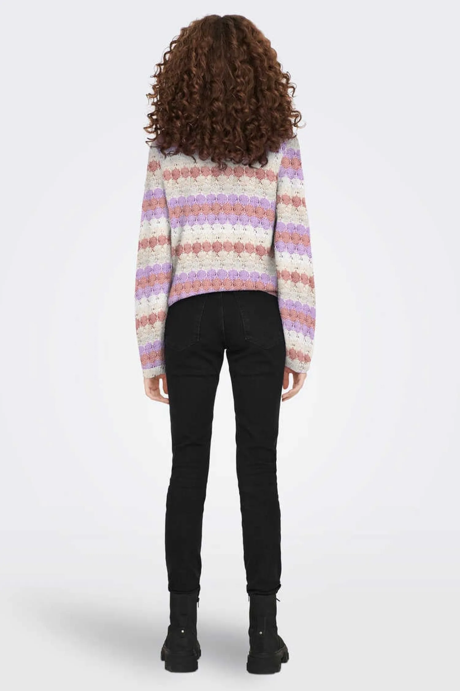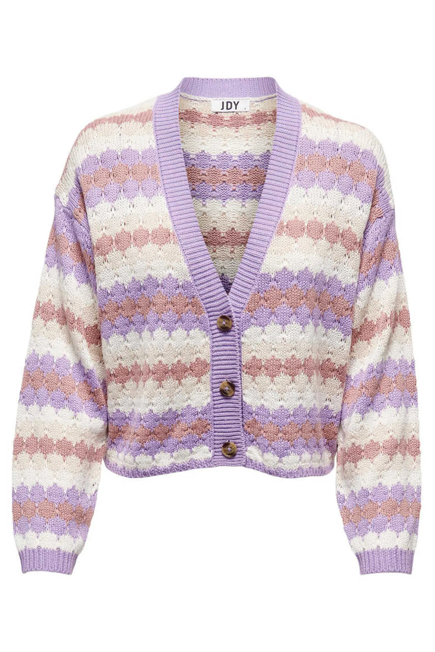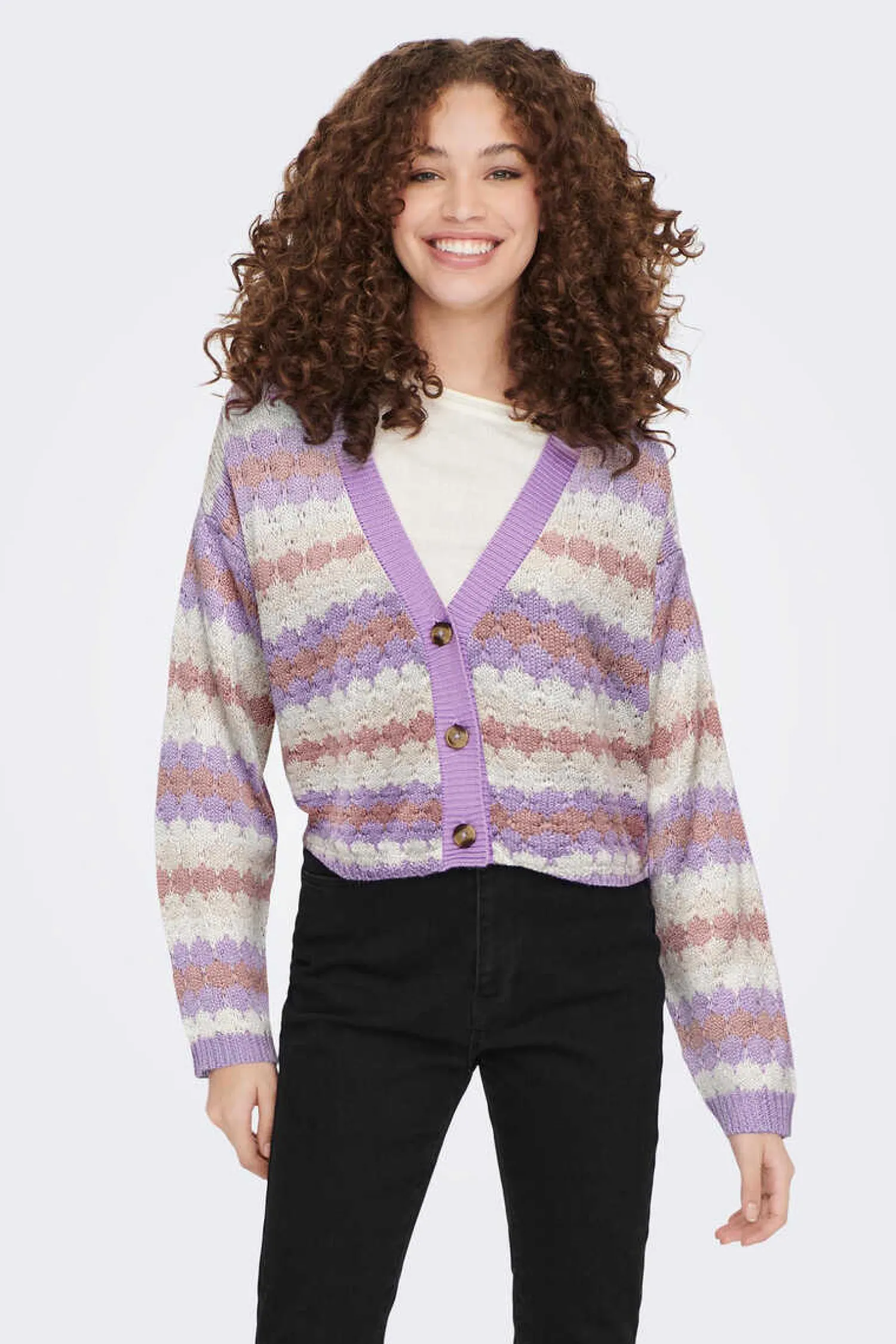 Casaco De Malha Rendilhada E Manga Comprida, Com Decote Em Bico E Fecho Frontal Com Botoes. Multicolor E Detalhe Canelado Nos Punhos.