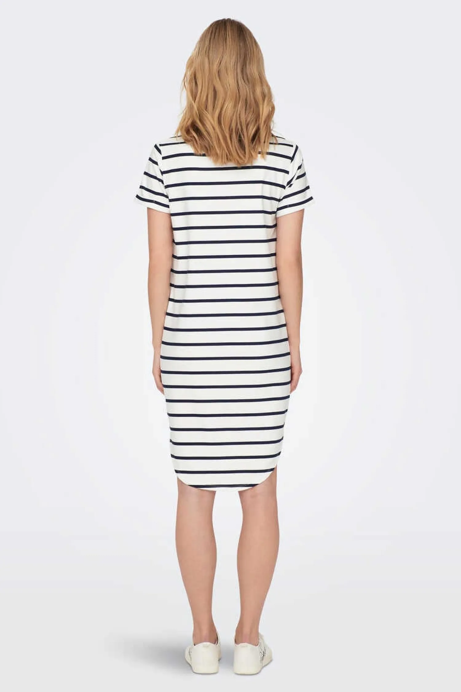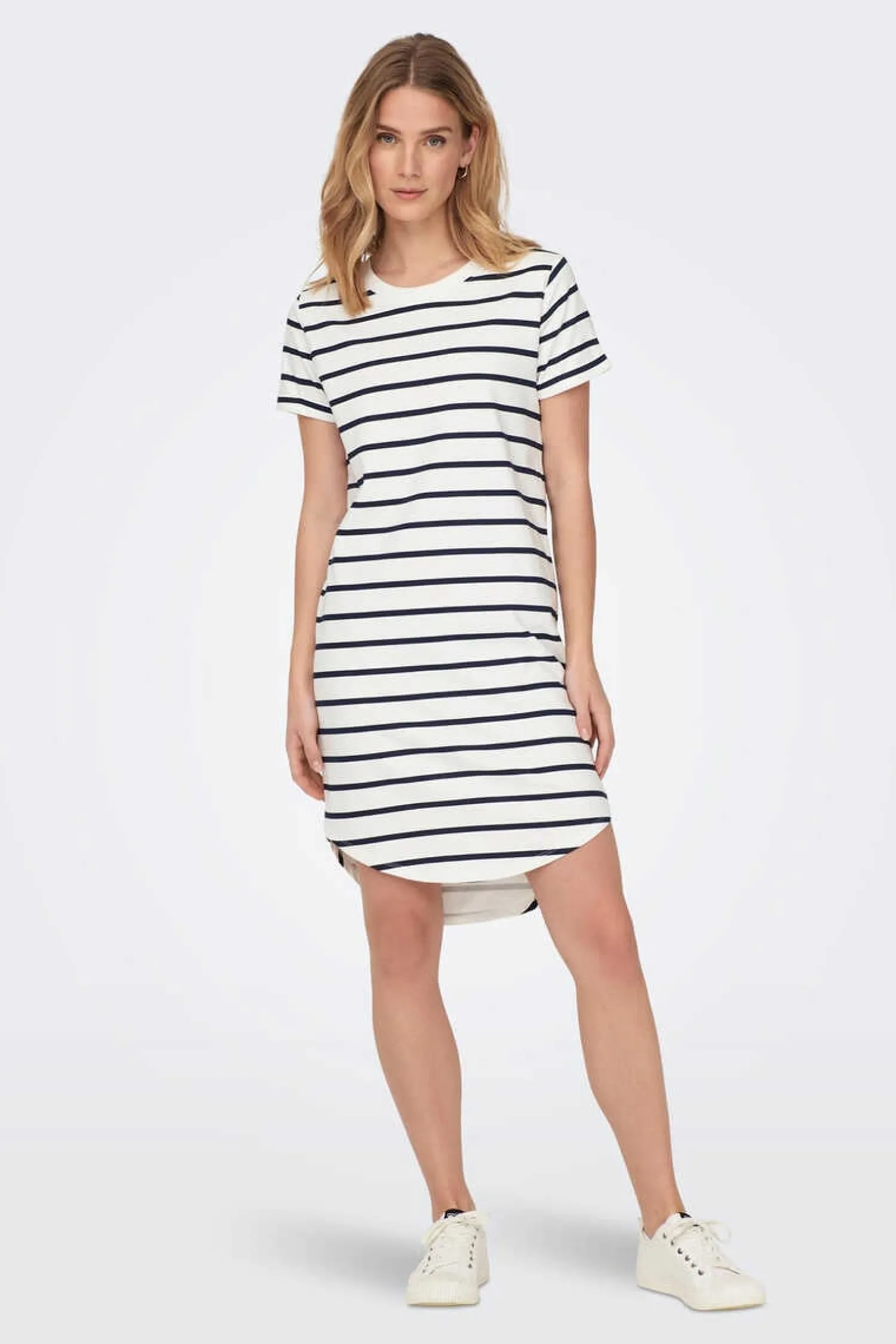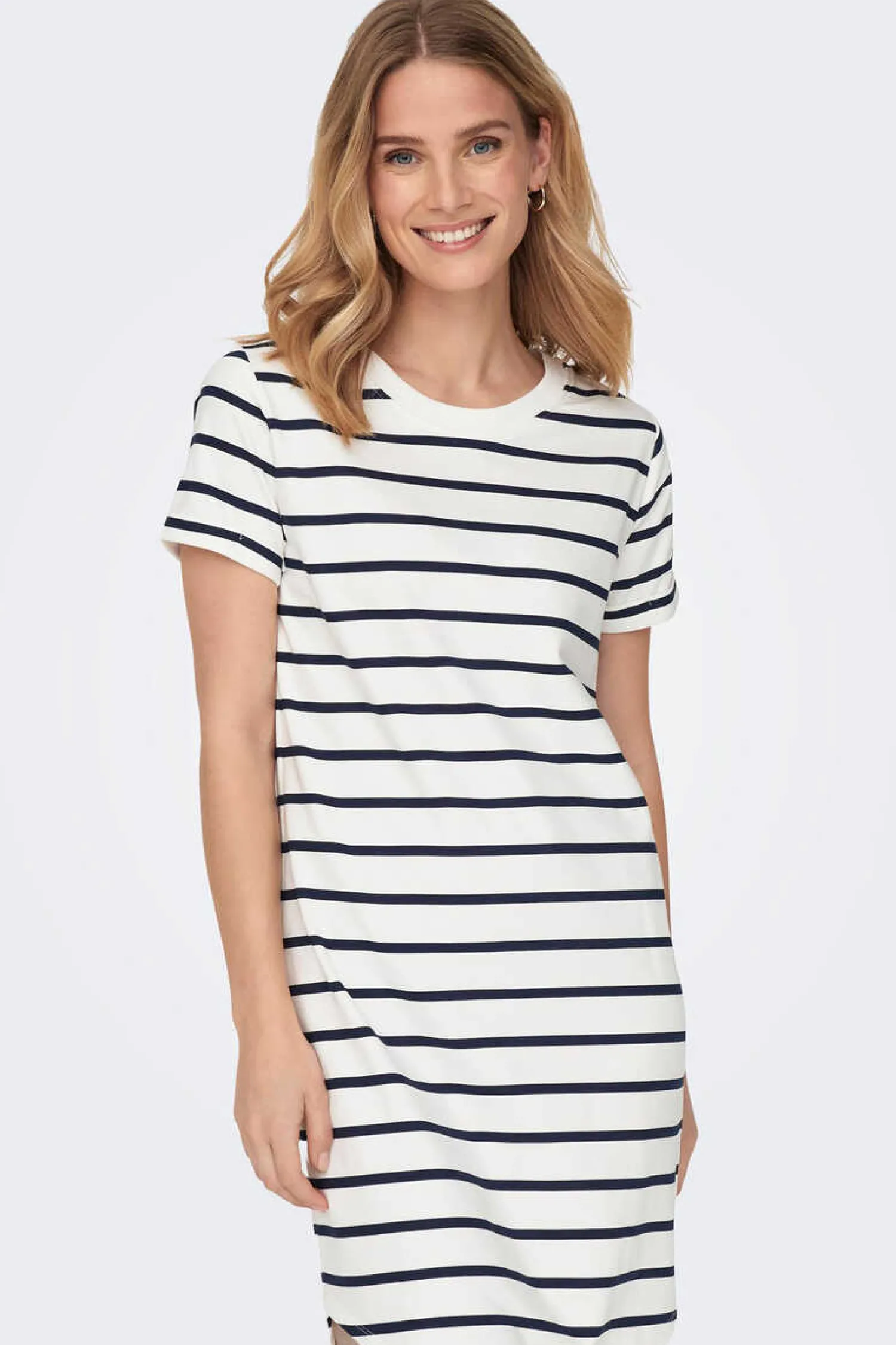 Tecido Curto De Mistura De Algodao. Mangas Curtas Com Dobra E Bainha Assimetrica.