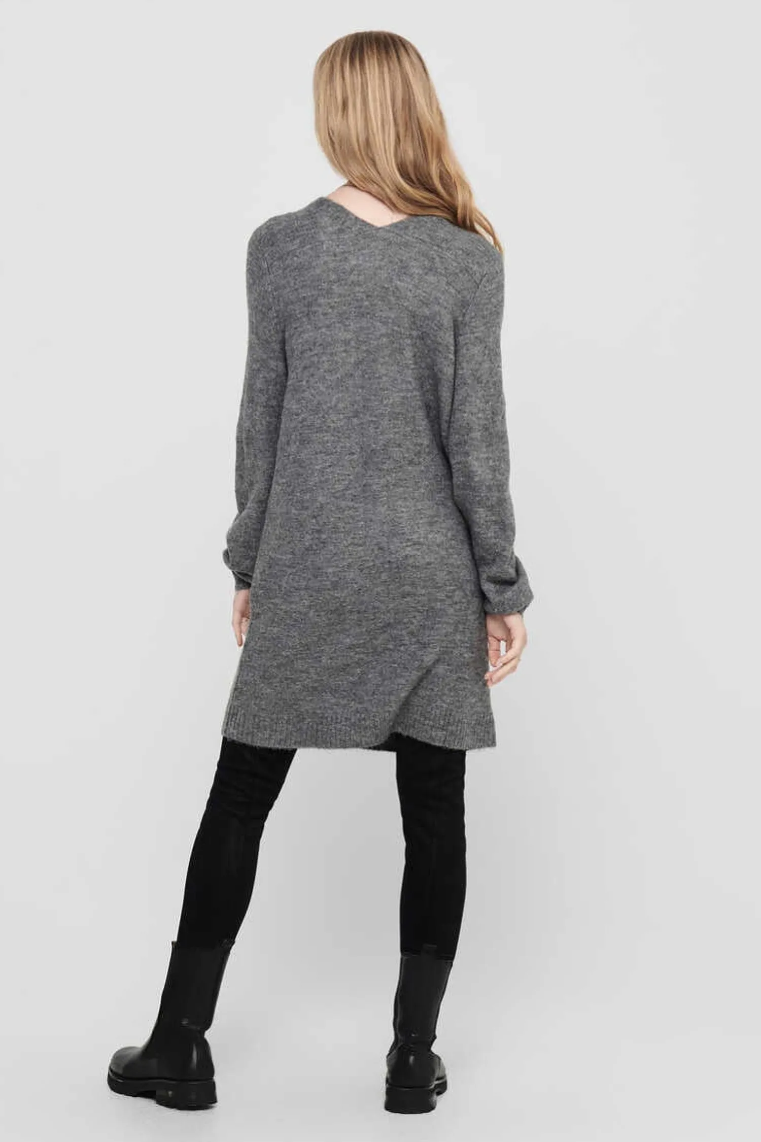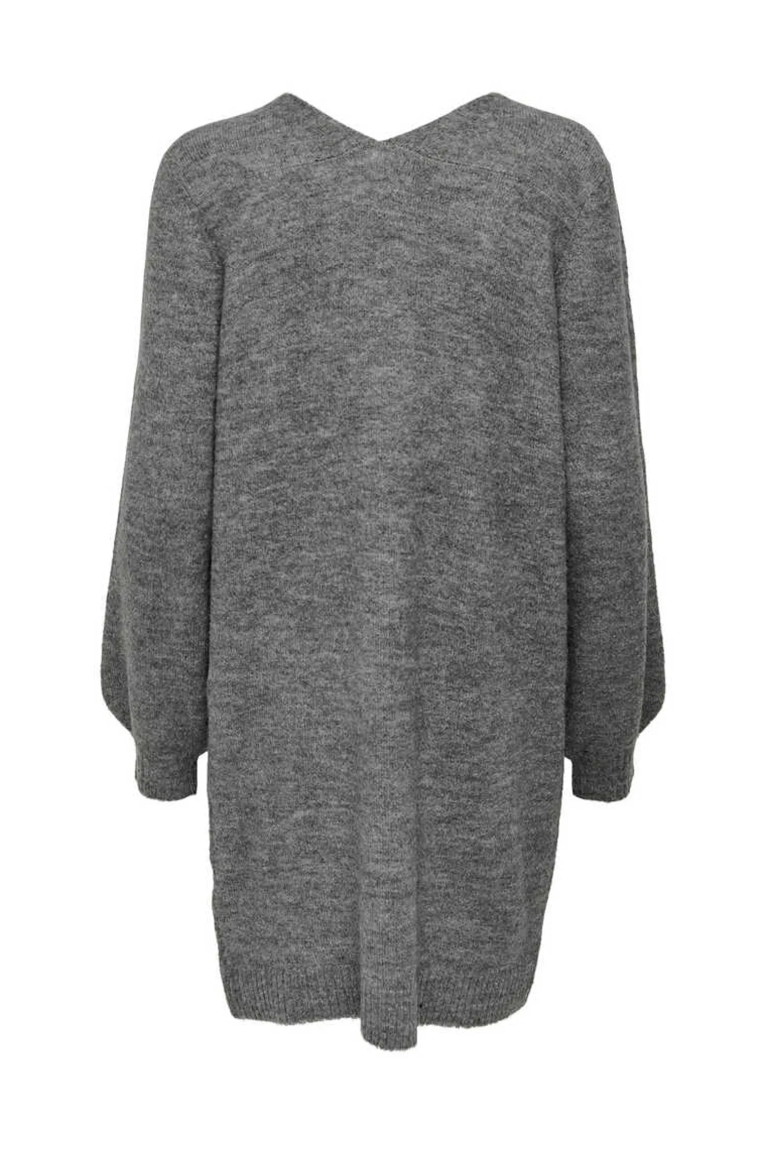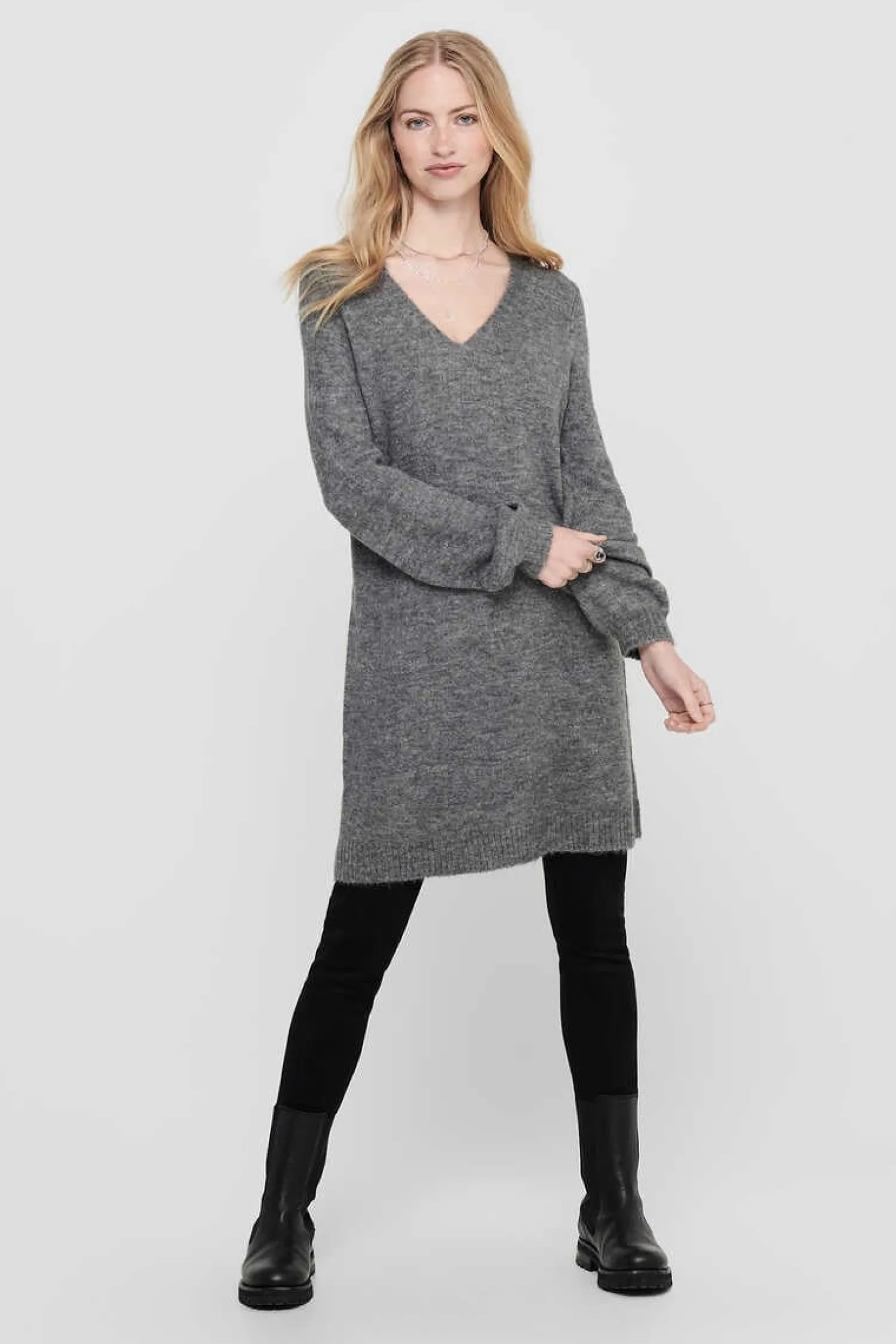 Vestido De Malha De Manga Comprida Com Gola Em Bico E Rebordos Canelados.