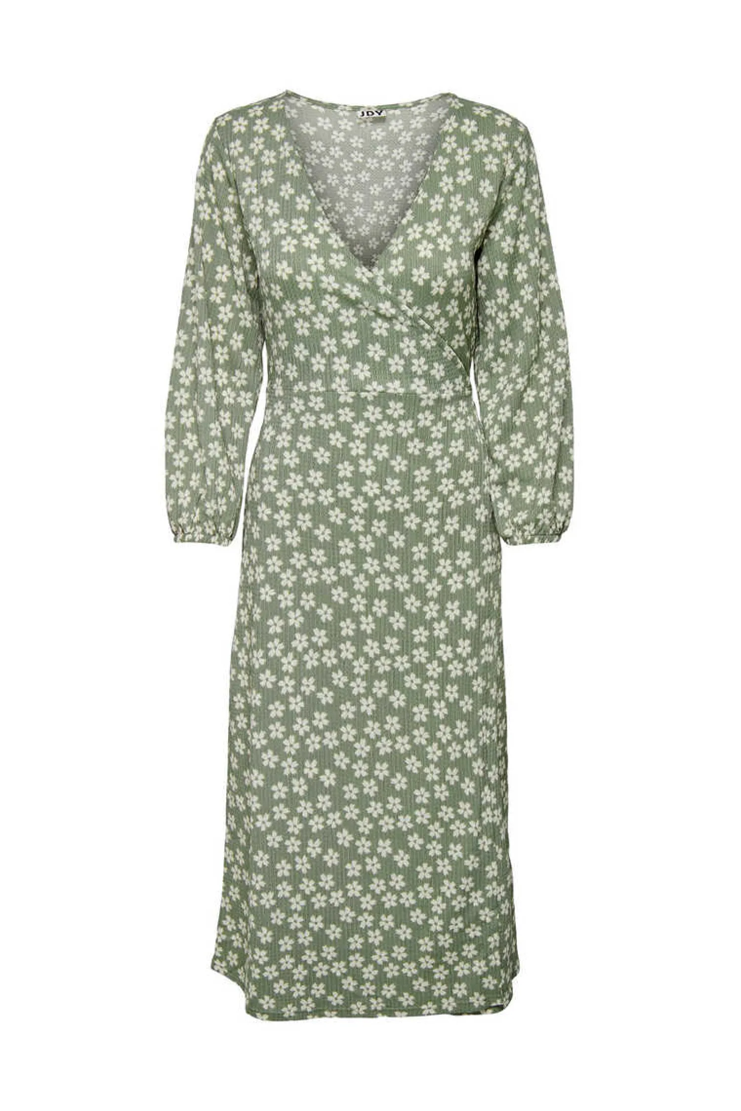 Vestido Midi De Manga Francesa Com Volume E Decote Em Bico, Com Corte E Laco Na Cintura. Estampado De Flores.