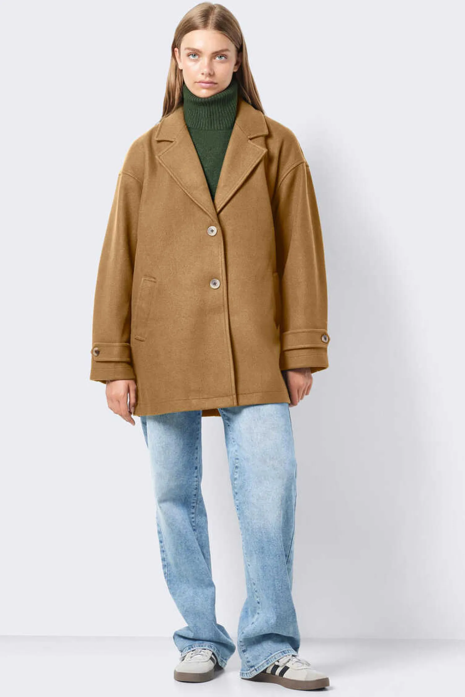 Sobretudo Sem Forro De Fecho De Botoes Dianteiros, Bolsos Dianteiros, Manga Comprida E Gola De Lapelas.