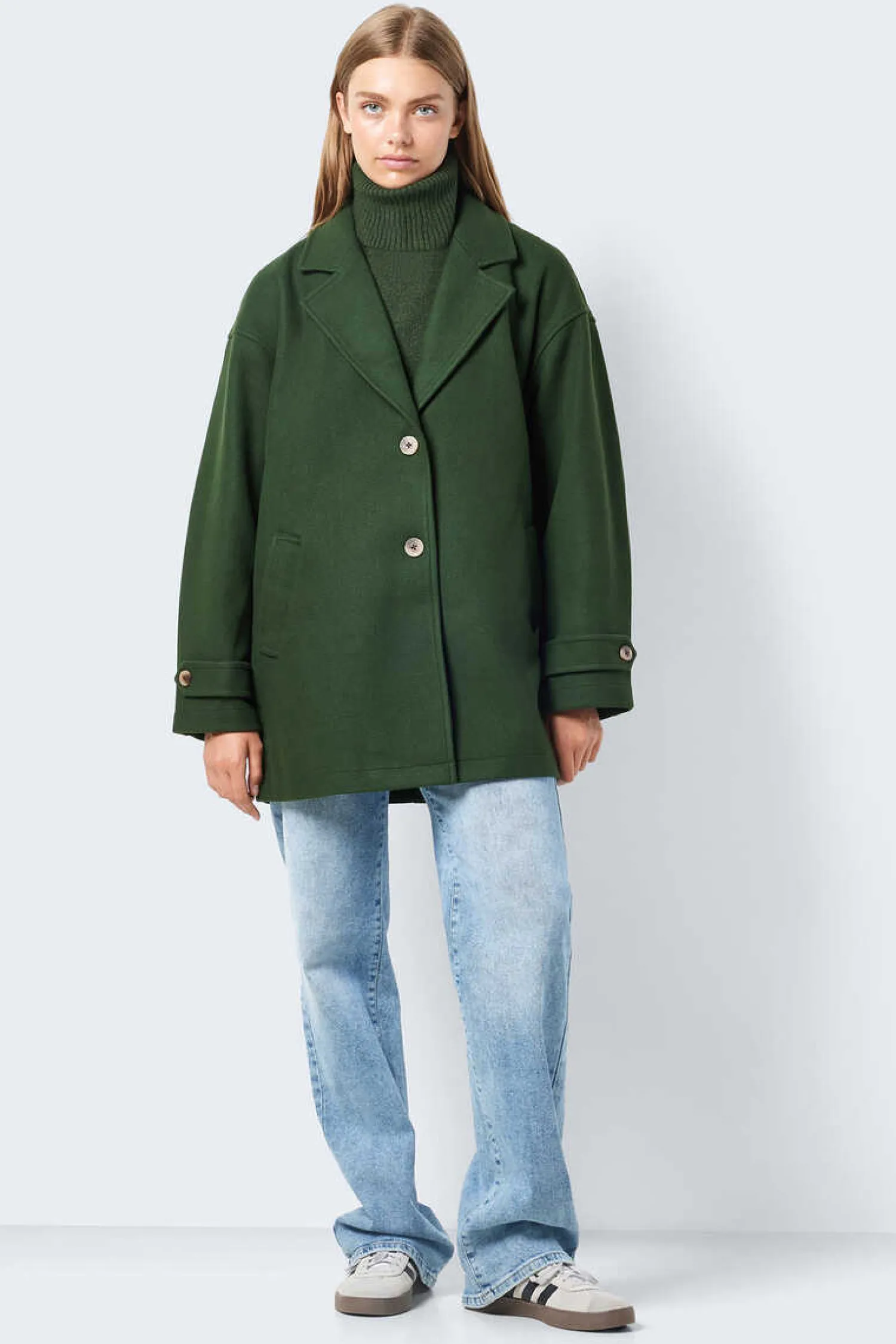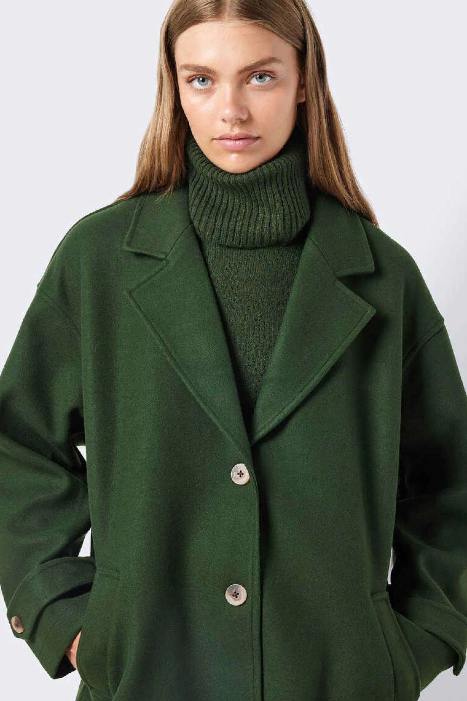 Sobretudo Sem Forro De Fecho De Botoes Dianteiros, Bolsos Dianteiros, Manga Comprida E Gola De Lapelas.