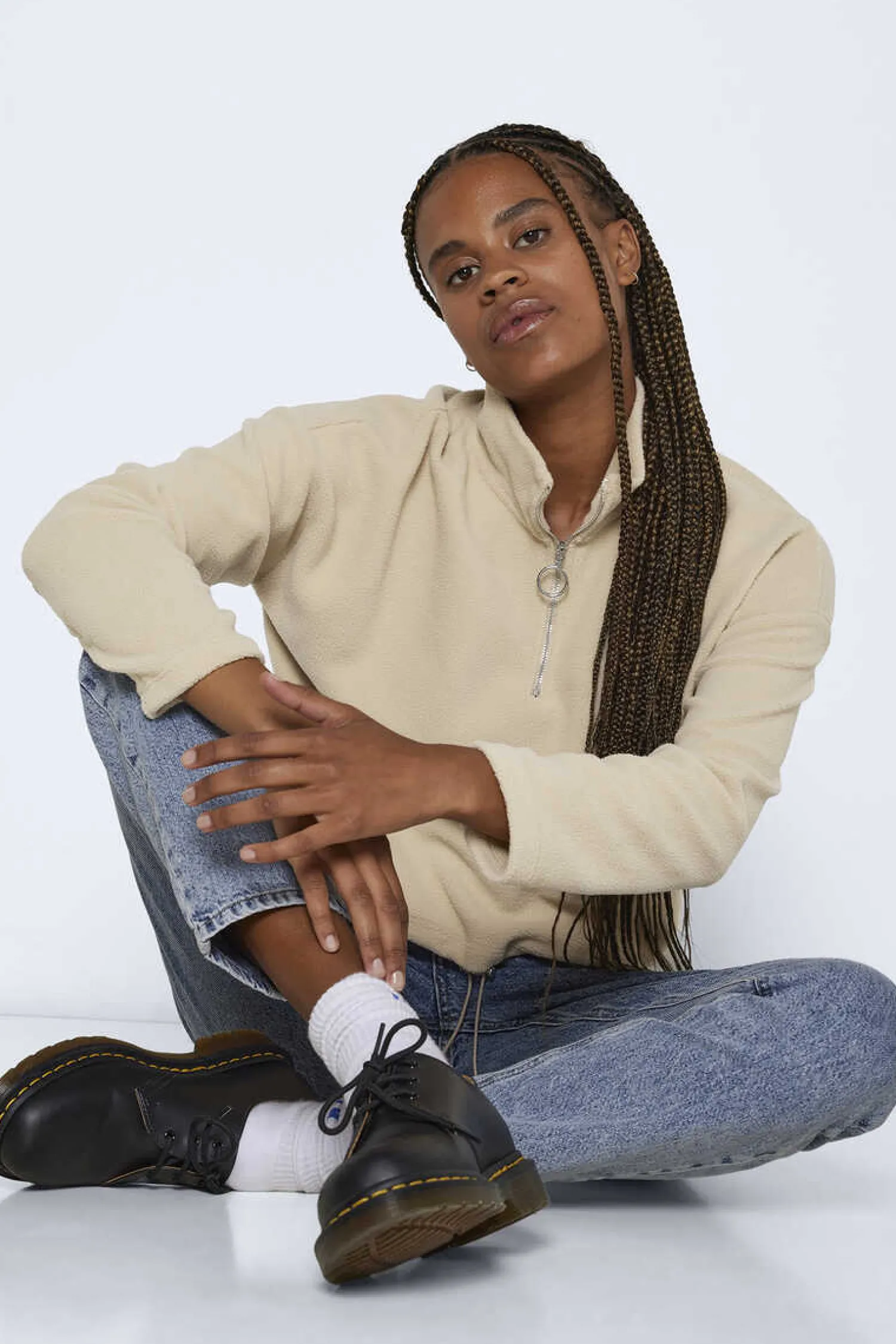 Sweatshirt De Malha Com Decote Fechado E Fecho-Eclair A Altura Do Peito. Ombros Descaidos.