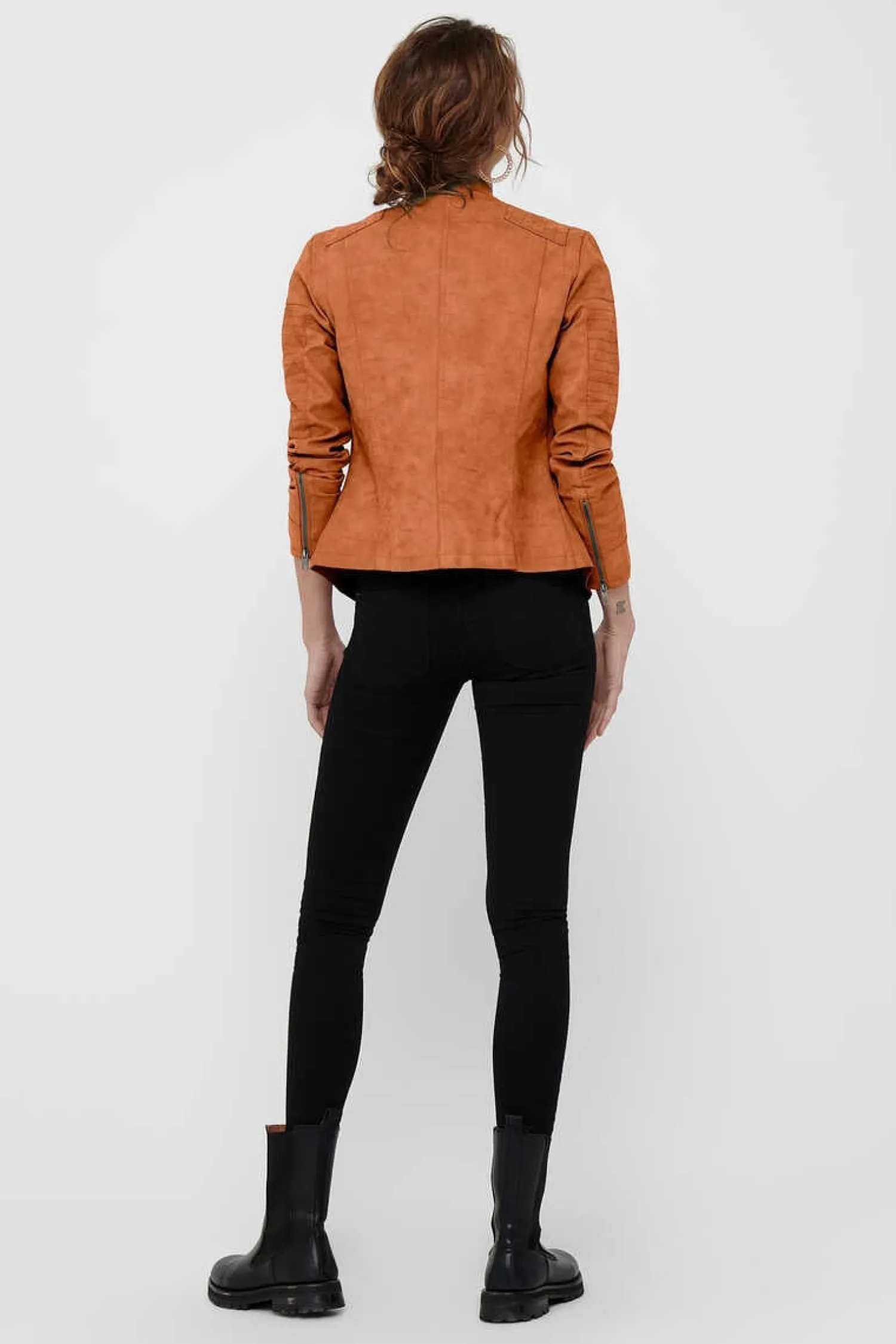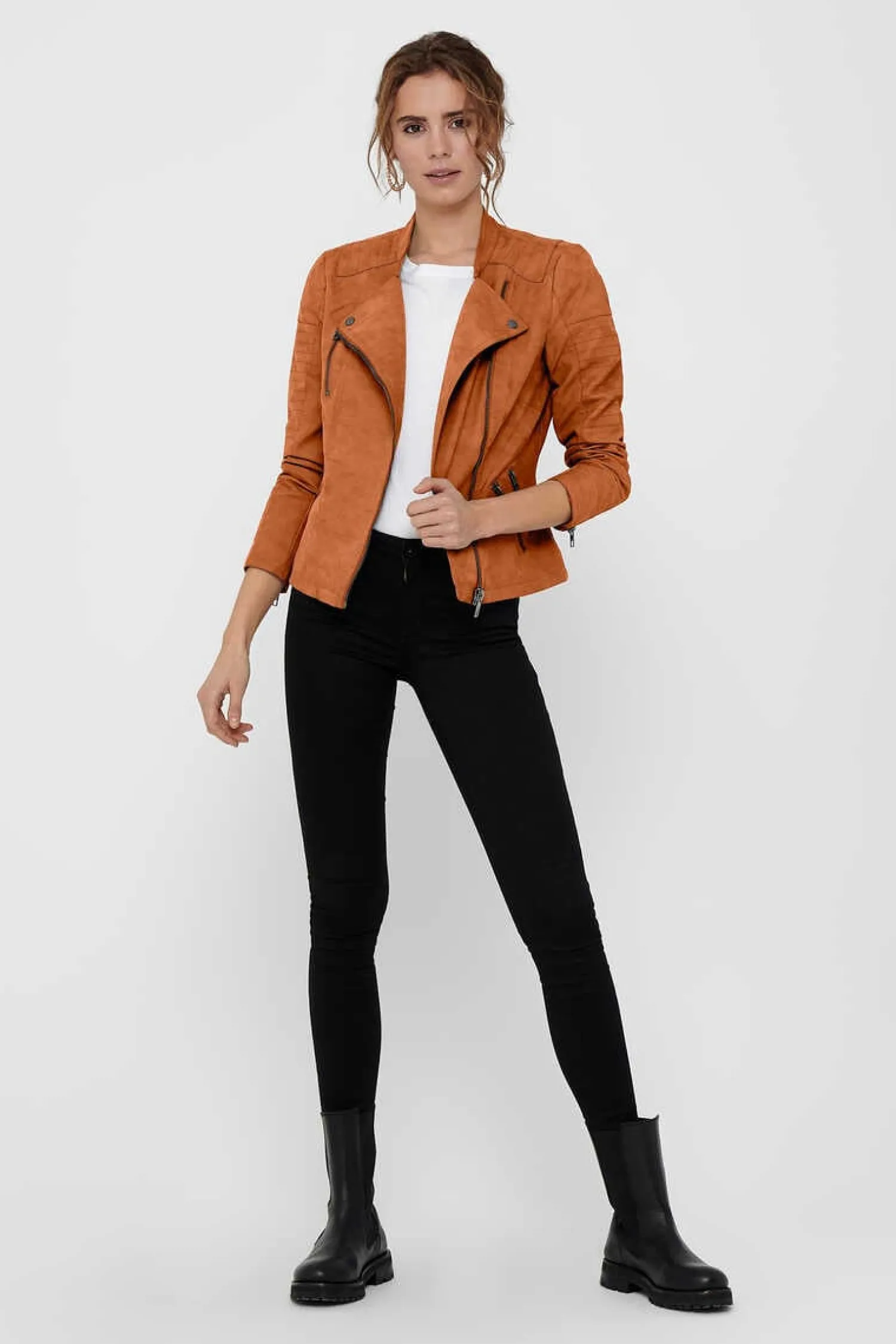 Blusao Estilo Biker Com Fecho-Eclair Assimetrico E Bolsos Com Fecho-Eclair.