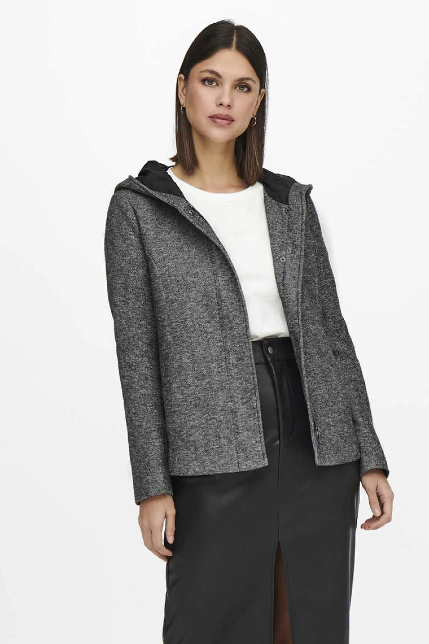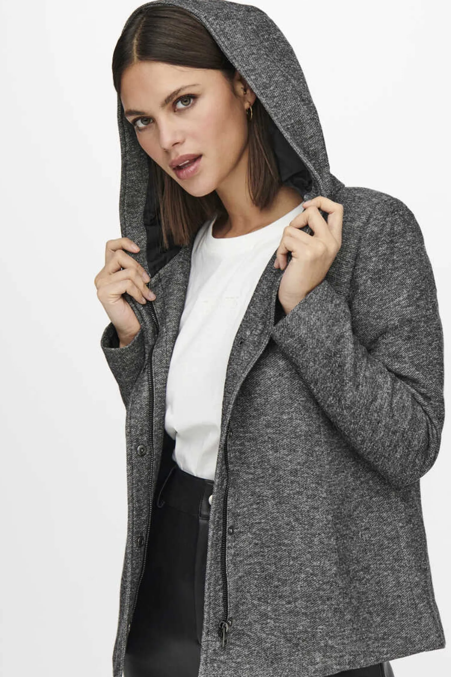 Sobretudo Curto Com Capuz, Fecho De Fecho-Eclair