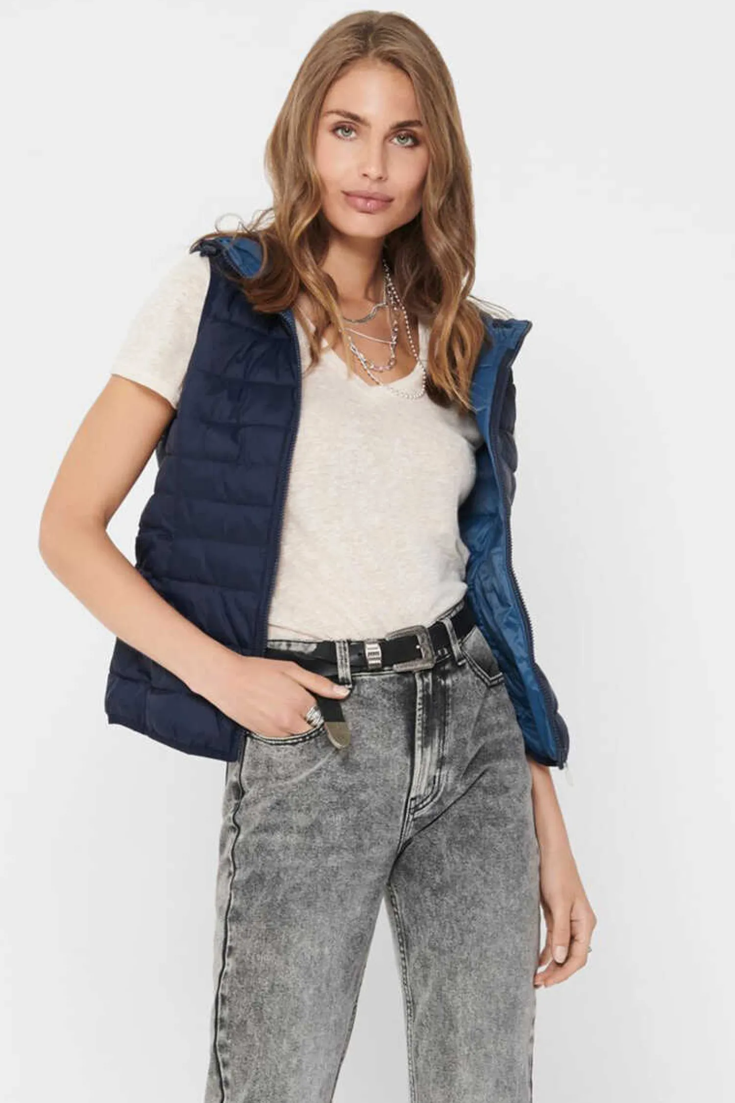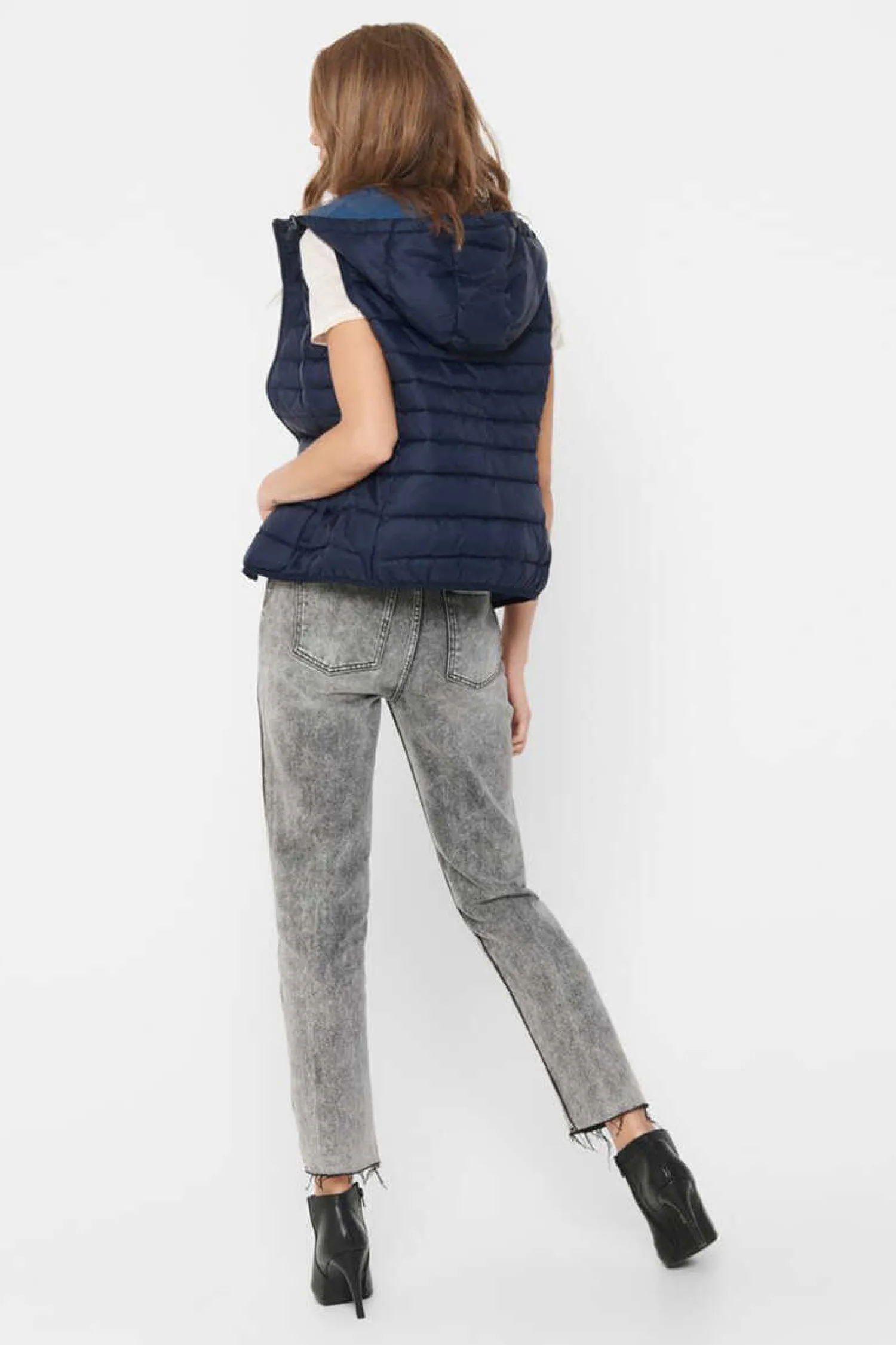 Colete Acolchoado Com Fecho Mediante Fecho-Eclair Dianteiro, Dois Bolsos Laterais E Capuz.