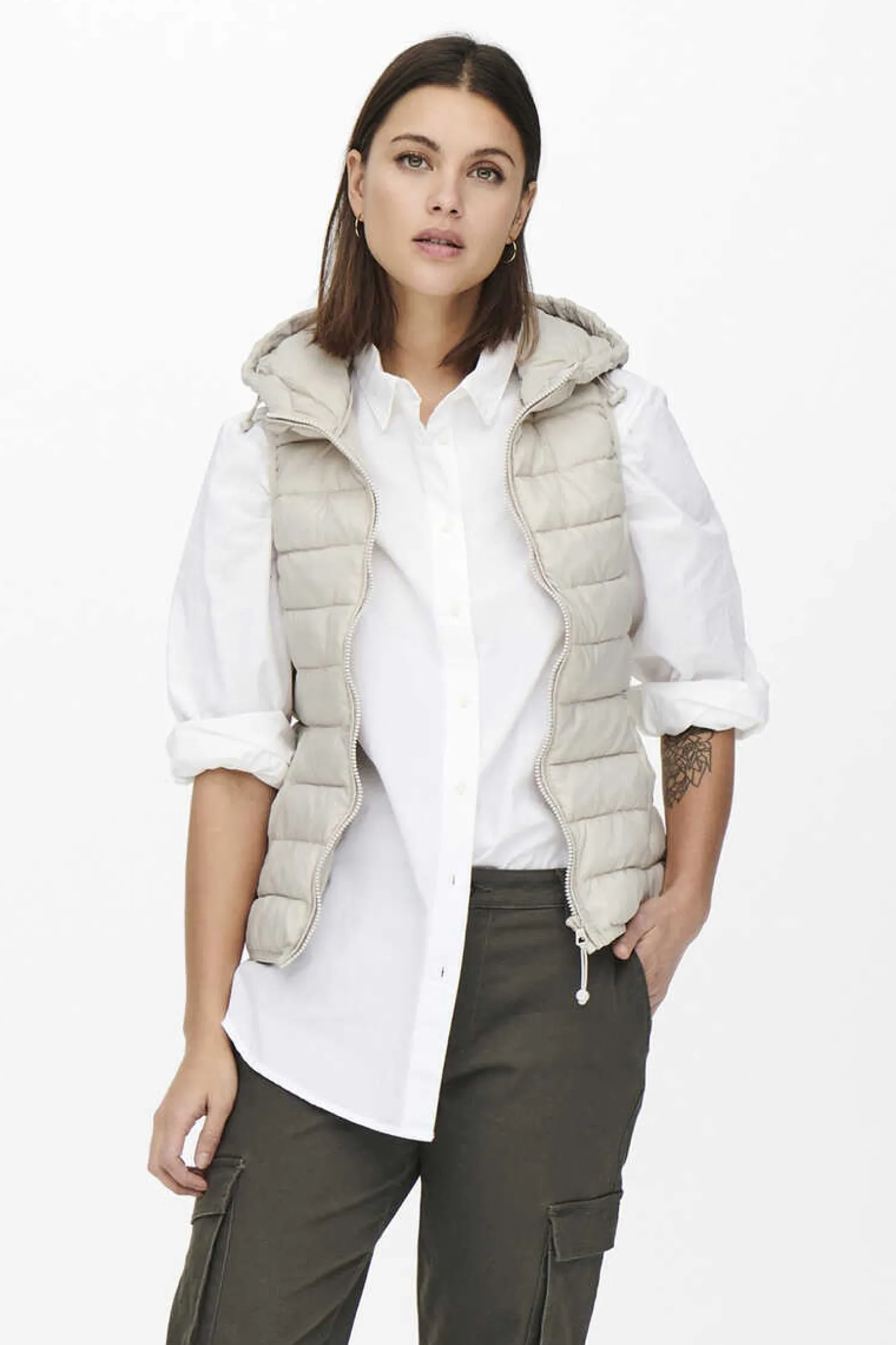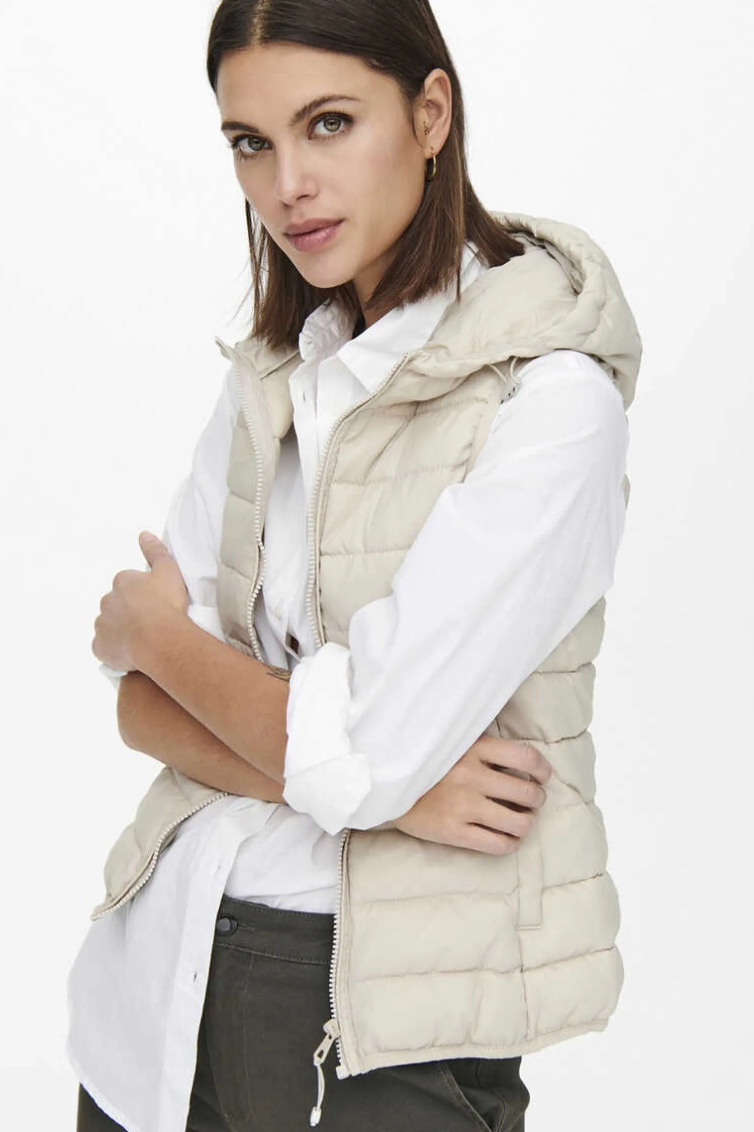 Colete Ultraleve Com Capuz, Fecho De Fecho-Eclair E Bolsos Laterais.