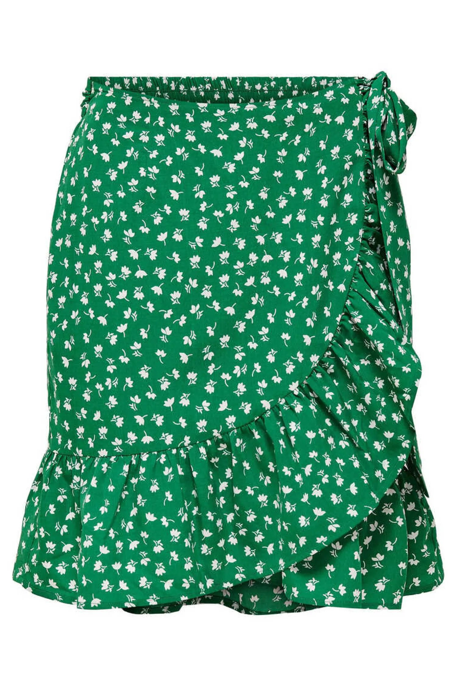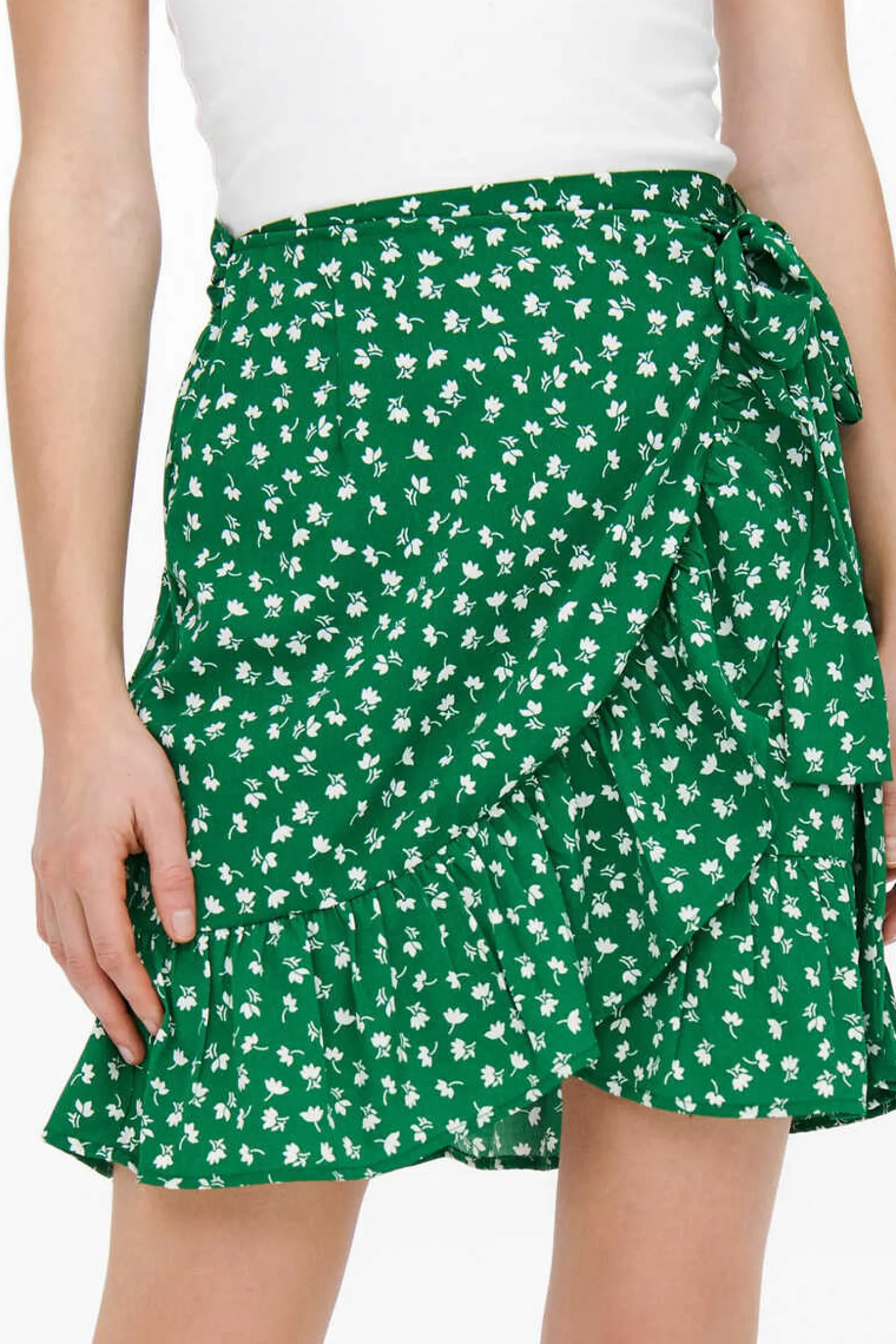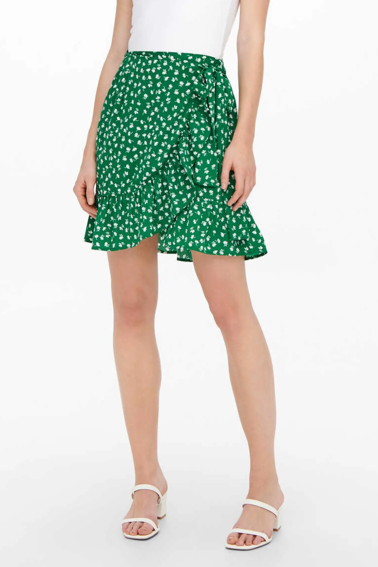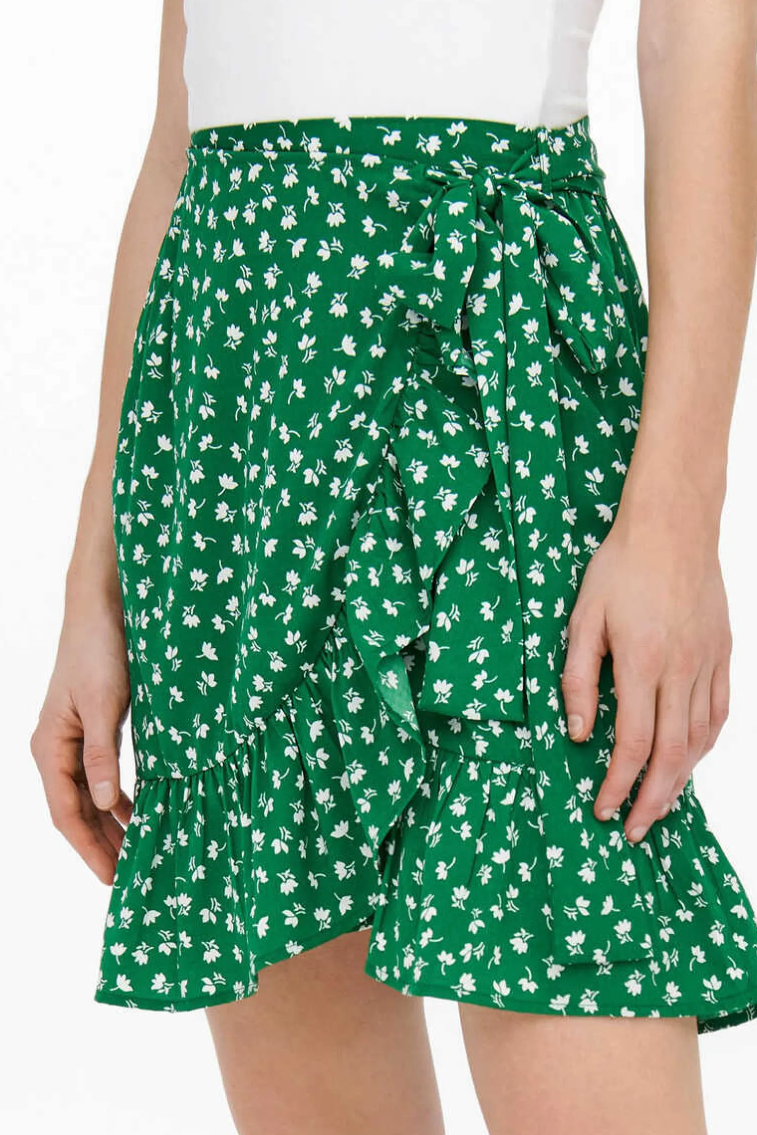 Saia Curta Fluida Cruzada, Com Folhos Na Bainha E Lateral.