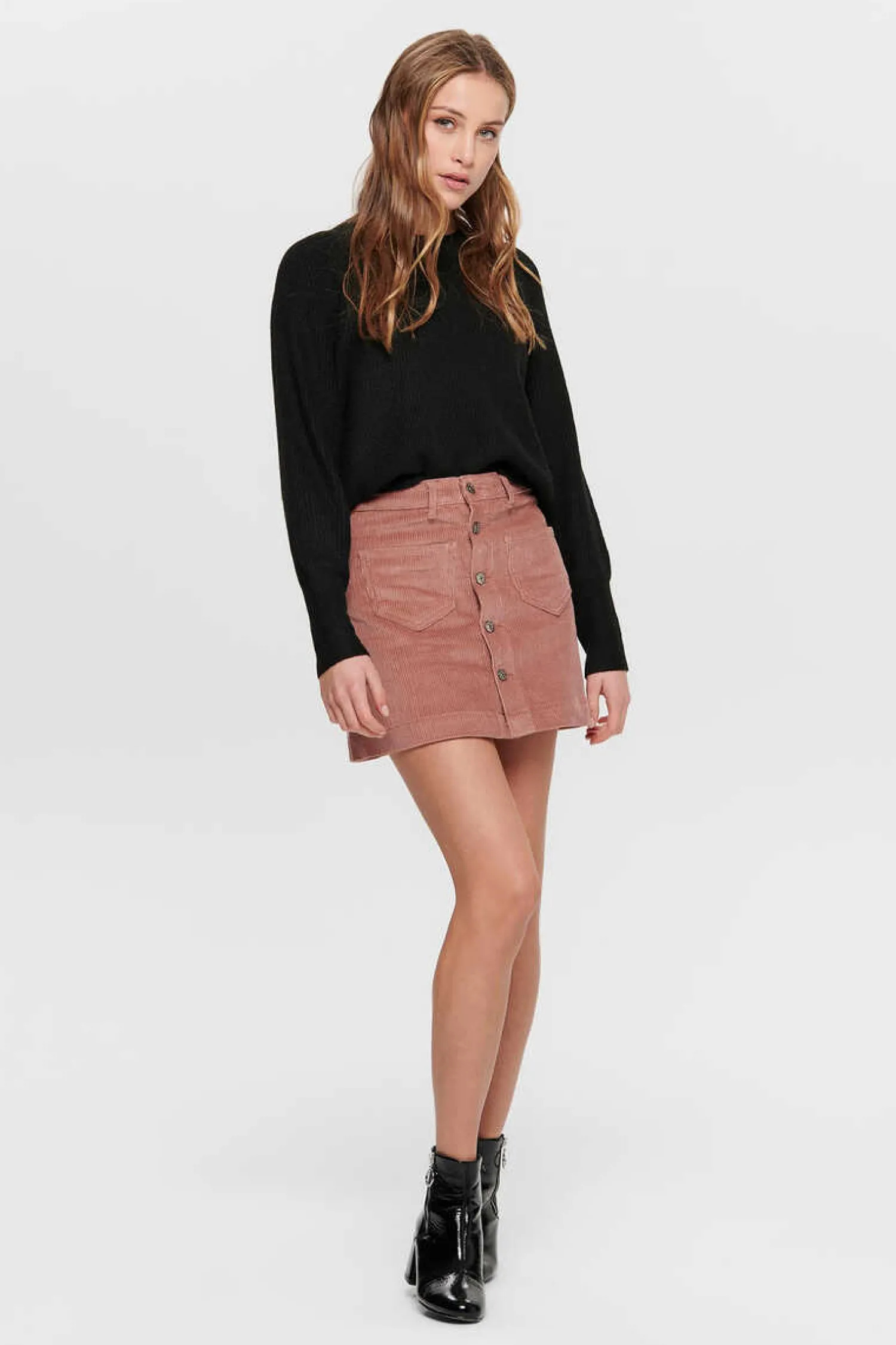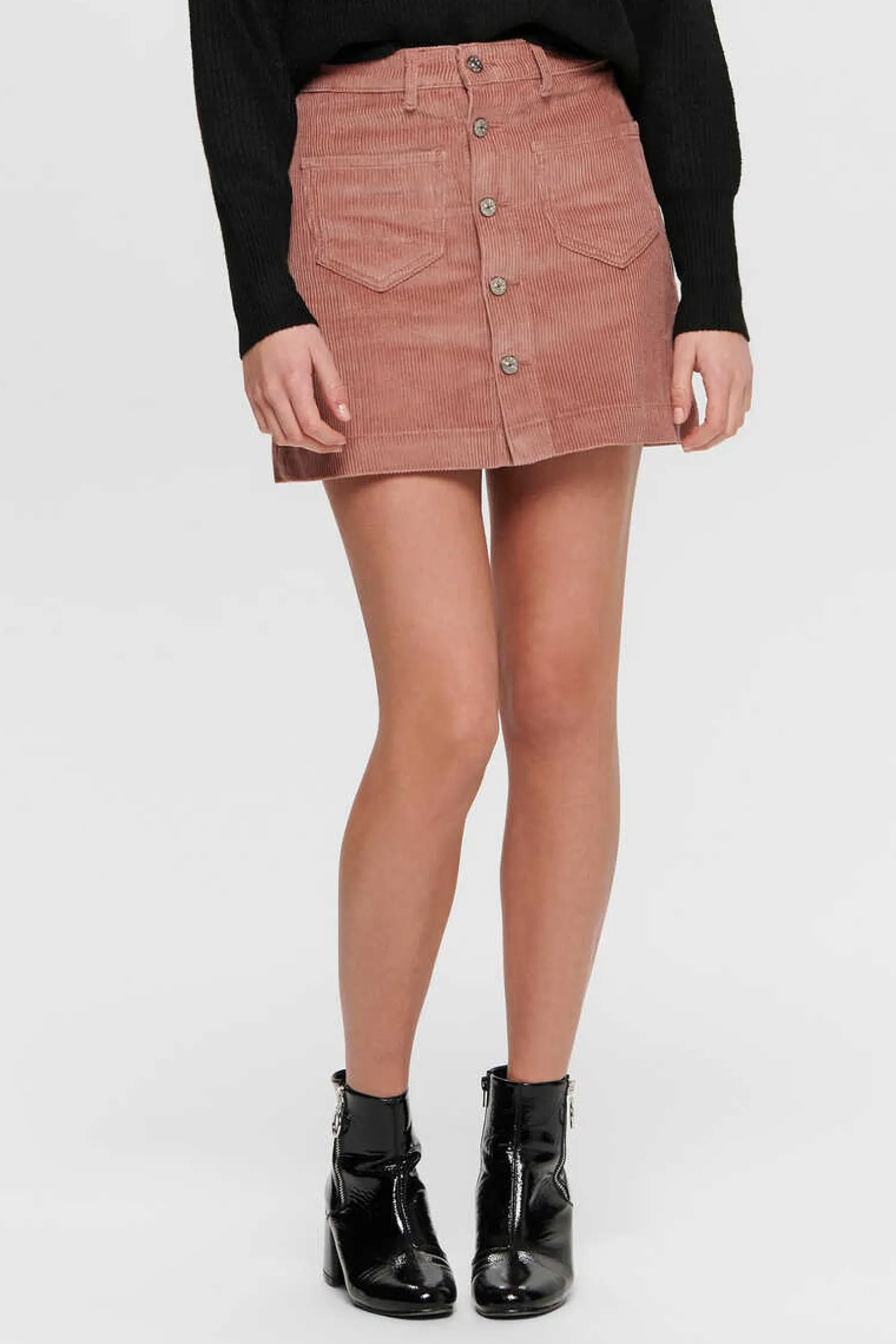 Saia Curta De Bombazina. Tem Dois Bolsos Dianteiros Com Botoes.