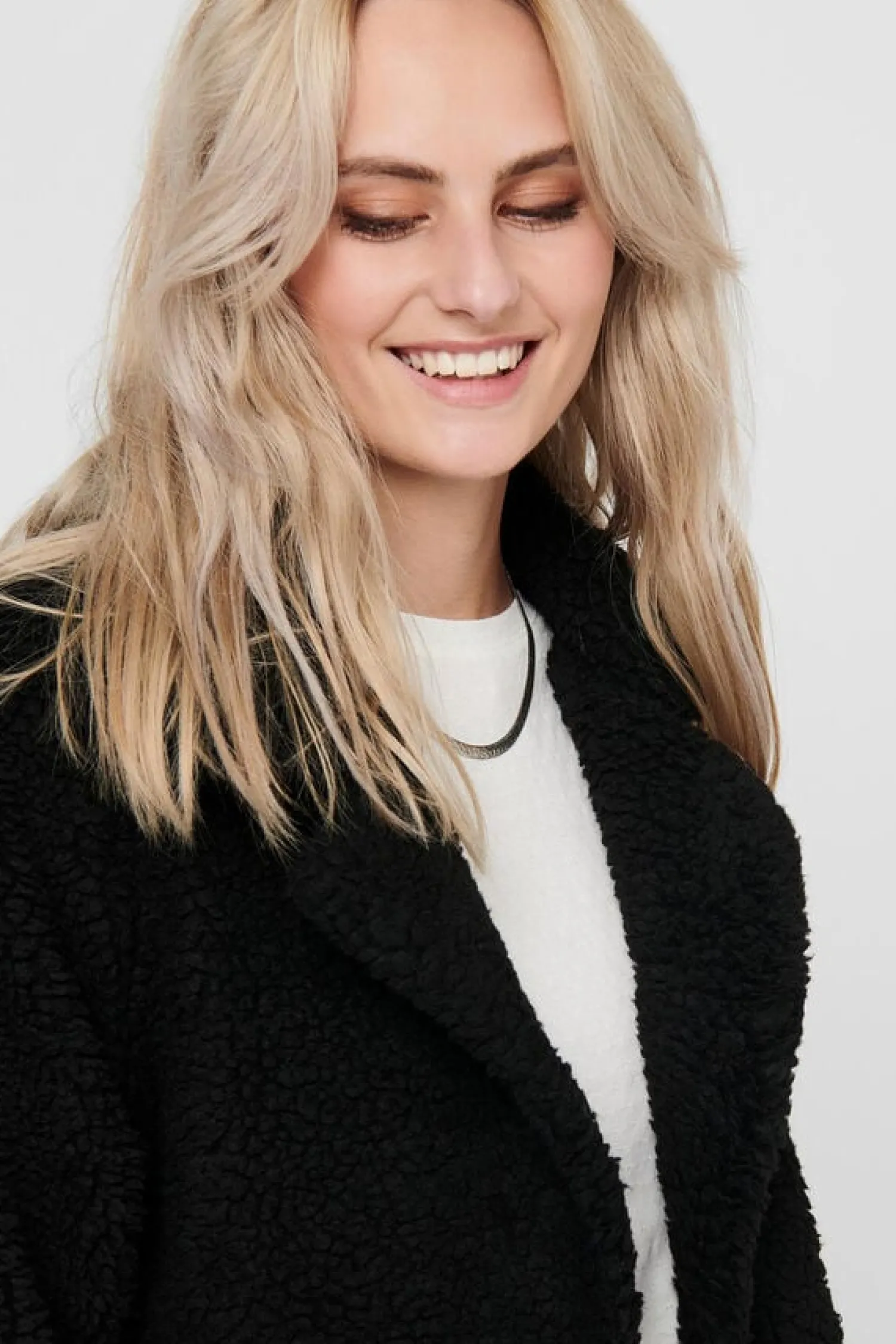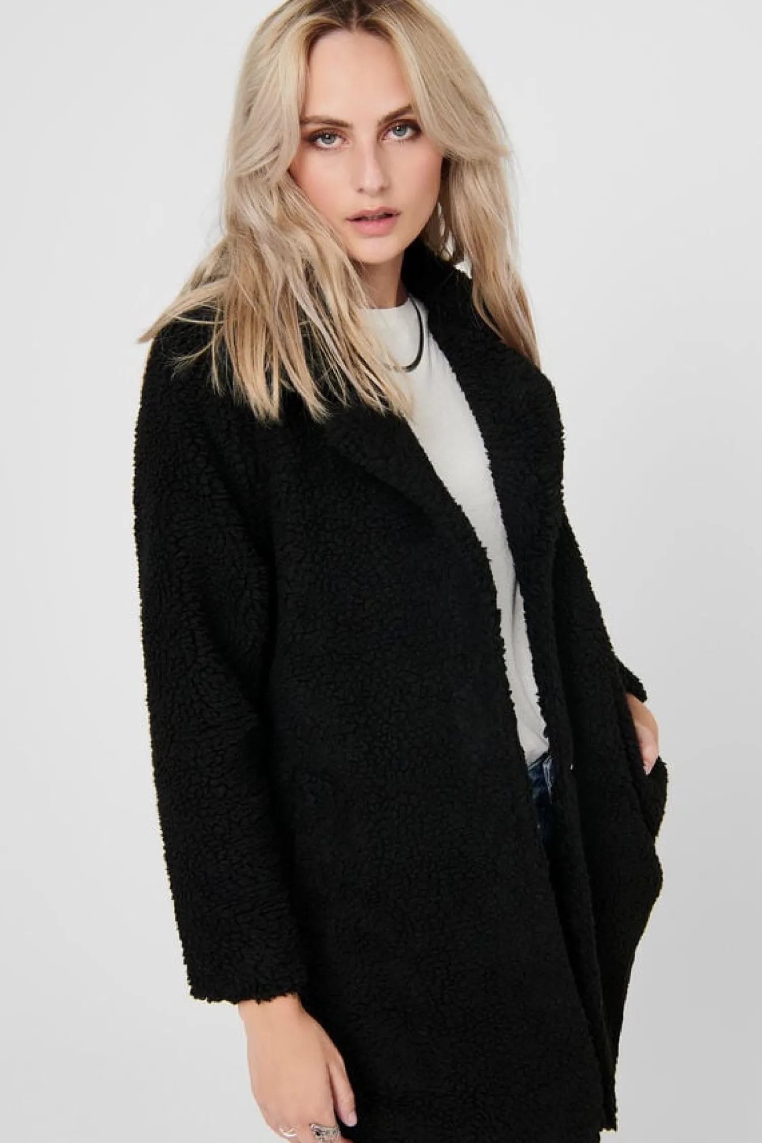 Sobretudo De Borrego Com Lapela, 2 Botoes Frontais E Bolsos Laterais.