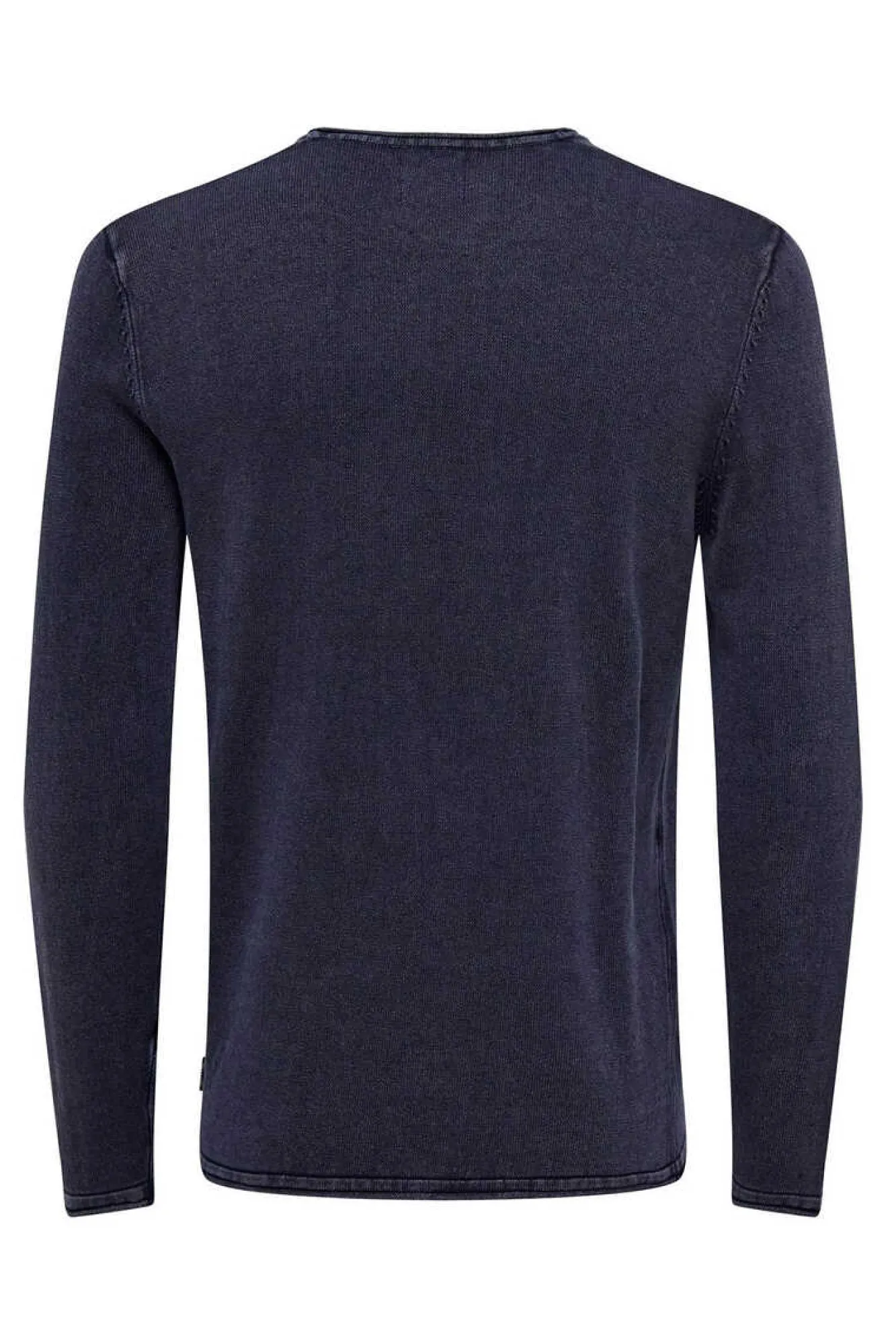 Camisola De Malha Com Gola Redonda E Detalhes De Pespontos Nos Punhos E Pescoco.