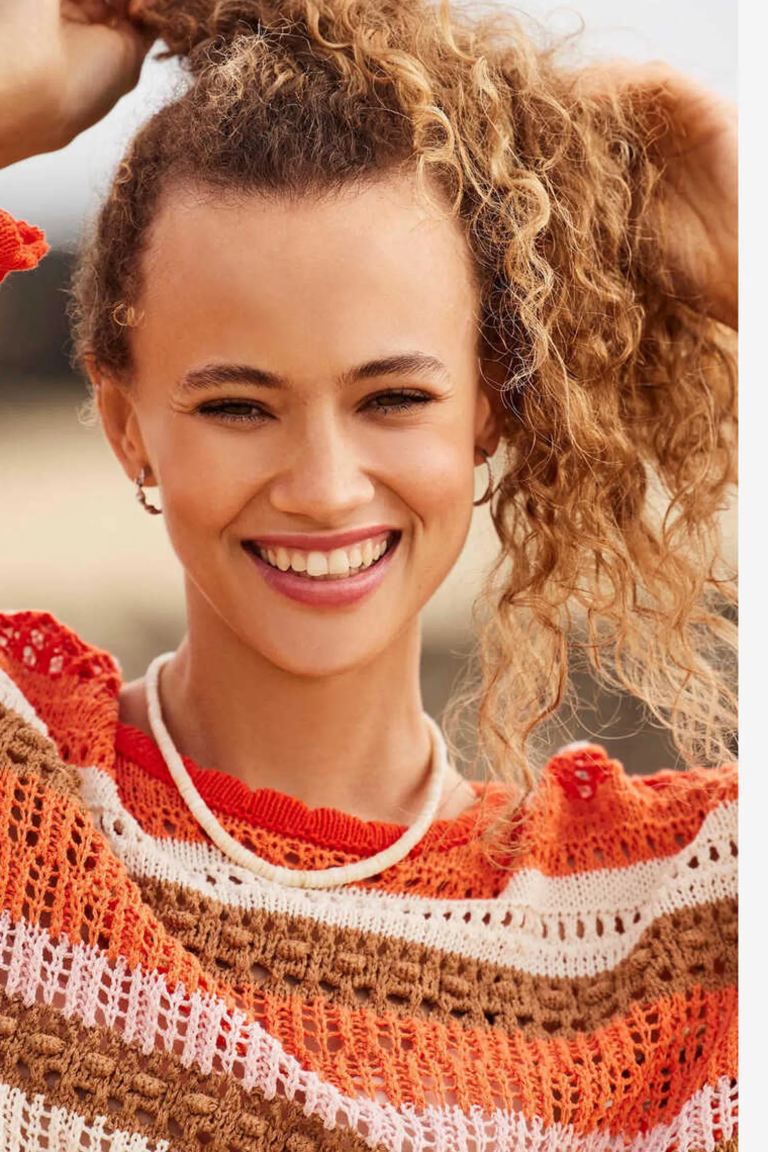 Camisola De Malha De Manga Comprida Com Gola Redonda E Riscas Multicor.