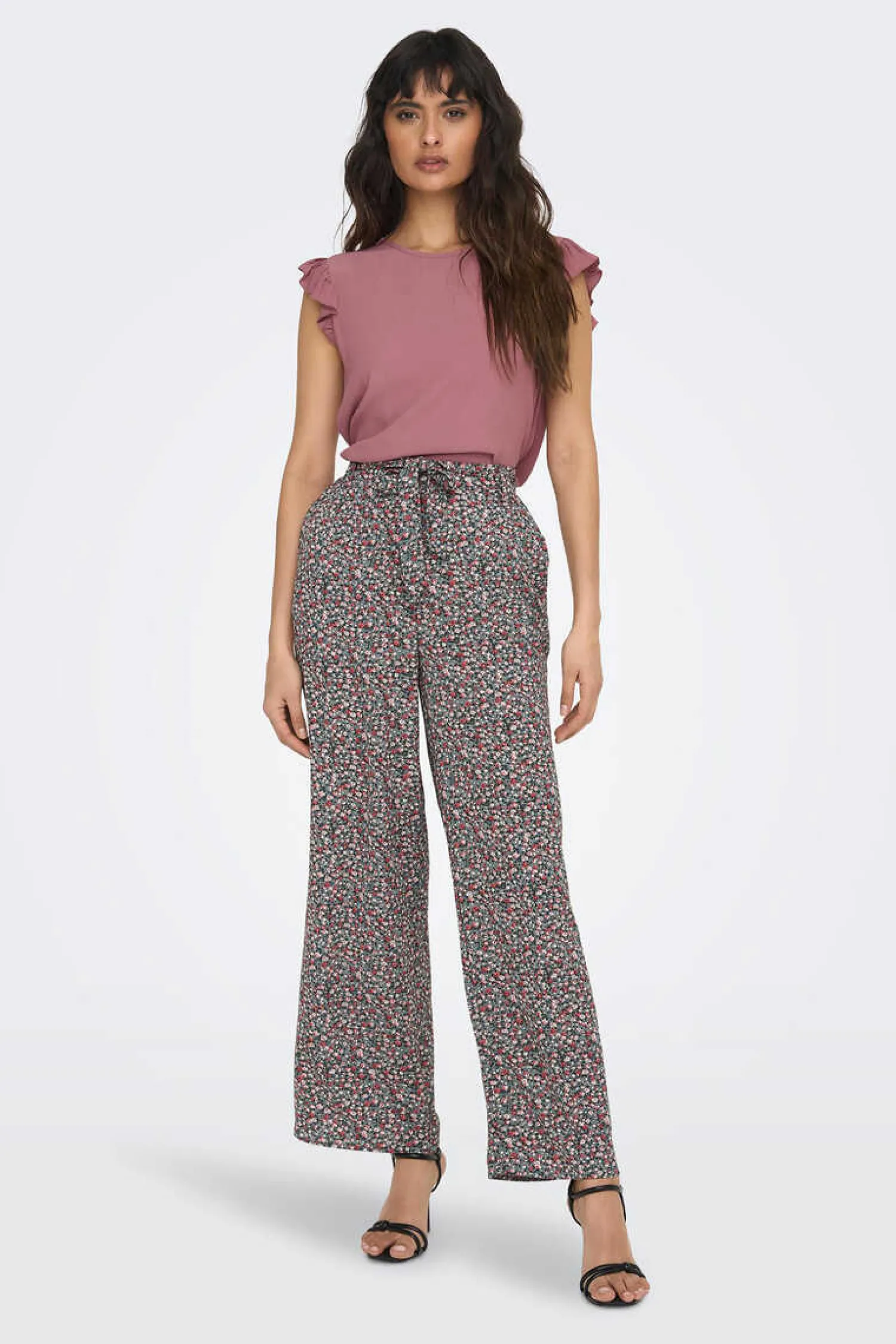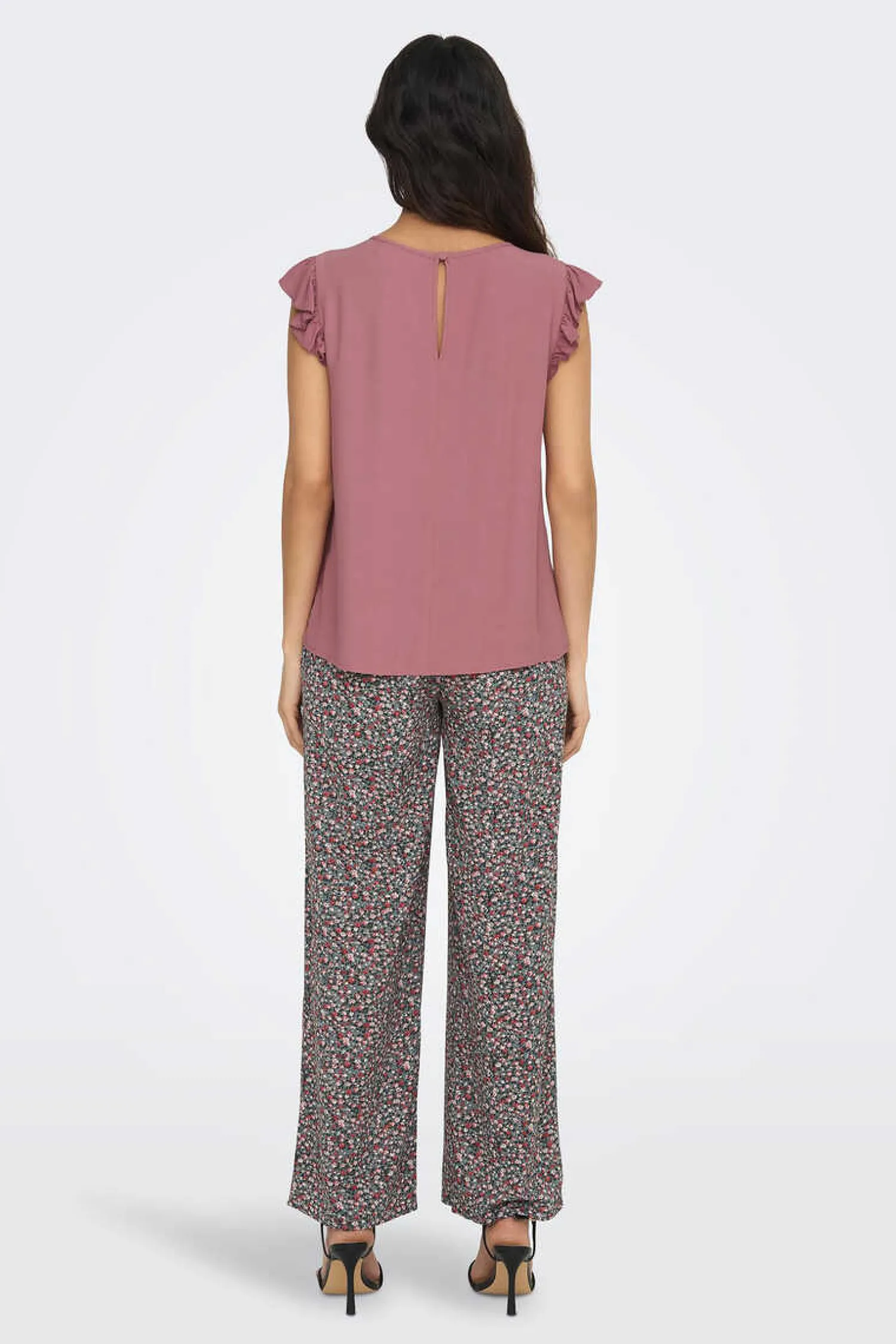 Camisola De Manga Curta Com Detalhe De Folhos E Gola Redonda.