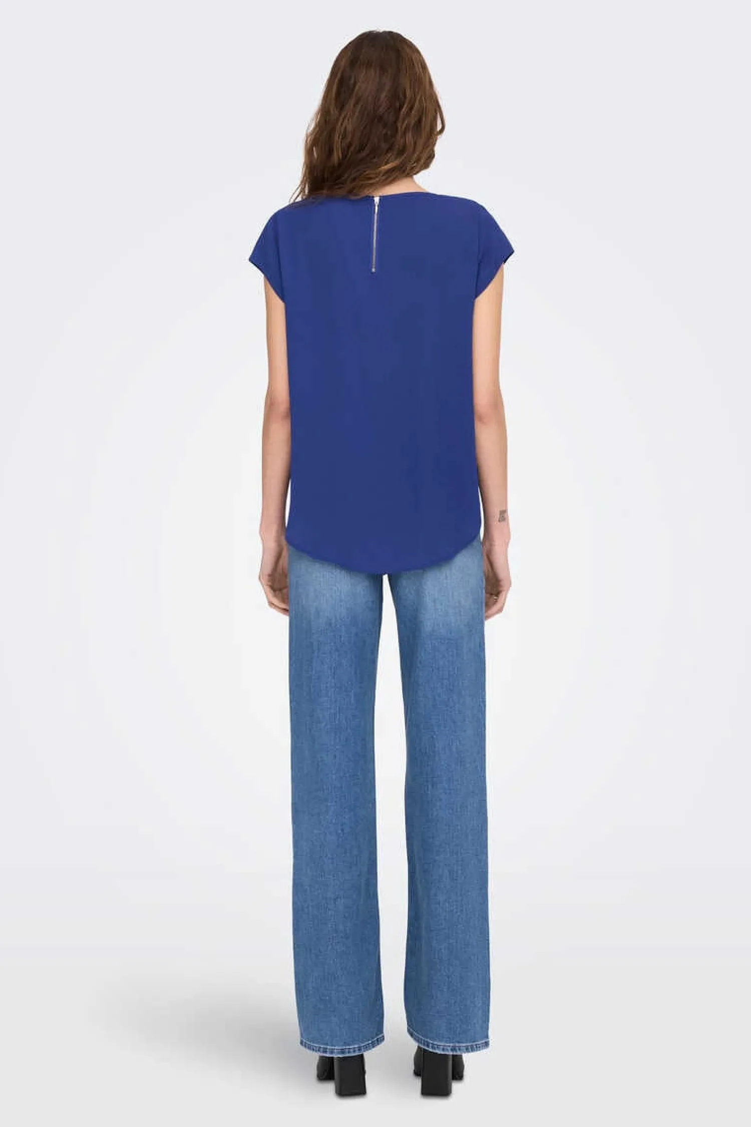 T-Shirt, Tecido Fluido, Gola Redonda, Corte Folgado E Detalhe Fecho-Eclair Nas Costas.