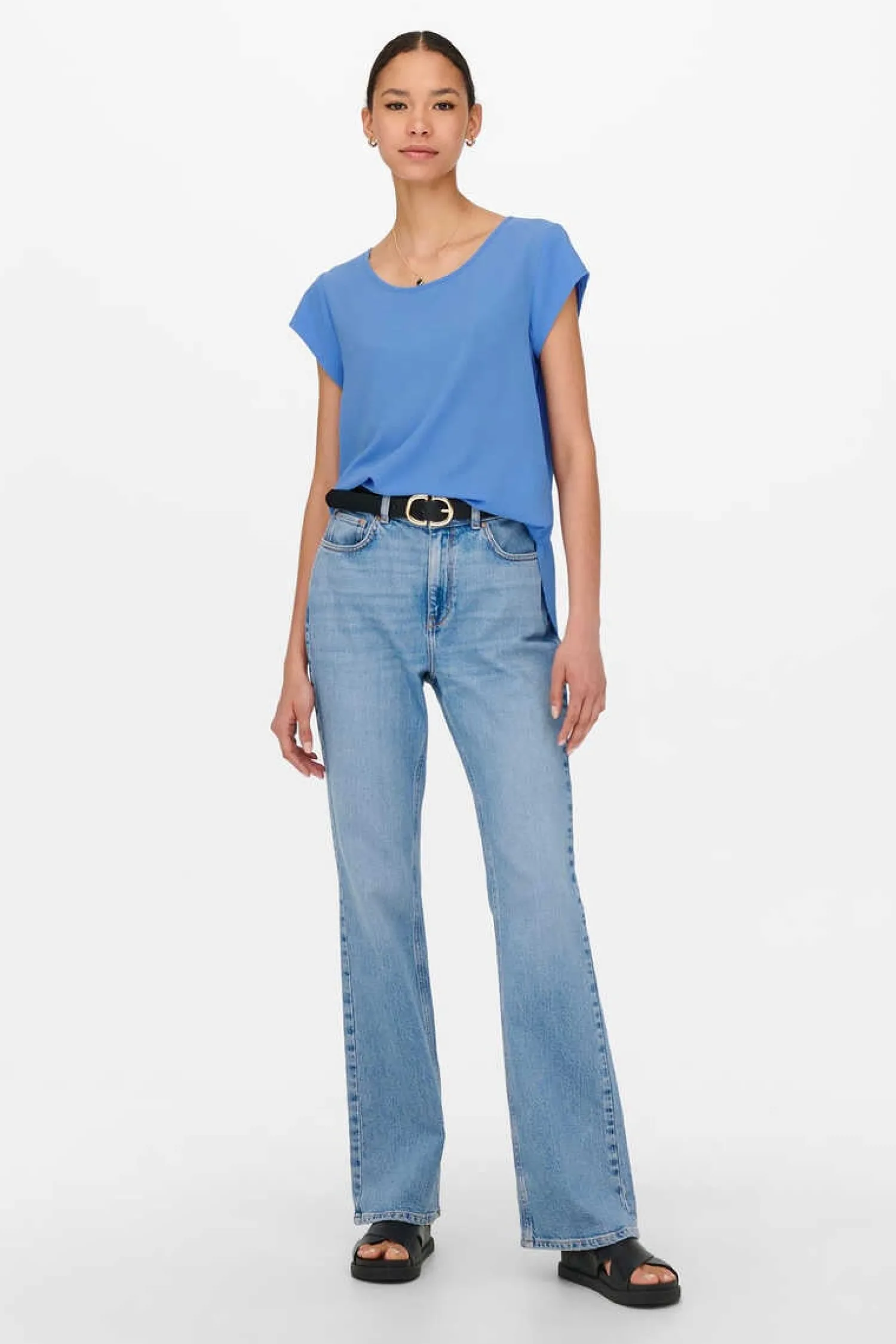 T-Shirt, Tecido Fluido, Gola Redonda, Corte Folgado E Detalhe Fecho-Eclair Nas Costas.