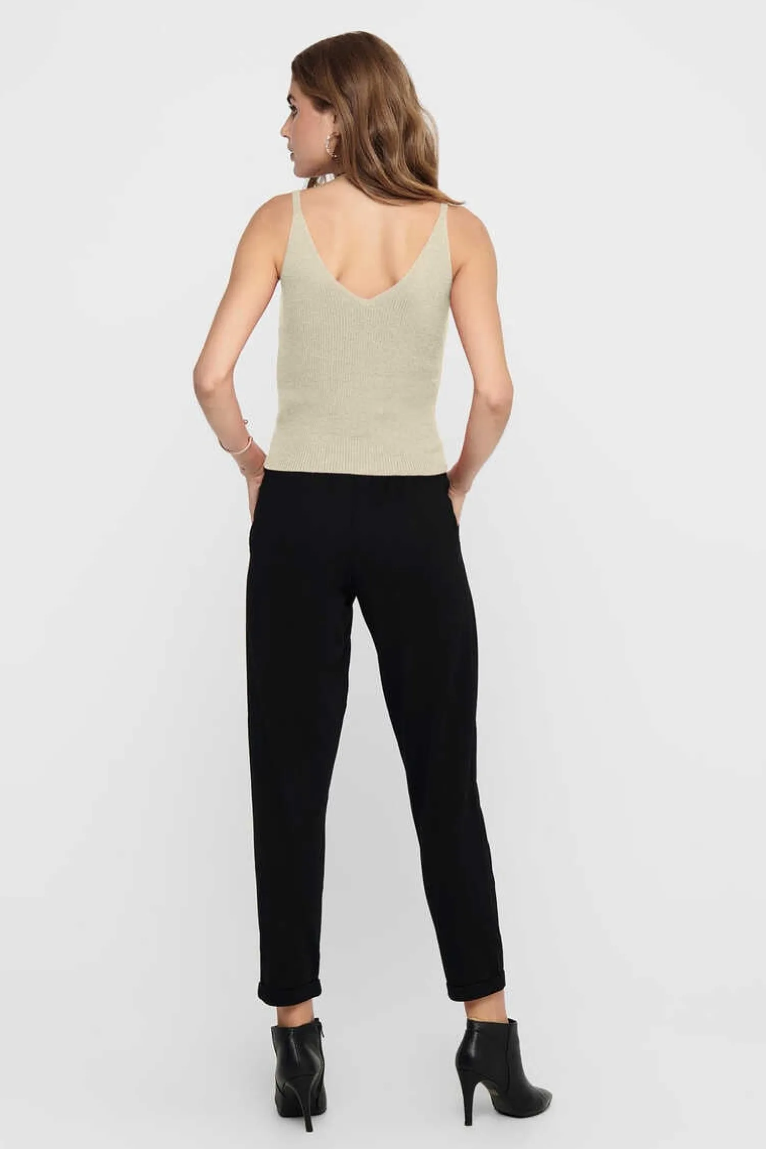 Top Ajustado De Alcas Unicolor E Decote Em Forma De V. Contem Linho.