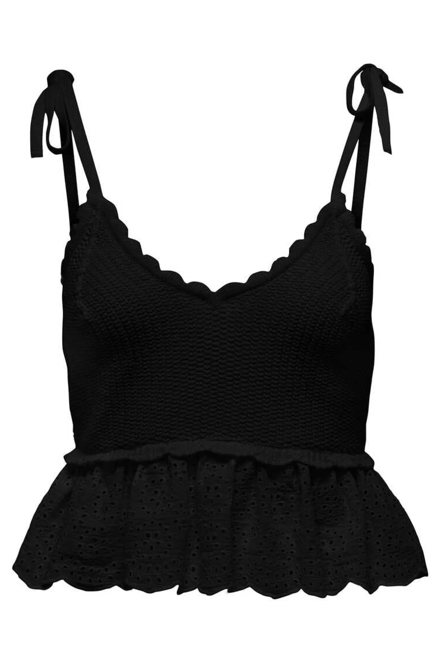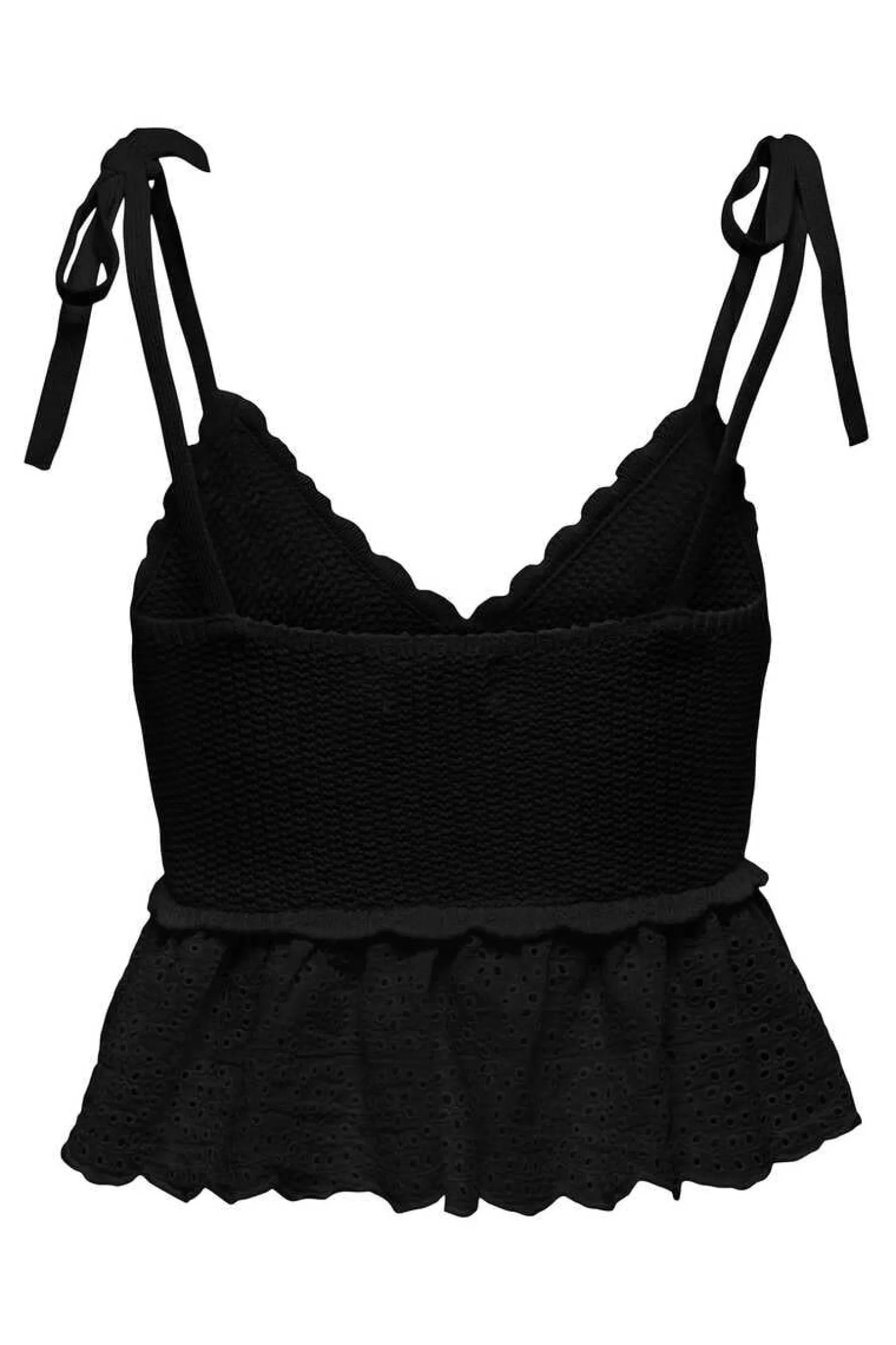 Top De Malha Com Alcas Finas, Folho De Popelina Na Parte Baixa.
