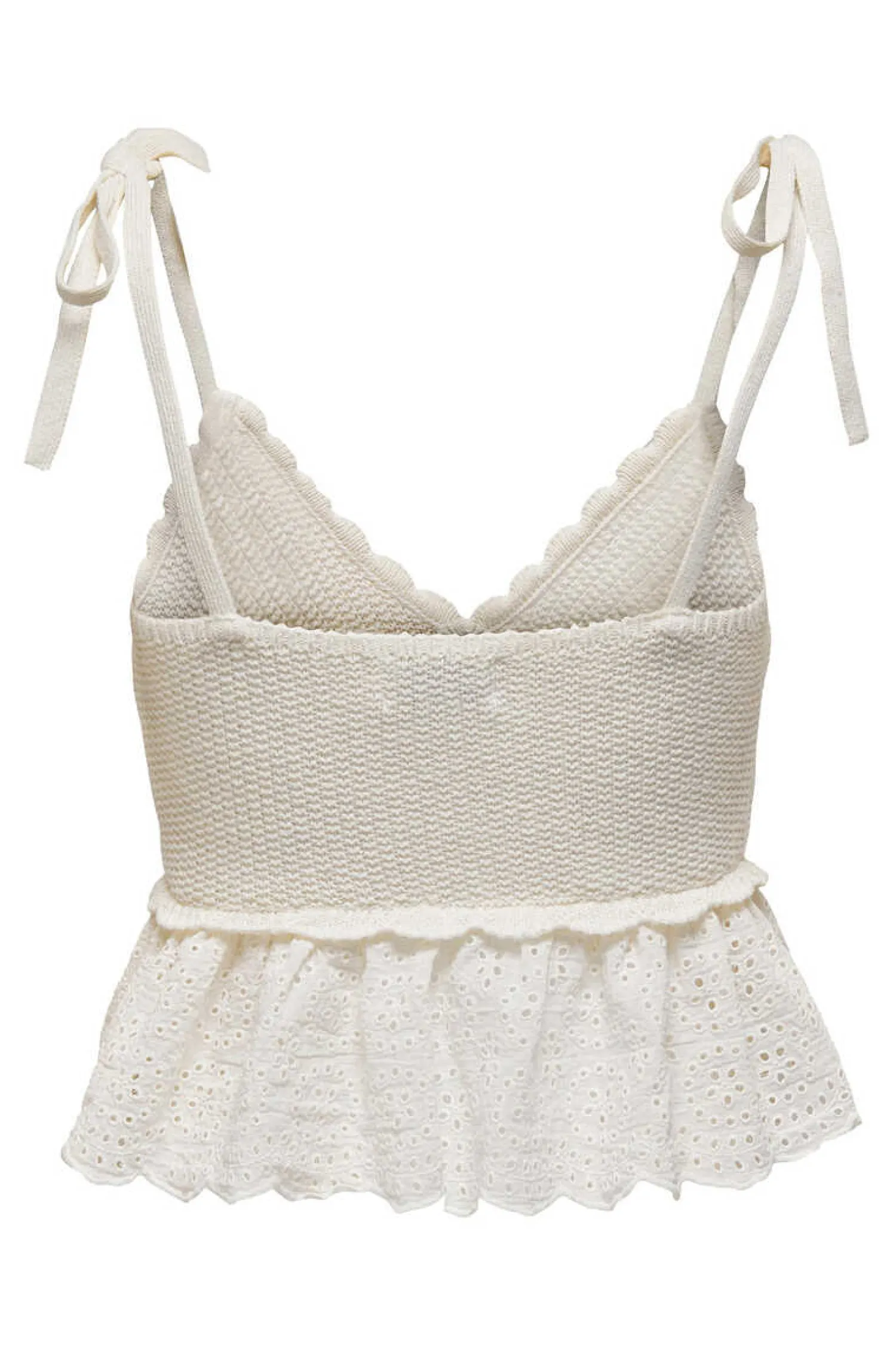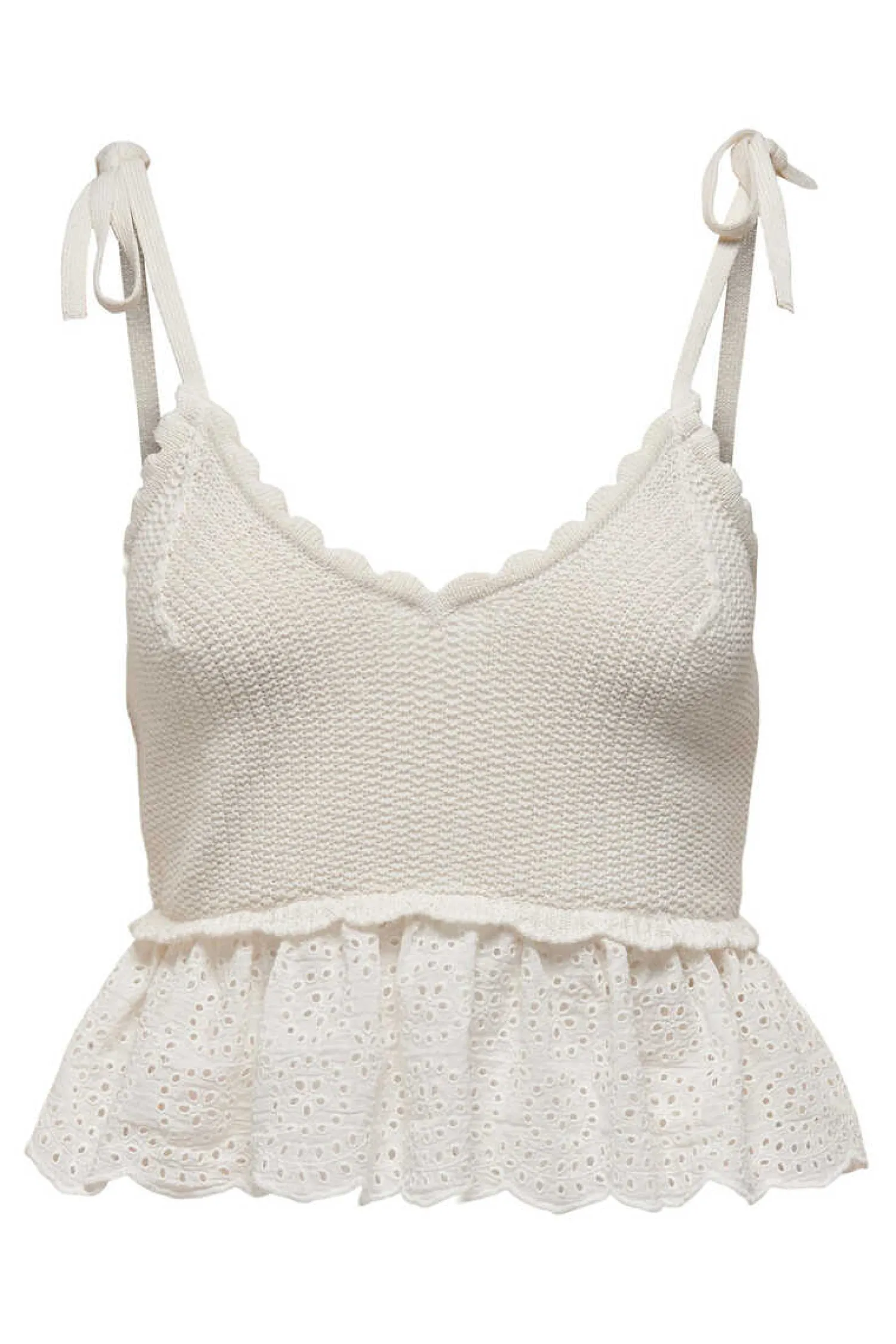 Top De Malha Com Alcas Finas, Folho De Popelina Na Parte Baixa.