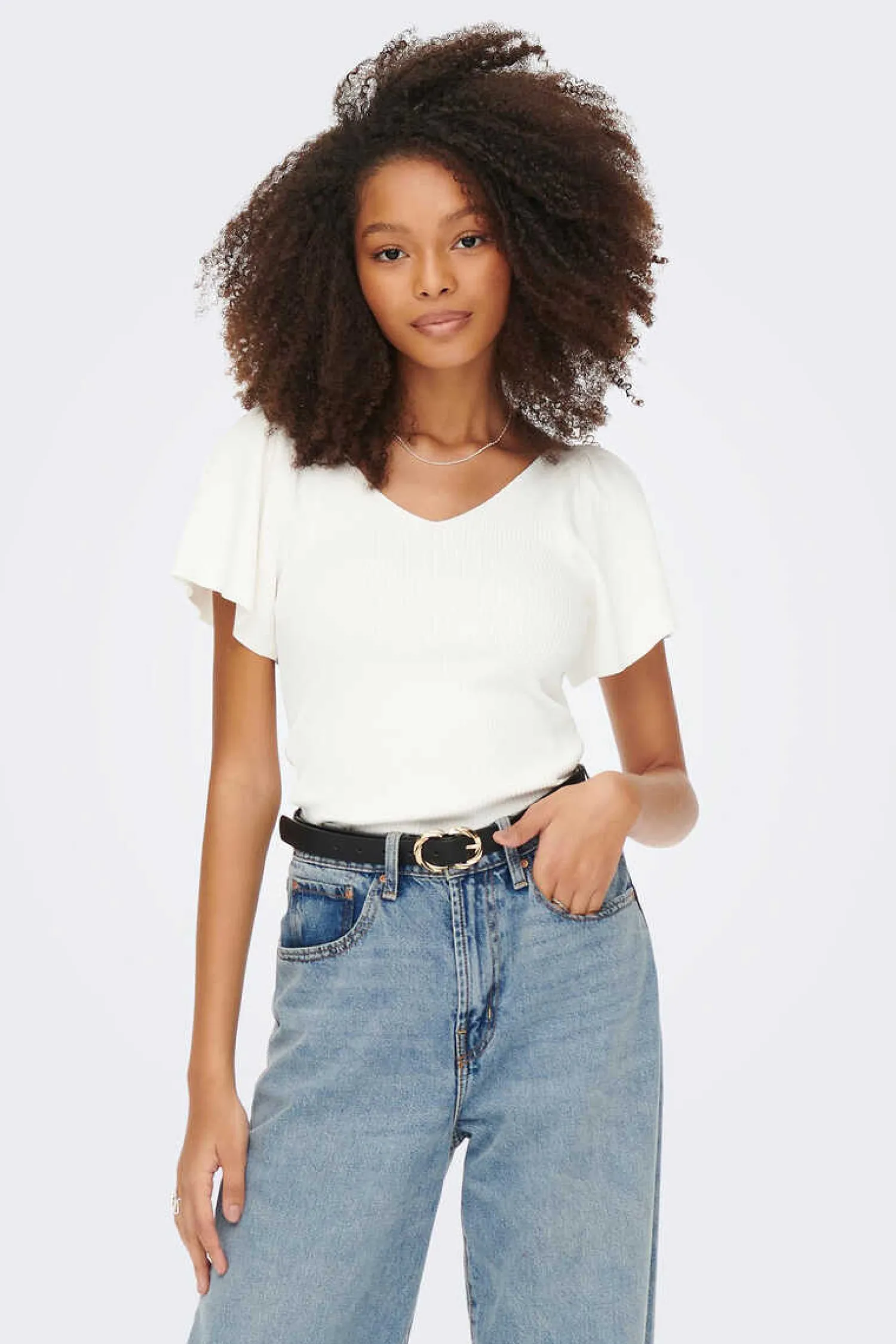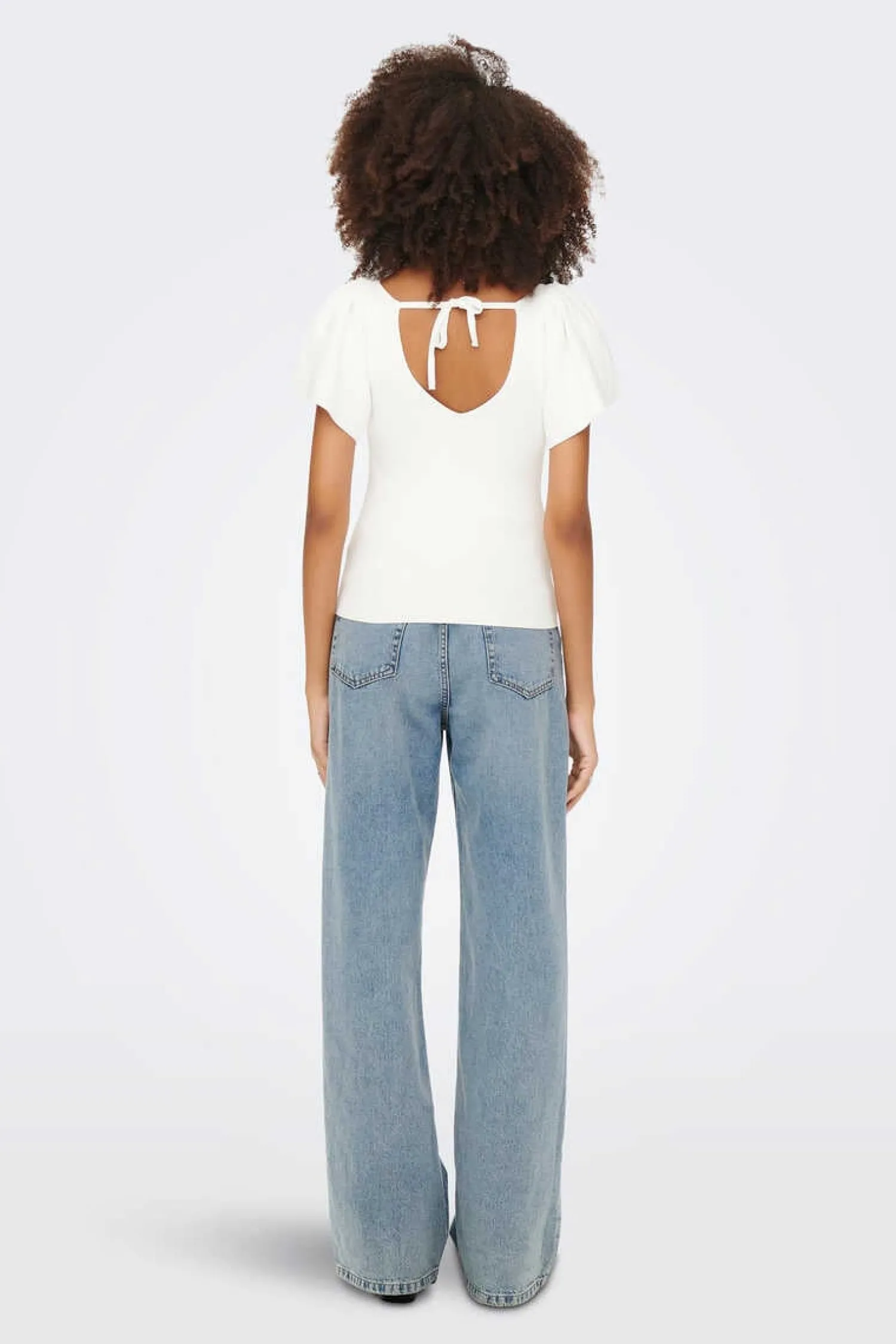 Top De Manga Curta Folgada, Com Lacada Decorativa Na Parte Posterior.