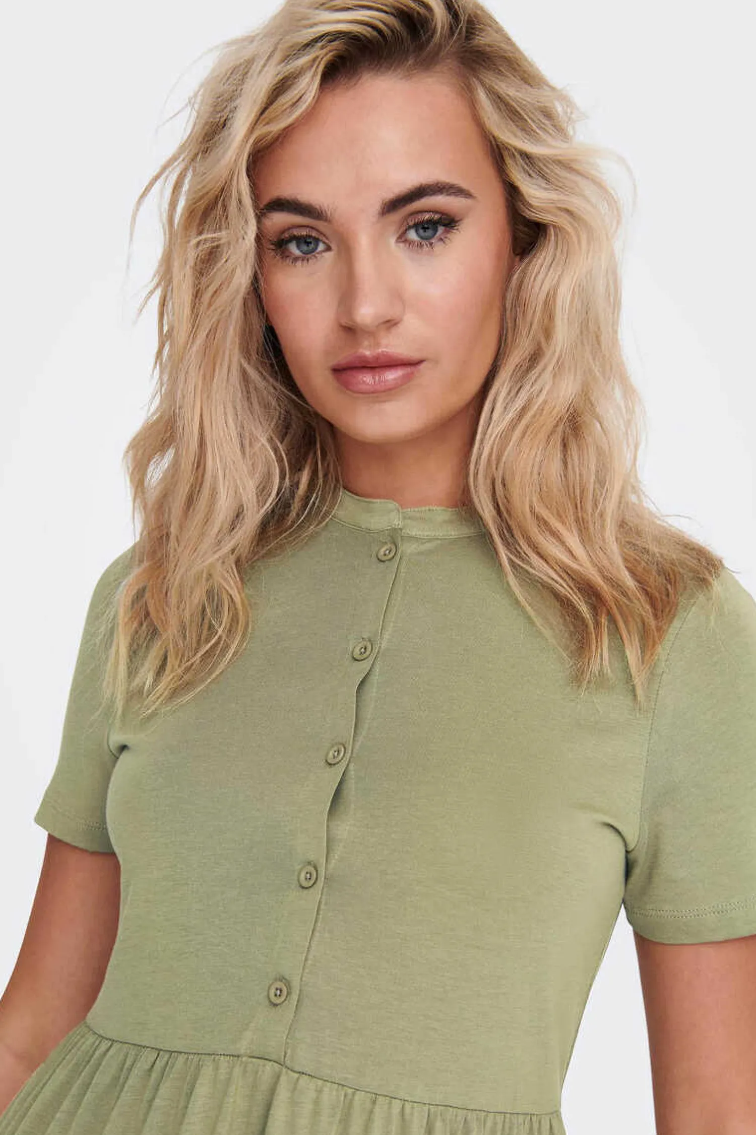 Vestido Curto Curto Com Mangas Curtas E Detalhe De Botoes Na Frente