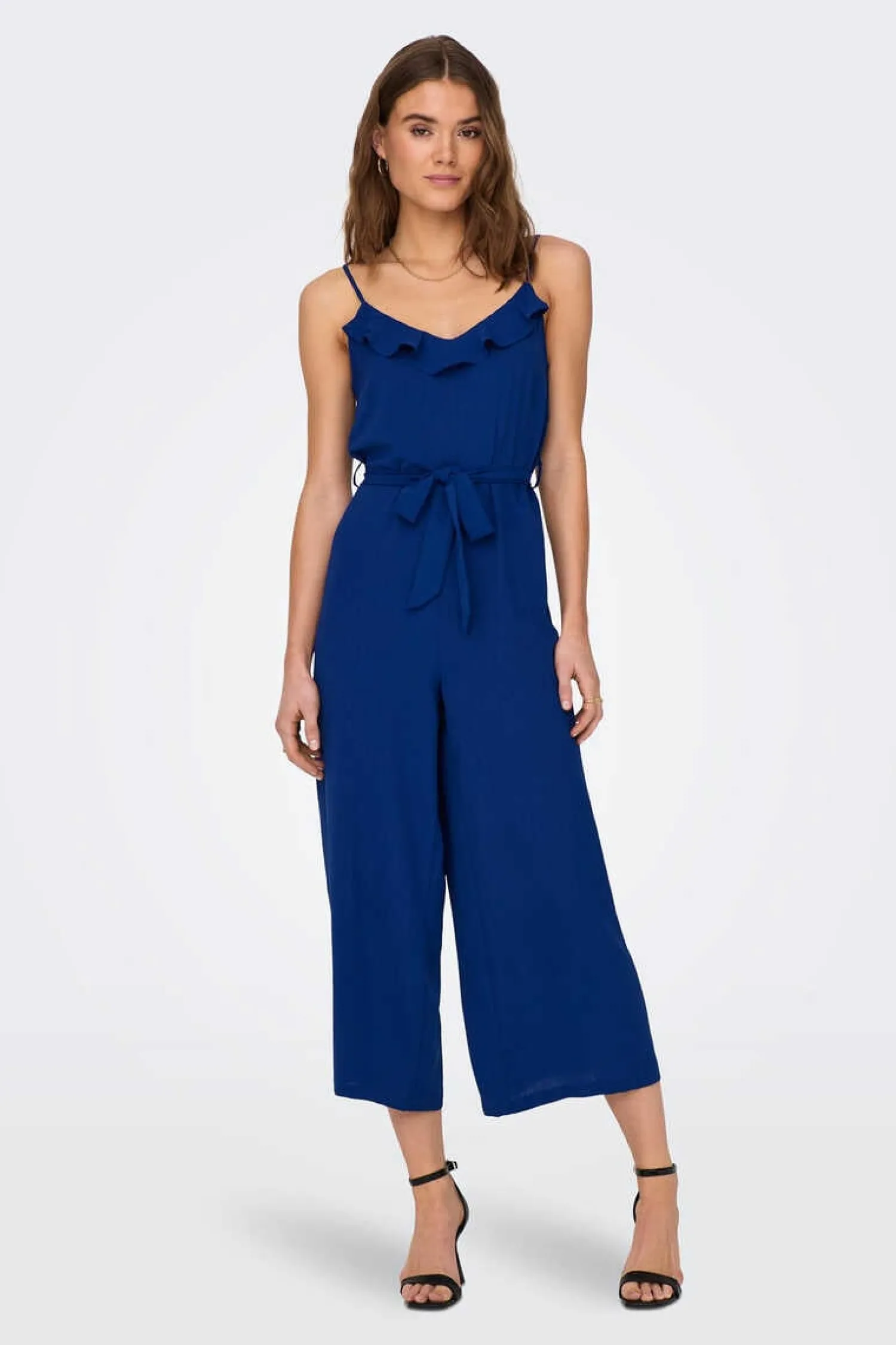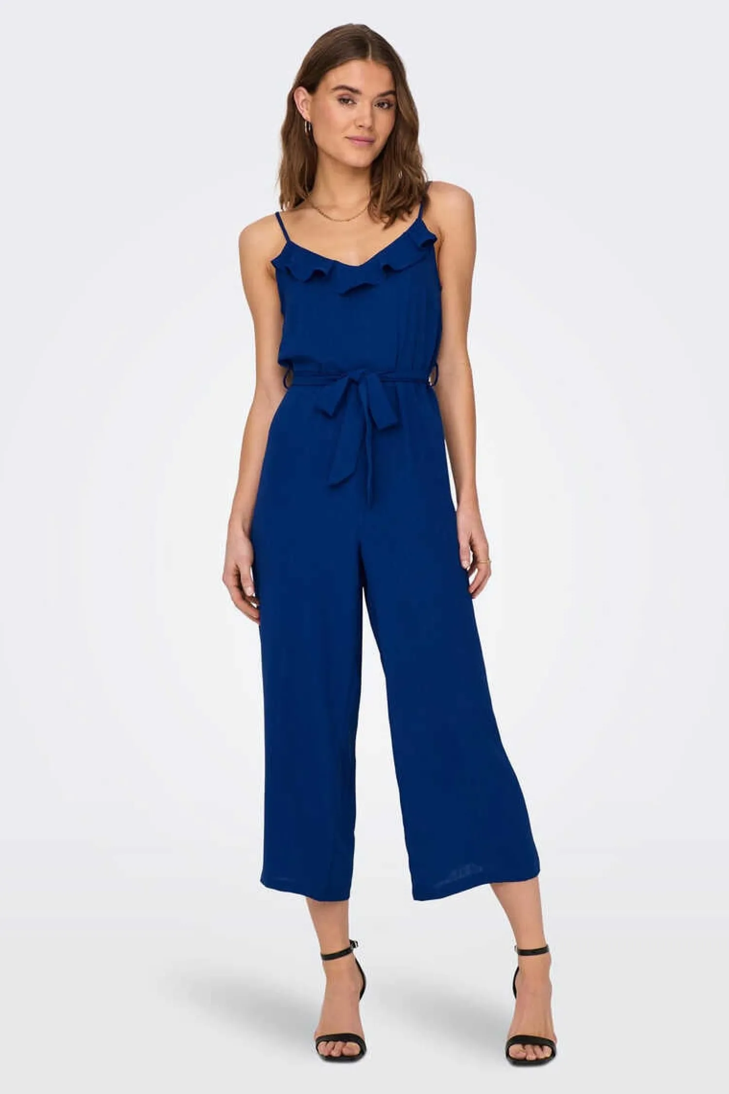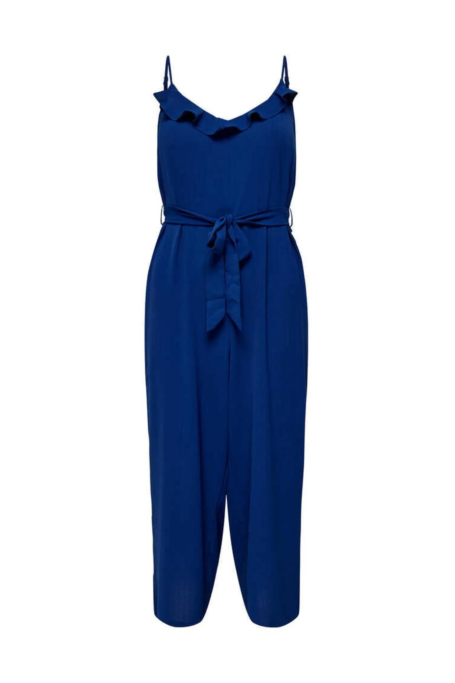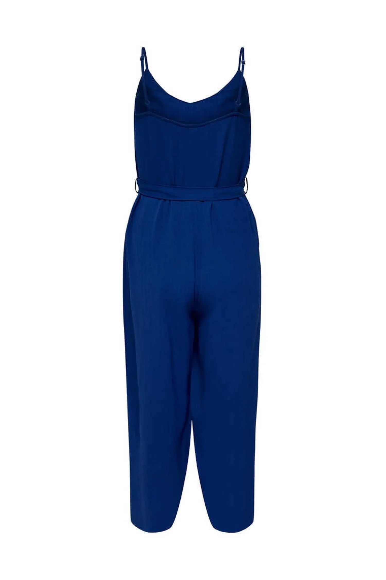 Macacao Comprido De Alcas, Fluido, Com Decote Em Bico E Laco Na Cintura.