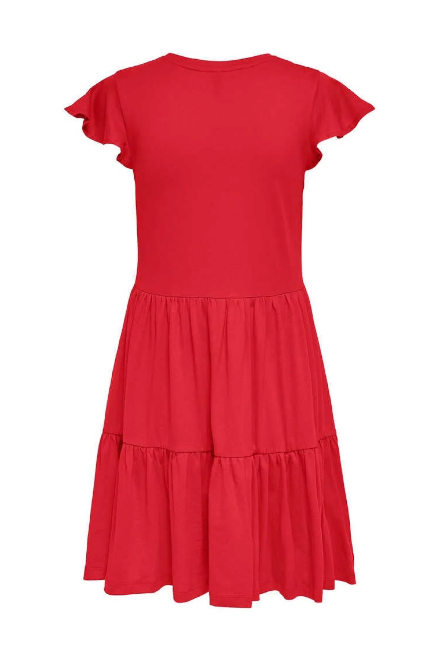 Vestido De Manga Curta Com Decote Em Forma De Bico. Detalhes De Folhos