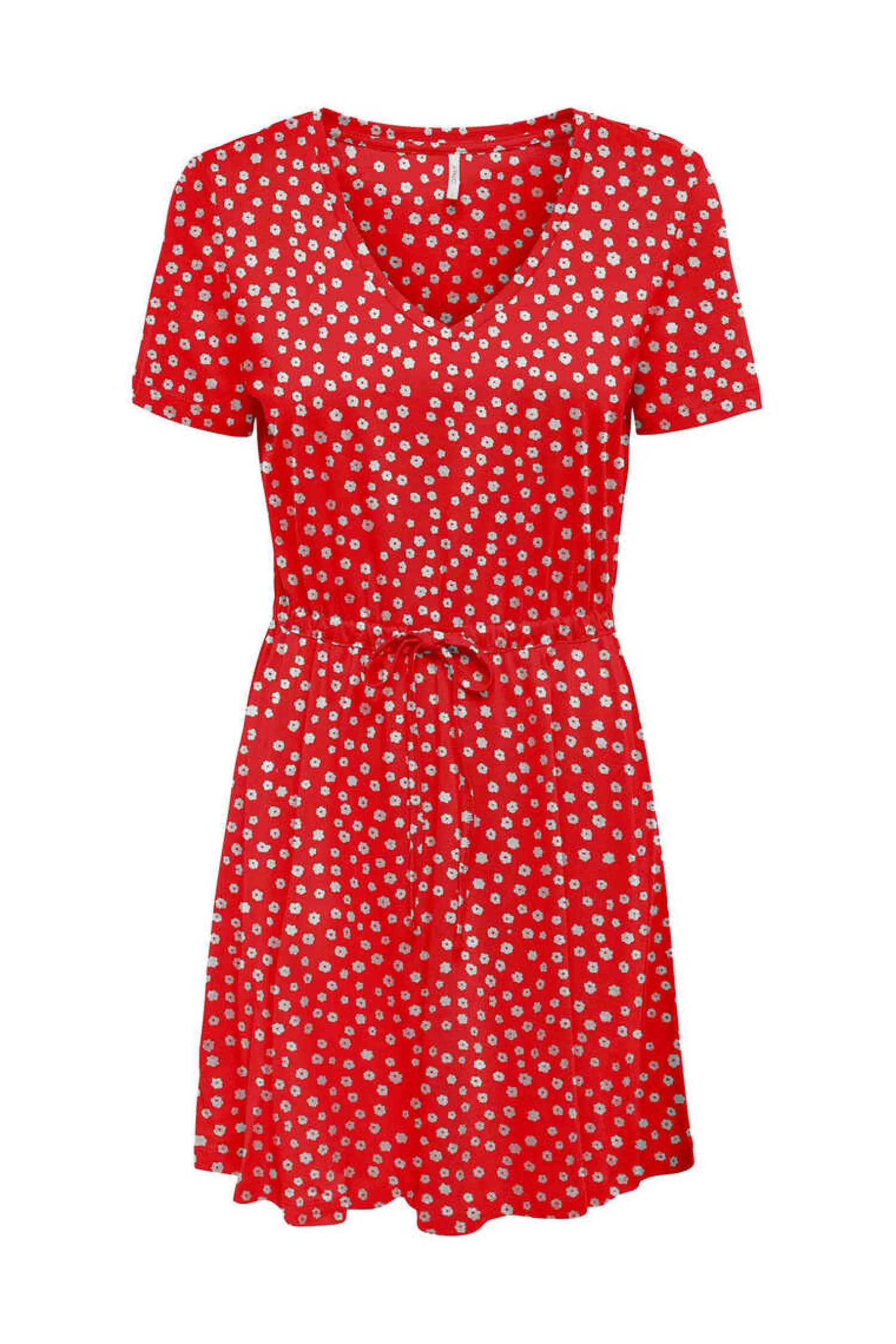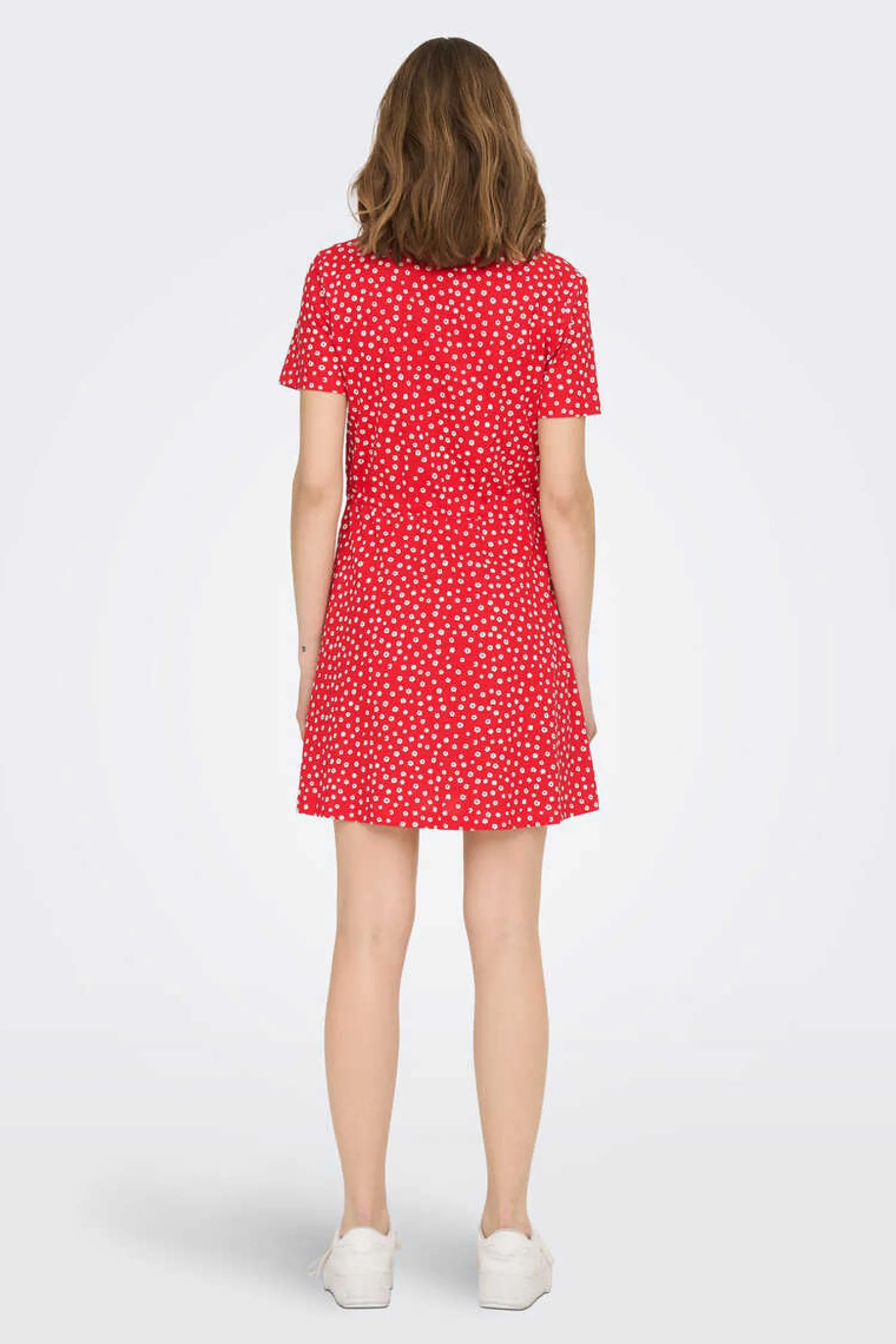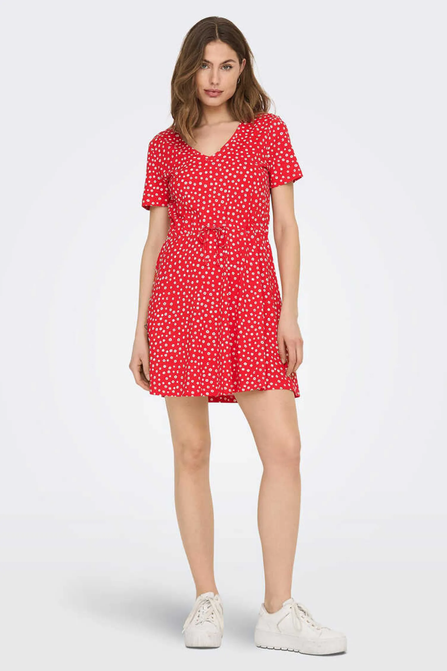 Vestido Curto De Manga Curta Com Decote Em V E Laco Ajustavel Na Cintura.