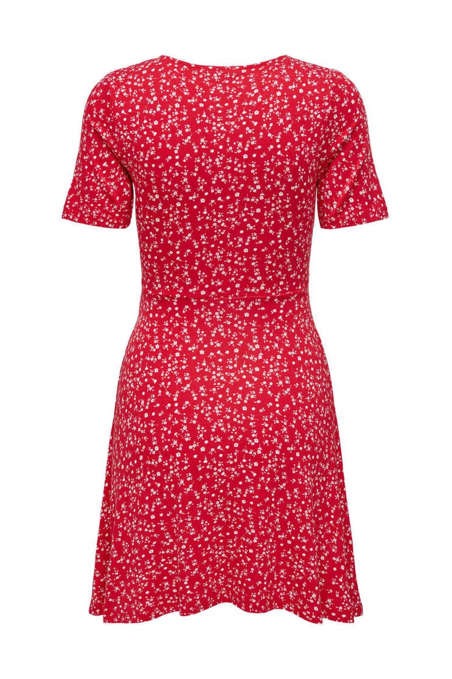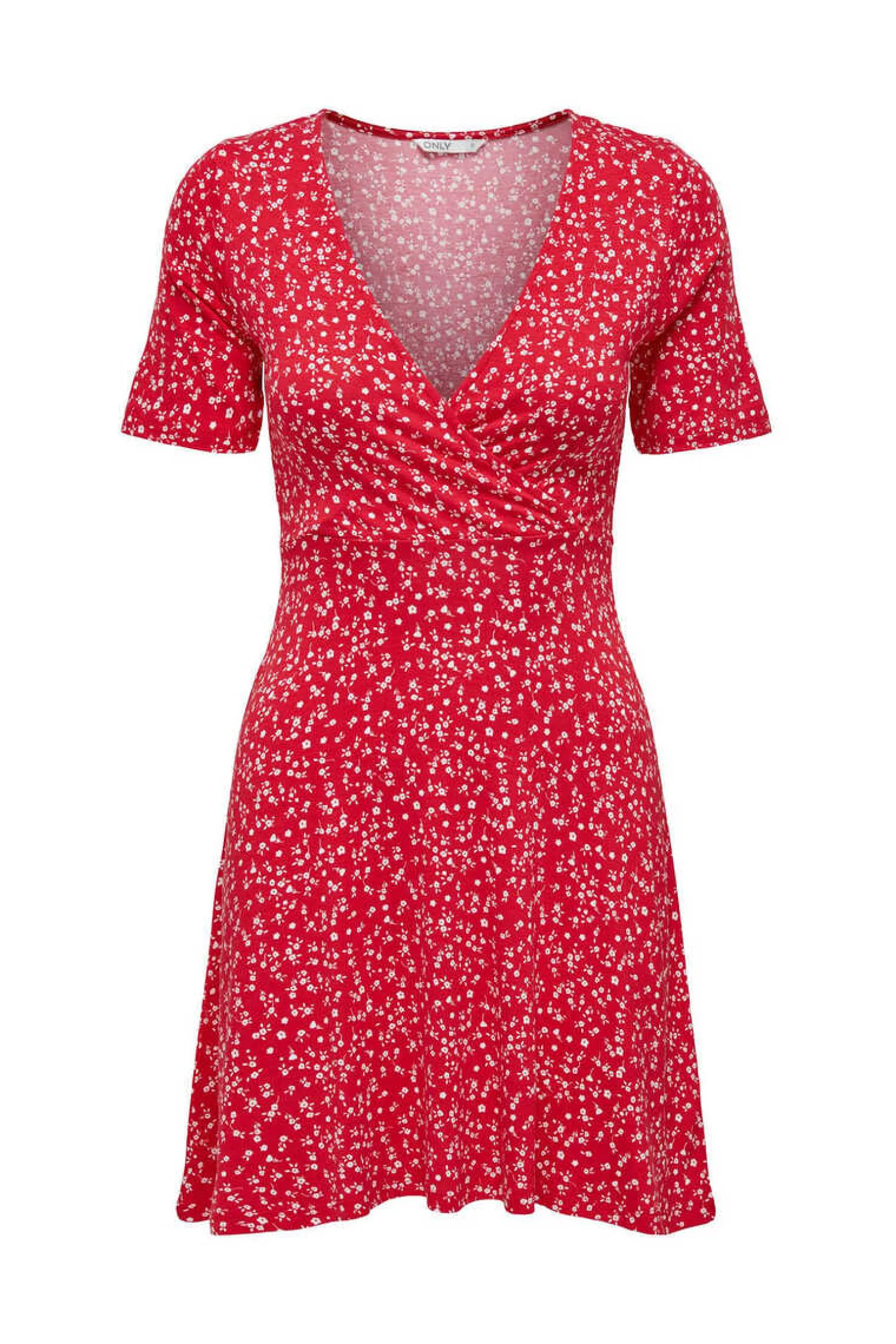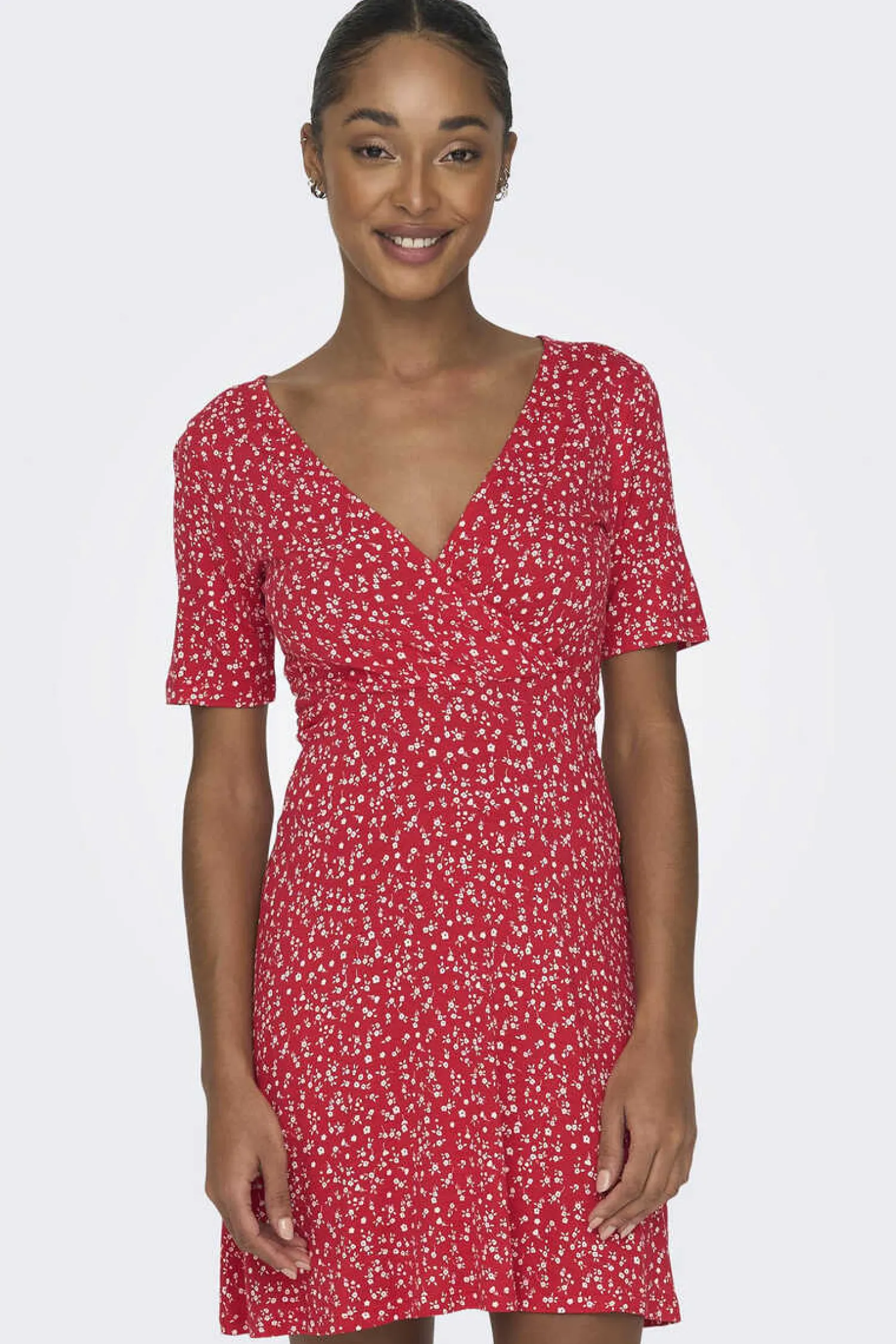 Vestido Curto De Manga Curta Com Decote Em Bico E Estampado De Flores.
