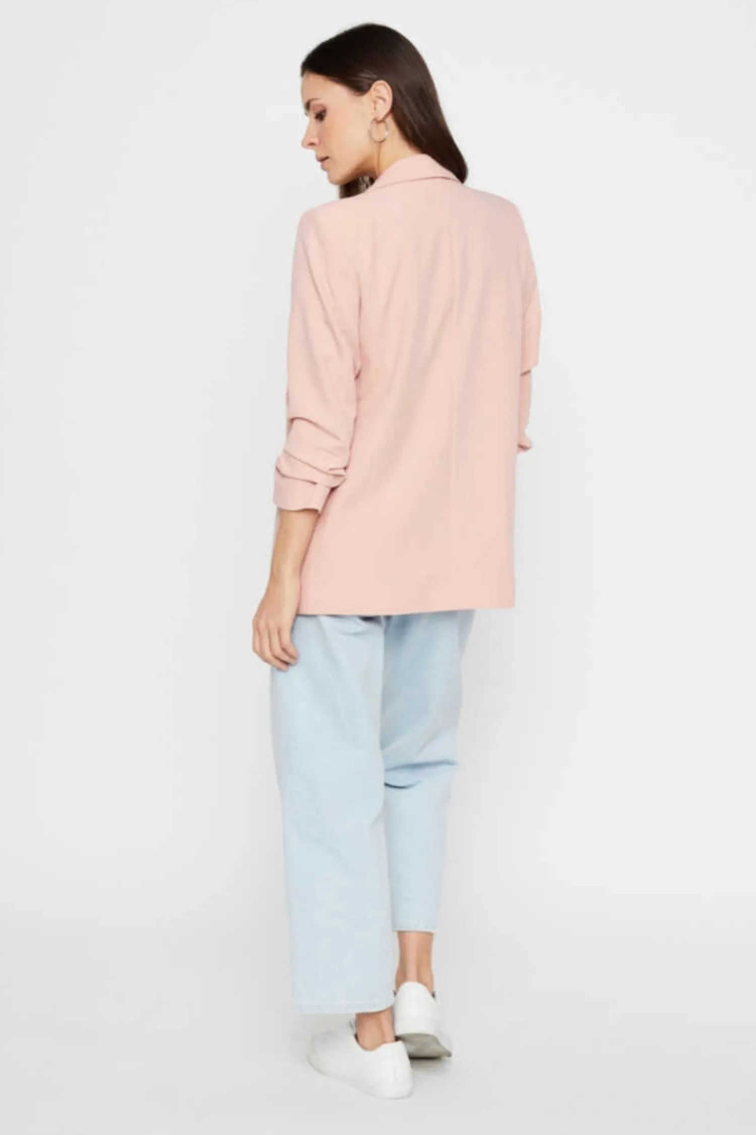 Casaco Estilo Blazer Fluido, De Manga 3/4. Com Lapelas, Sem Botoes.