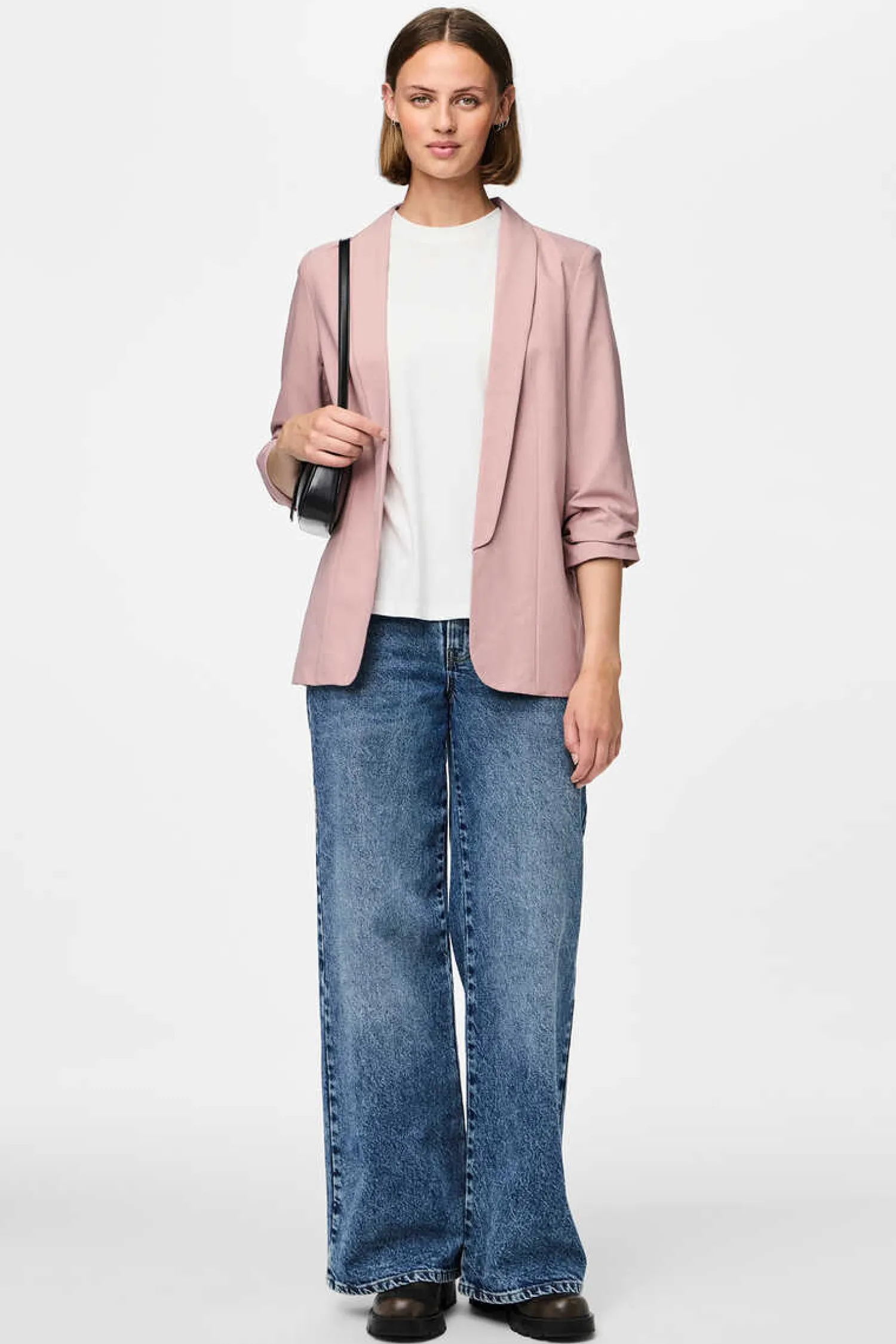 Casaco Estilo Blazer Fluido, De Manga 3/4. Com Lapelas, Sem Botoes.