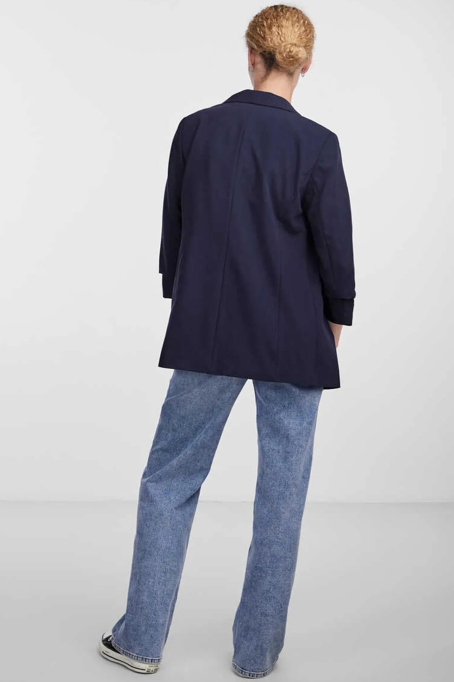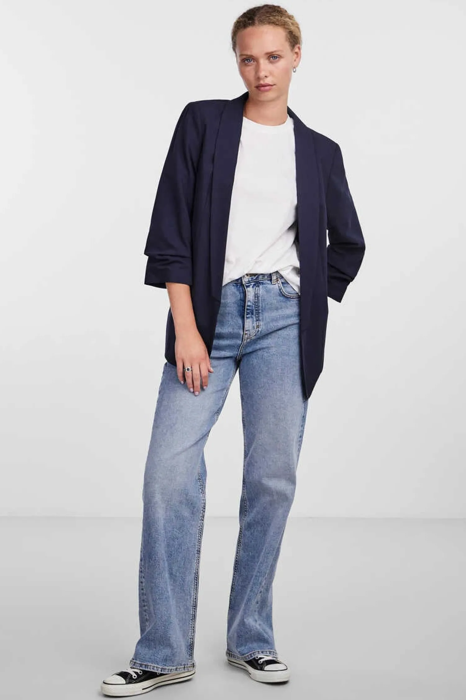 Casaco Estilo Blazer Fluido, De Manga 3/4. Com Lapelas, Sem Botoes.