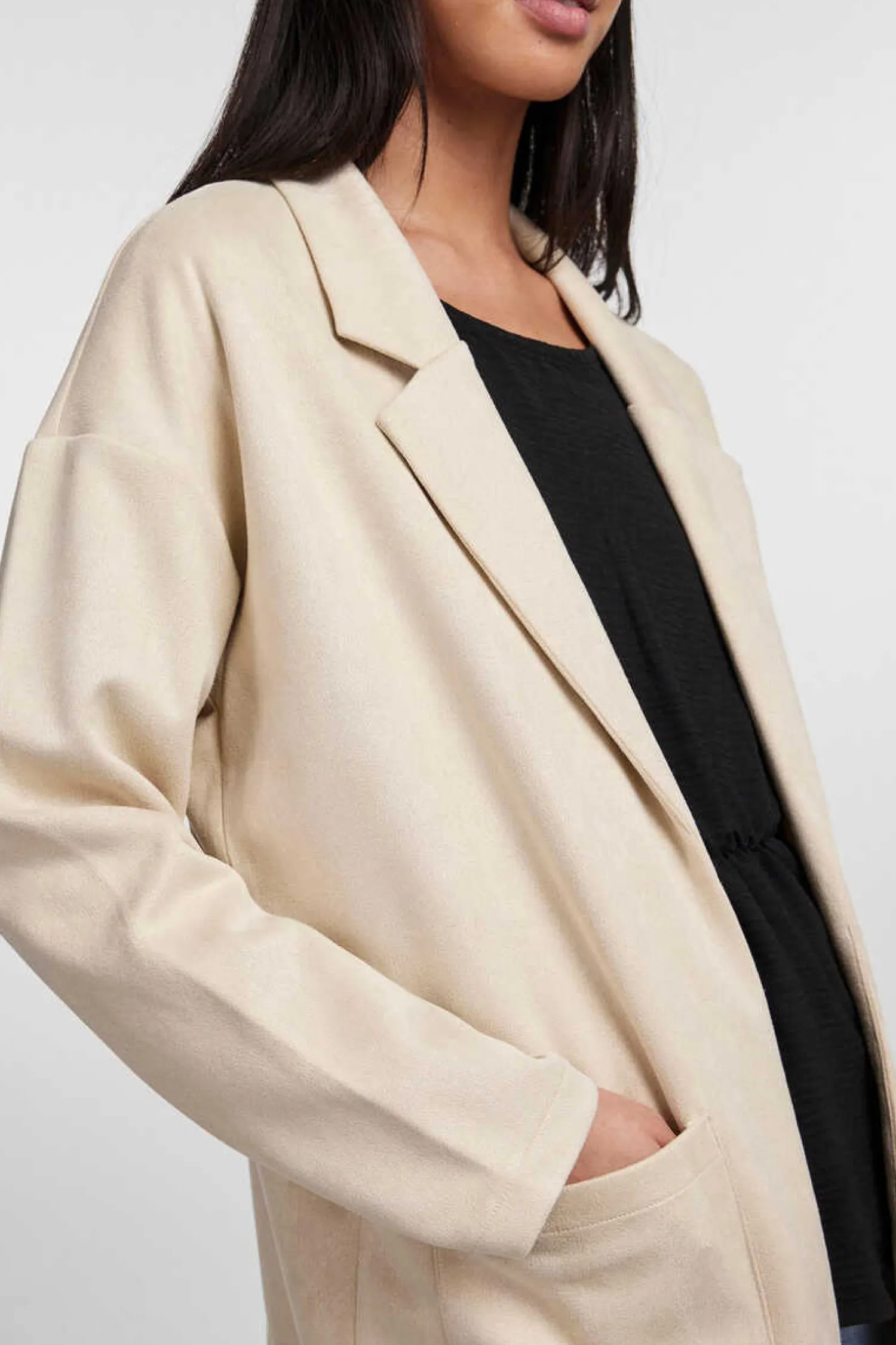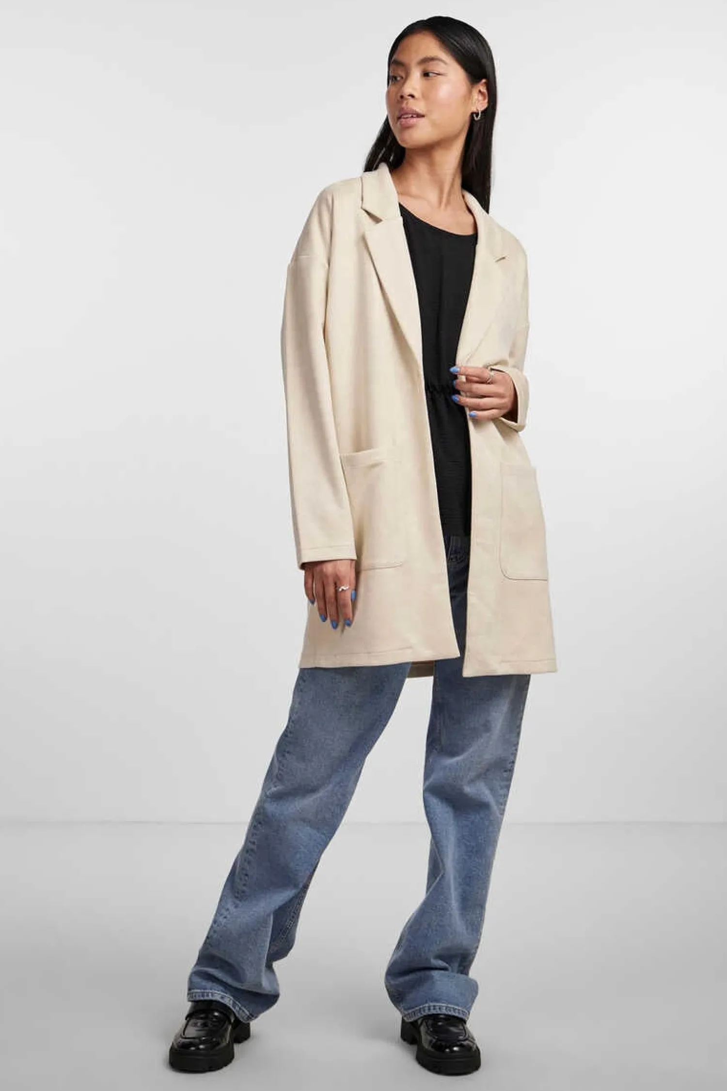 Casaco Comprido Sem Fecho. De Manga Comprida E Decote Com Lapelas. Dois Bolsos A Frente E De Ombro Caido.