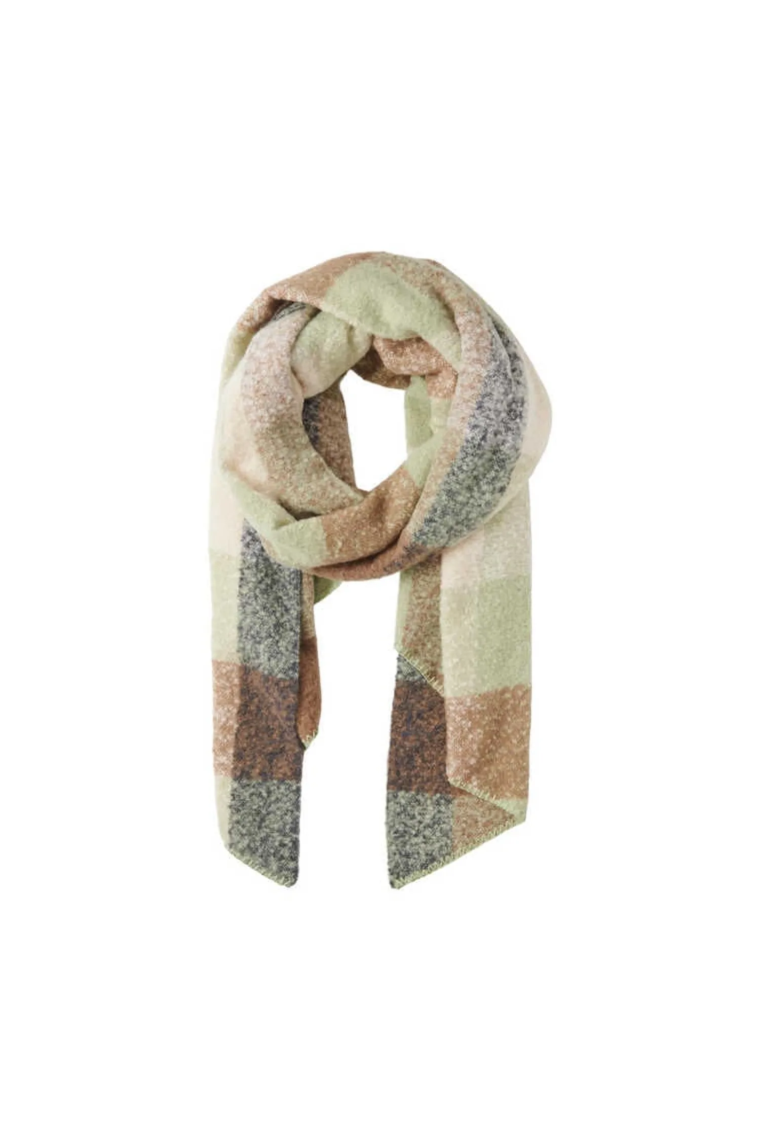 Cachecol Comprido De Tato Suave Com Acabamento Assimetrico E Estampagem De Xadrez.