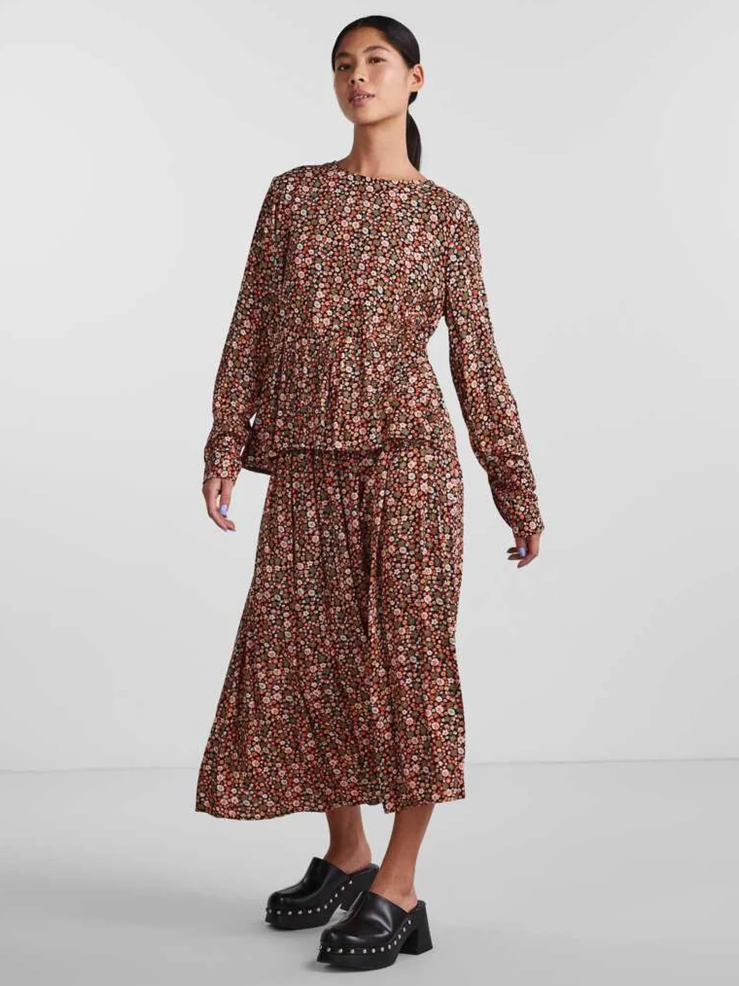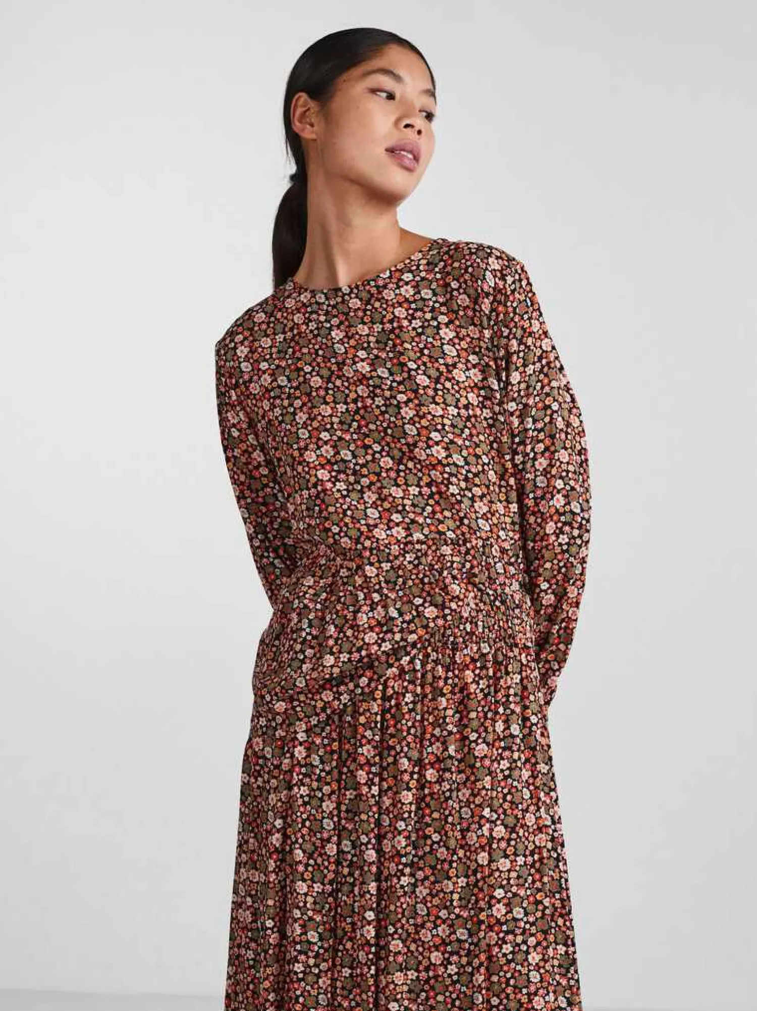 Camisa De Mulher De Manga Comprida Com Estampado Floral E Gola Fechada.