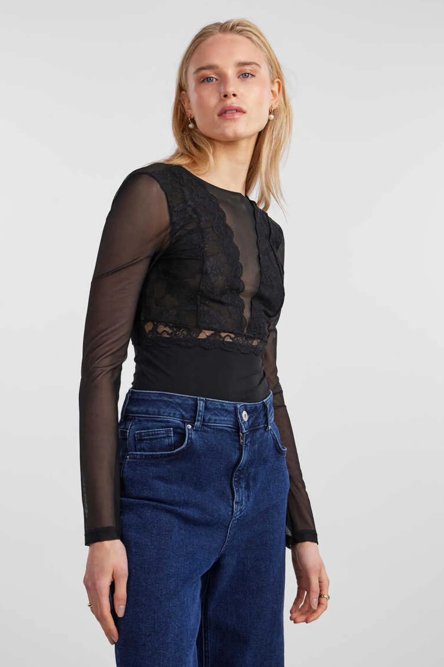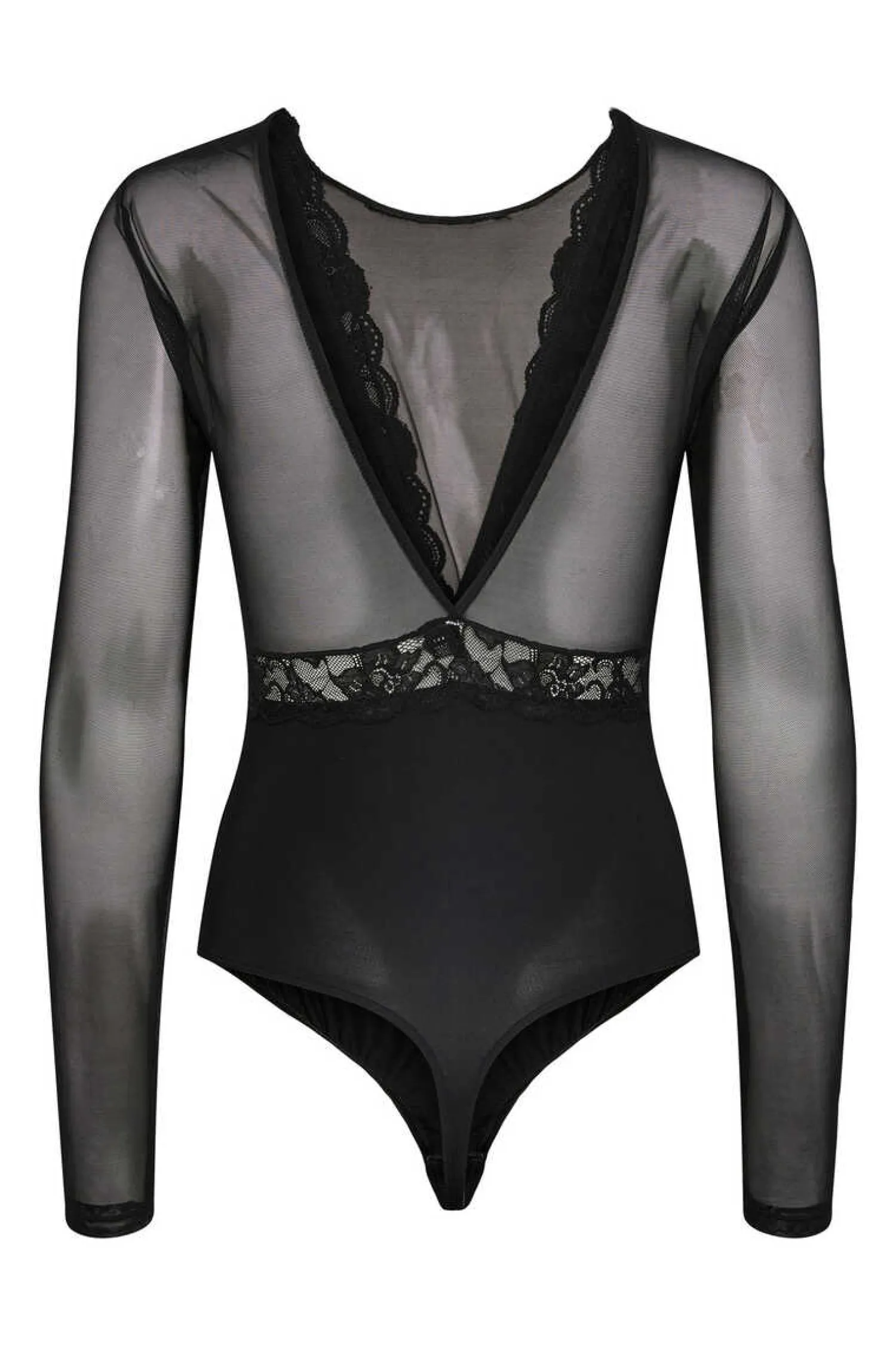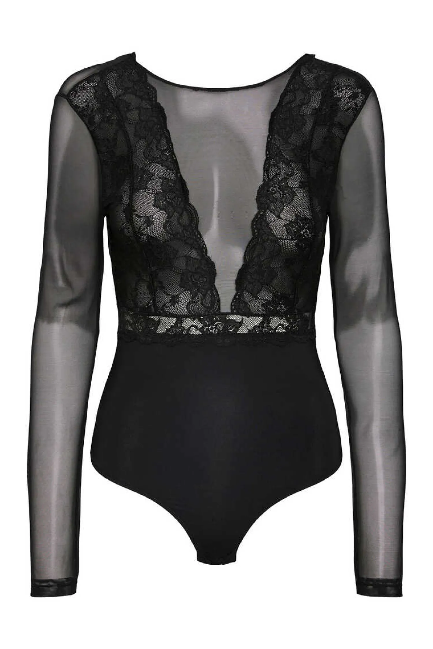 Body De Corte Tanga, De Manga Comprida, Decote Lingerie E Costas Fechadas. Fecho Traseiro Com Botao.