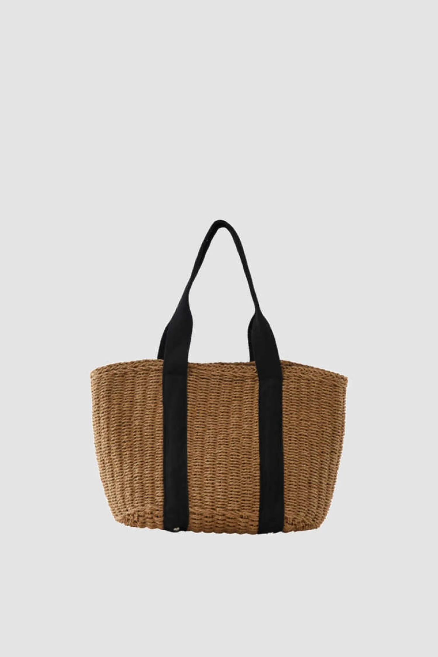 Mala De Palha 23 X 40 X 30, Com Asas De Tira Preta.