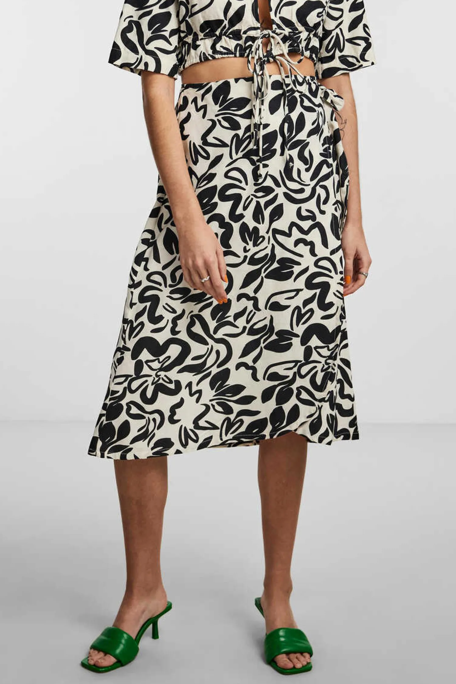 Saia Midi Com Estampado Floral. Fecho Em Forma De Laco.
