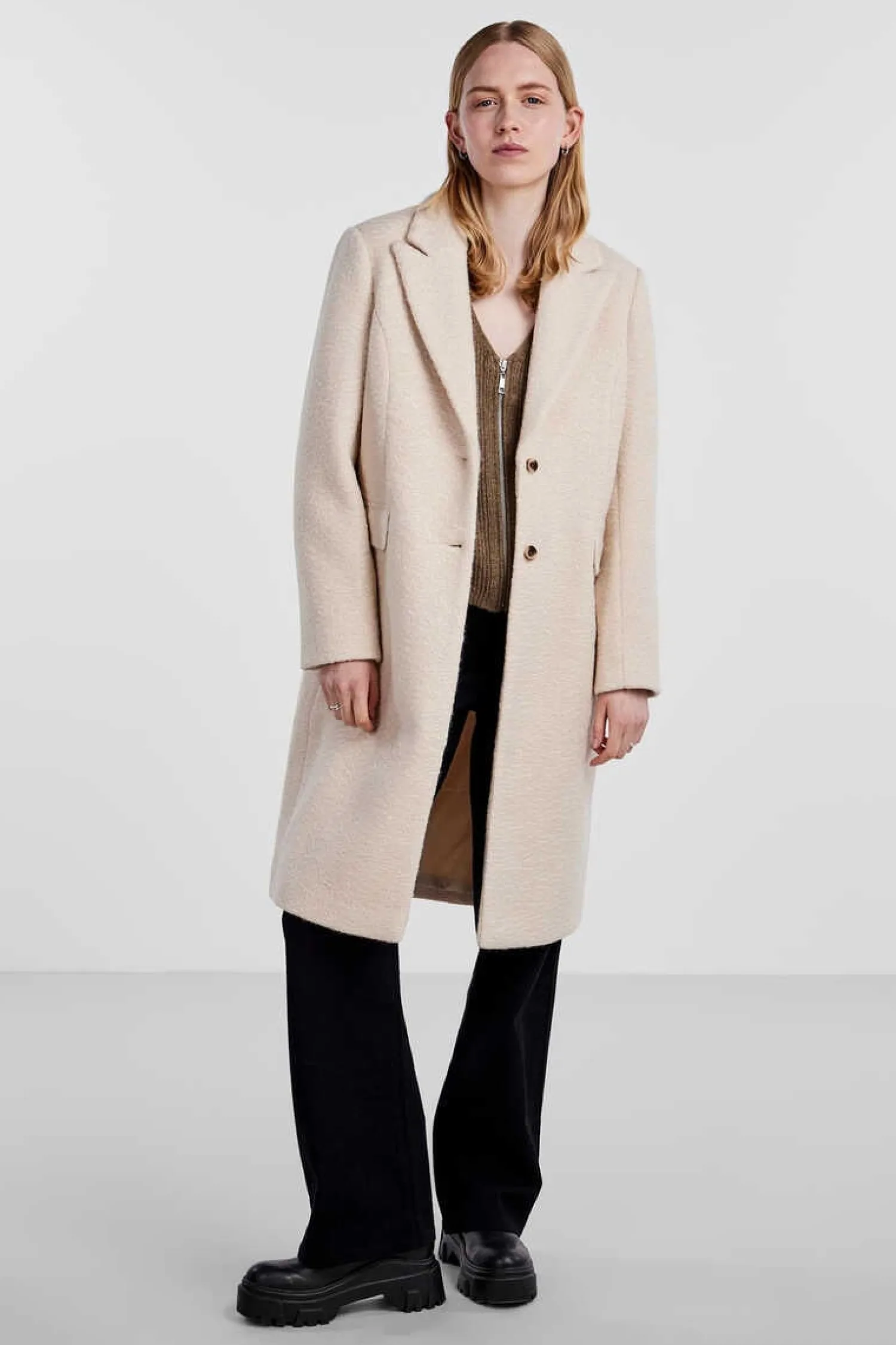 Sobretudo Comprido Reto, Gola Com Lapela, Bolsos Laterais, Fecho Com Botoes.