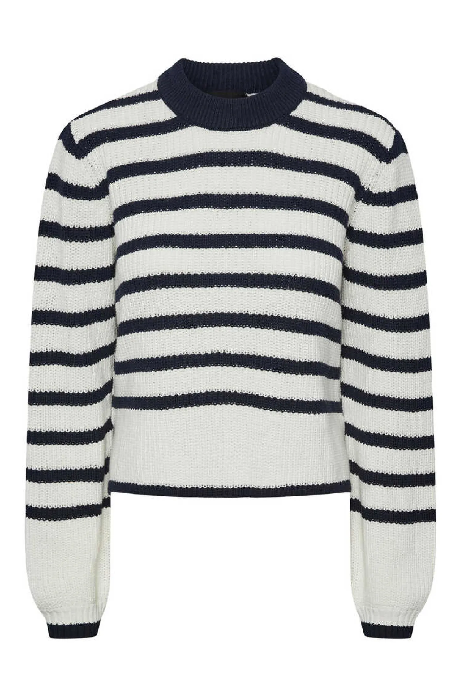 Camisola De Malha E Gola Fechada. Estampado De Riscas E Manga Comprida.
