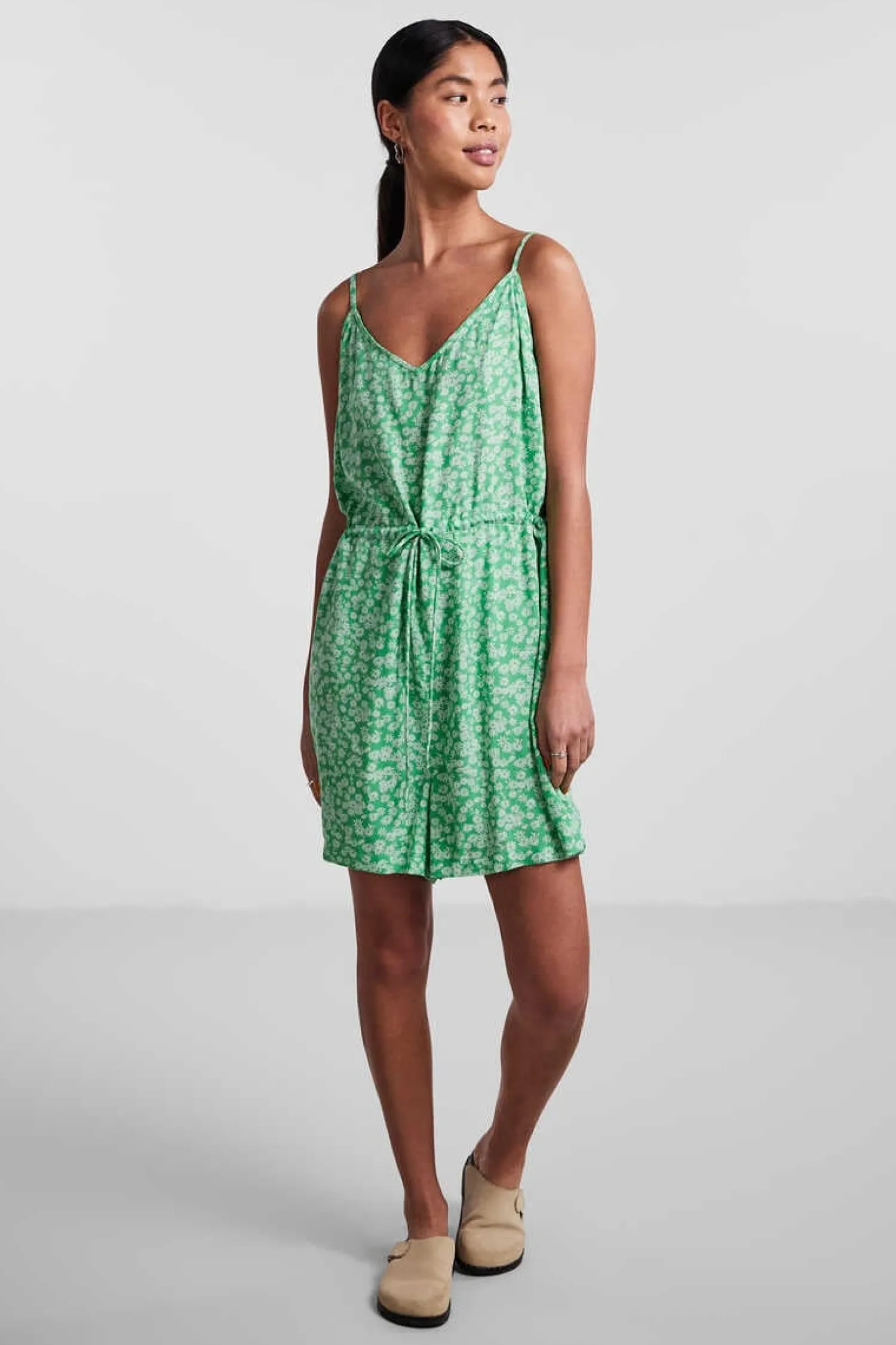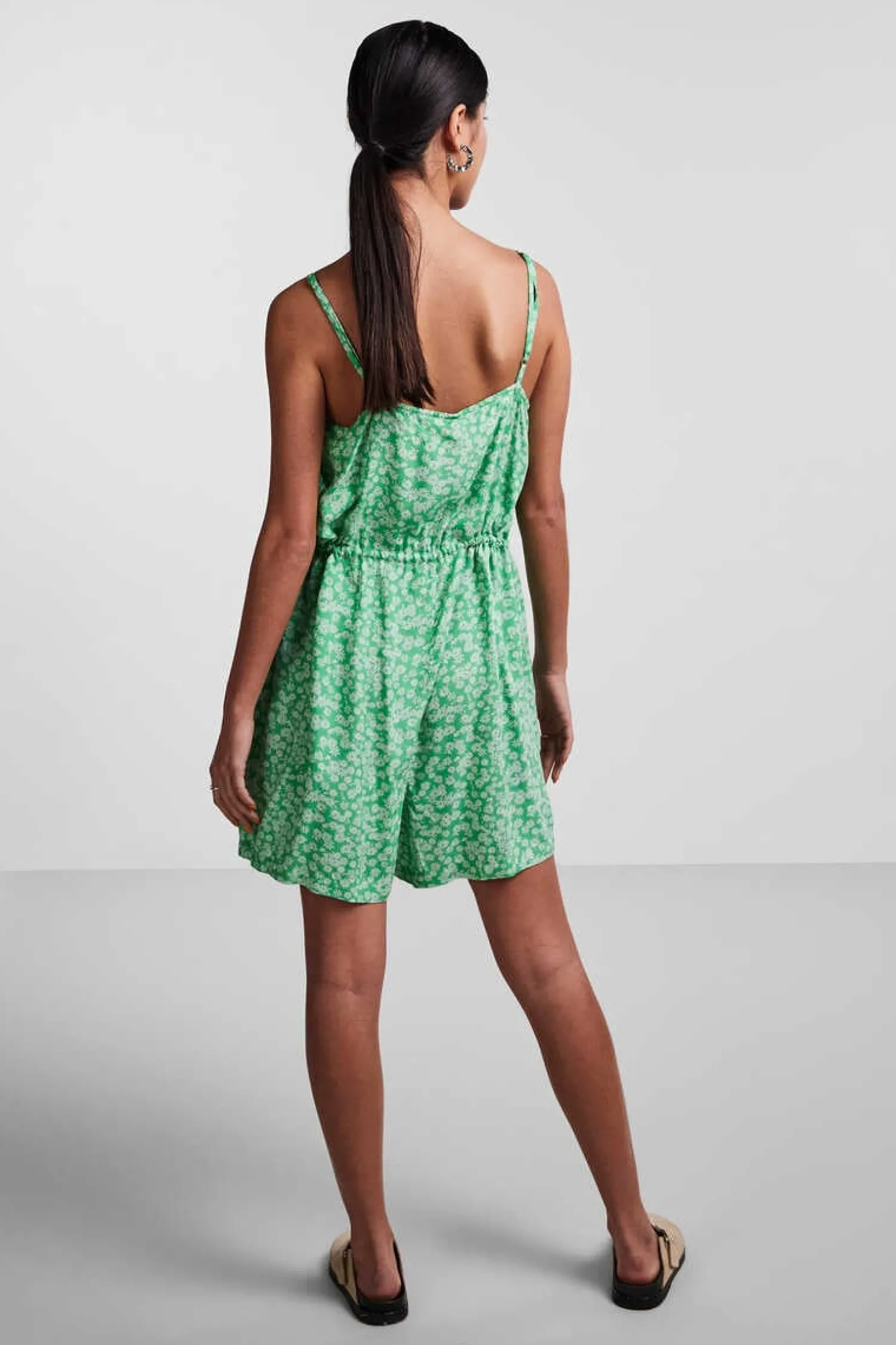 Macacao Curto De Alcas Com Decote Em Bico.