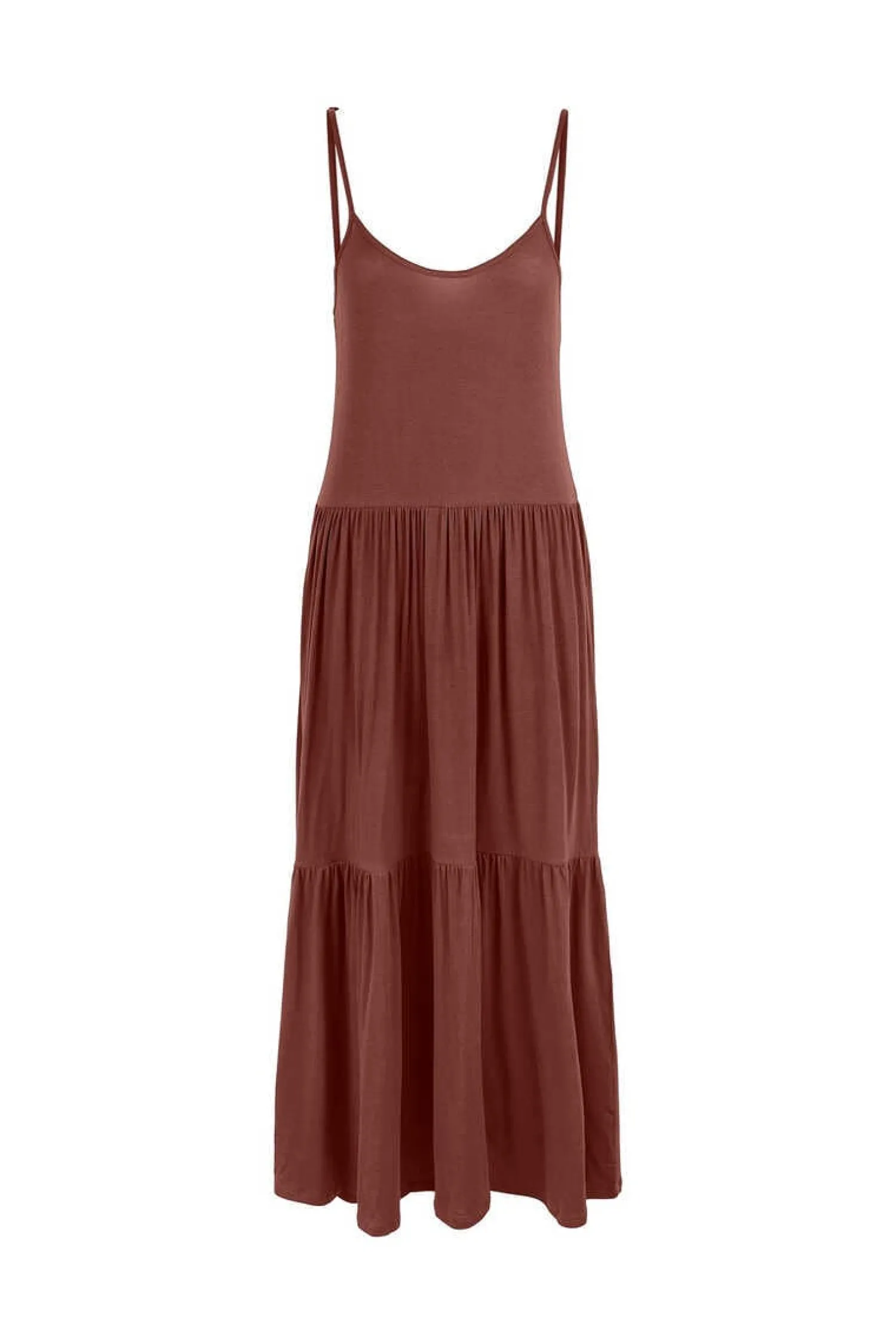 Vestido Comprido De Mulher, Com Decote E Acabamento Em Folho. Com Alcas.