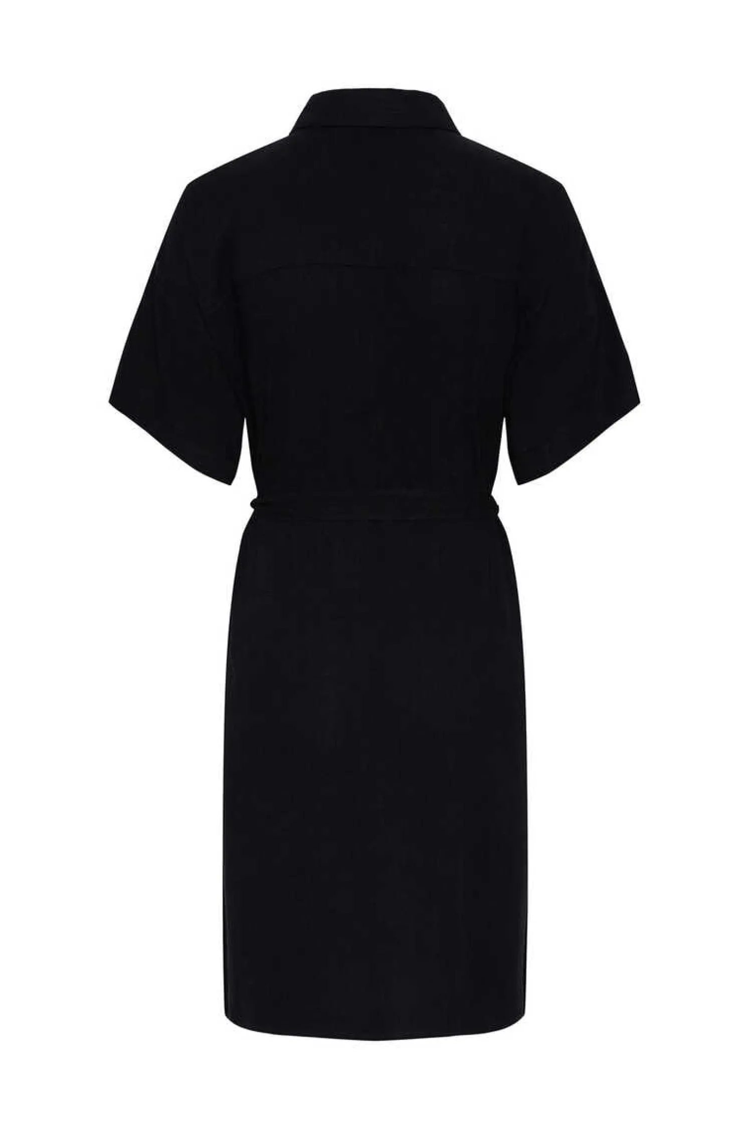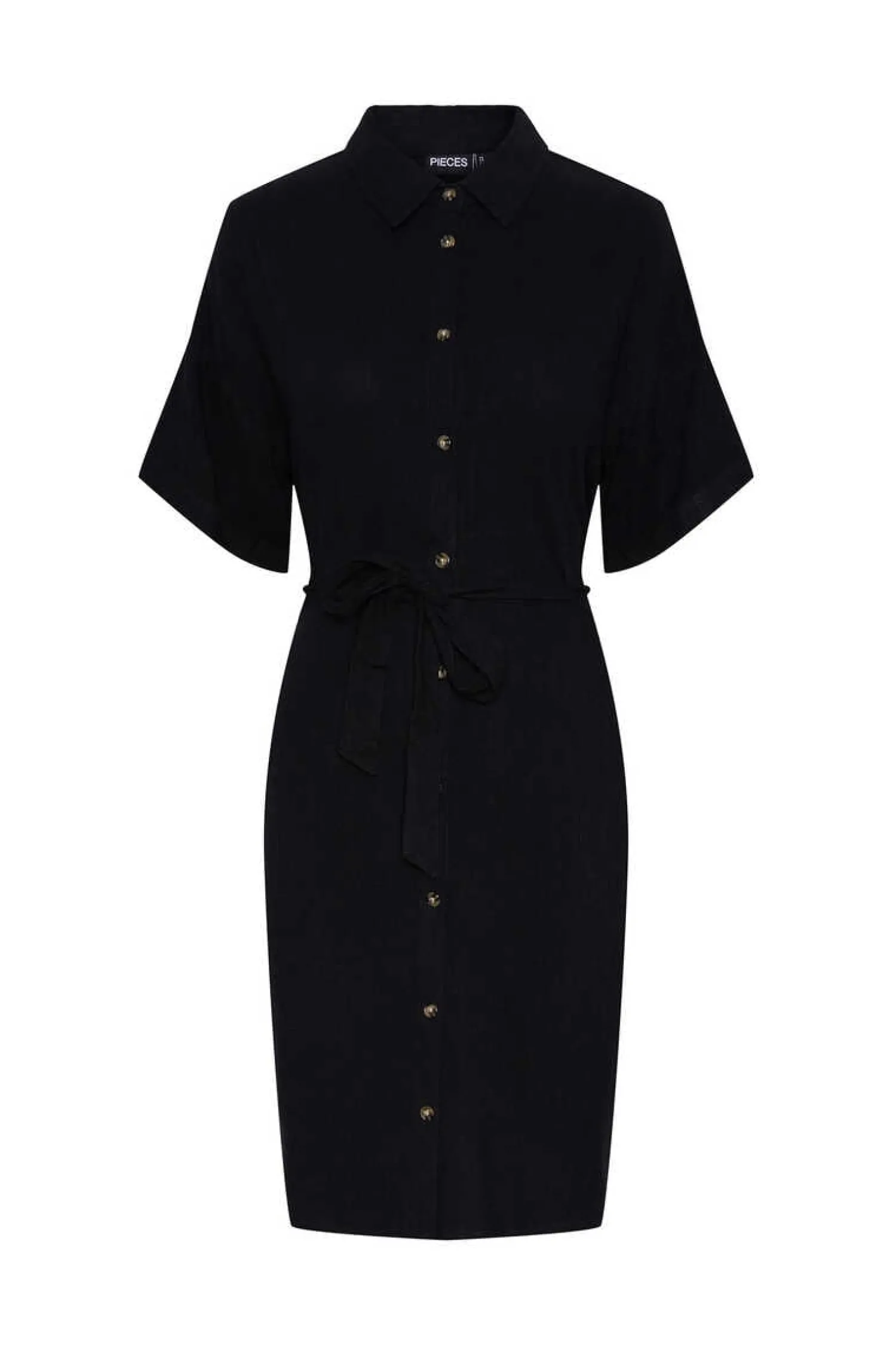 Vestido Curto Abotoado Na Parte Frontal, Detalhe De Laco Na Cintura E Manga Curta. Gola Camiseira.