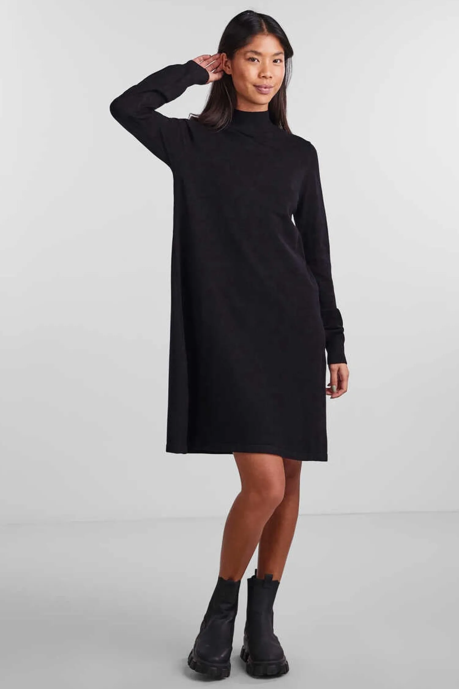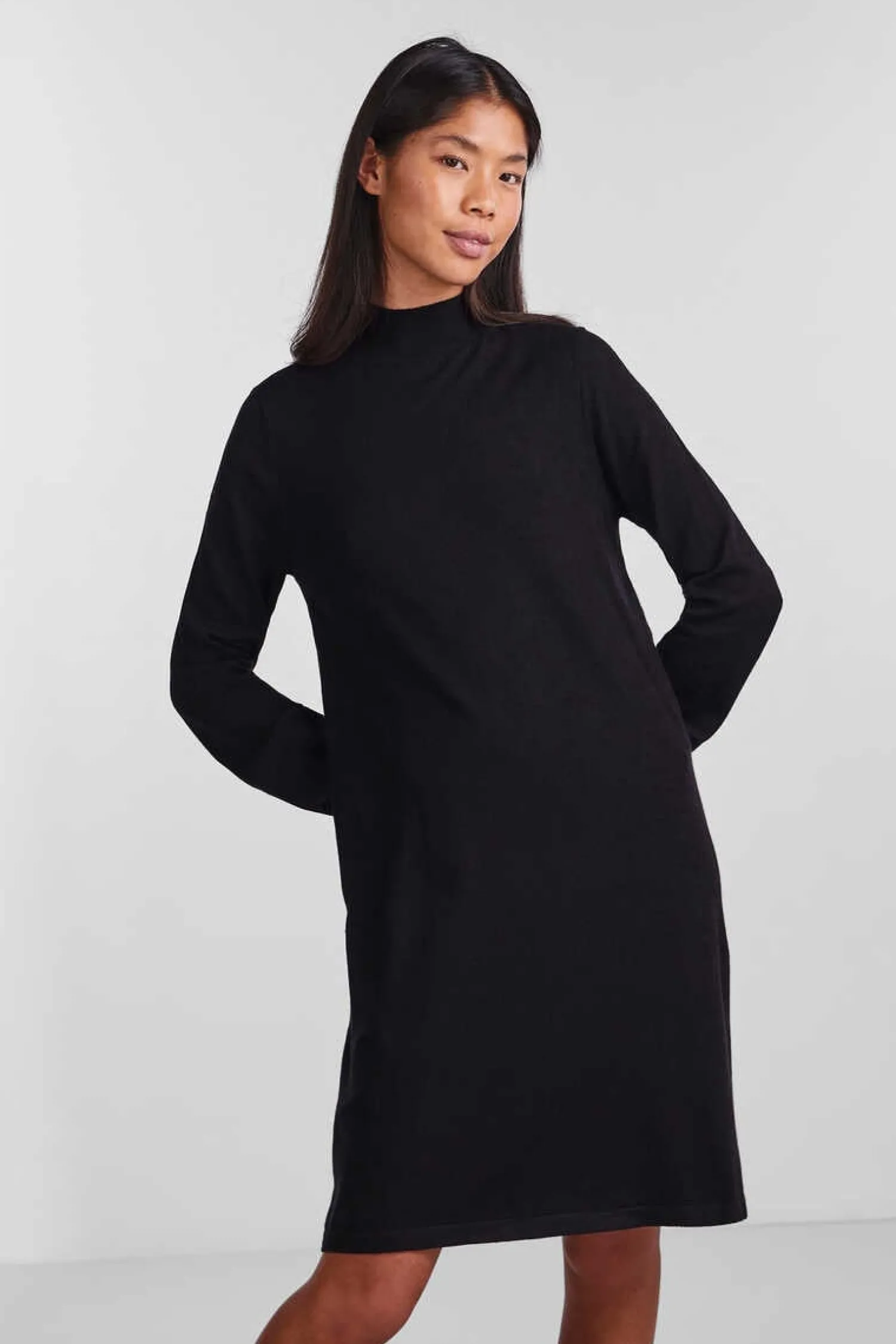 Vestido Midi De Malha Suave, Manga Comprida E Gola Alta. Detalhe Debruado Na Gola, Nos Punhos E Na Bainha.