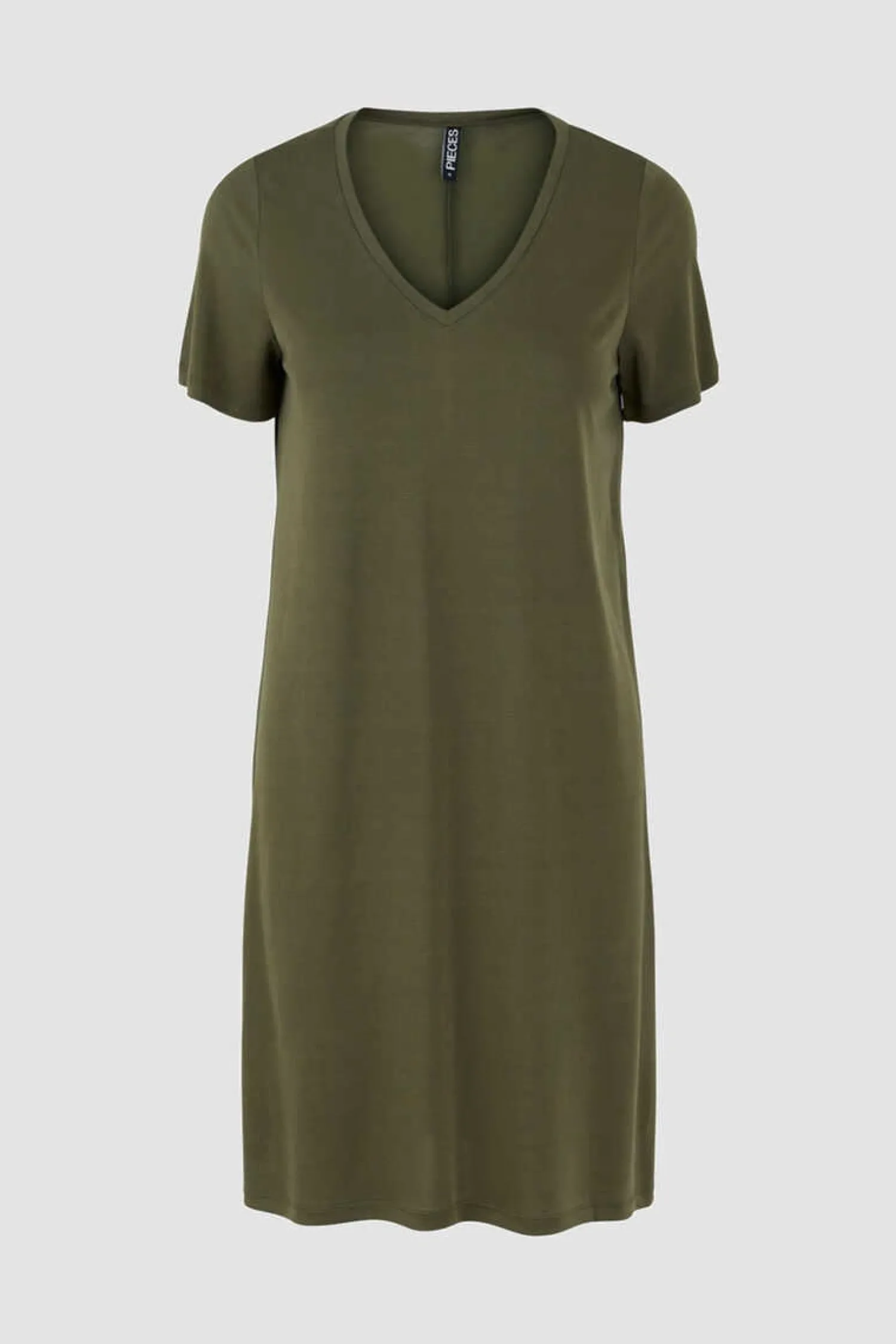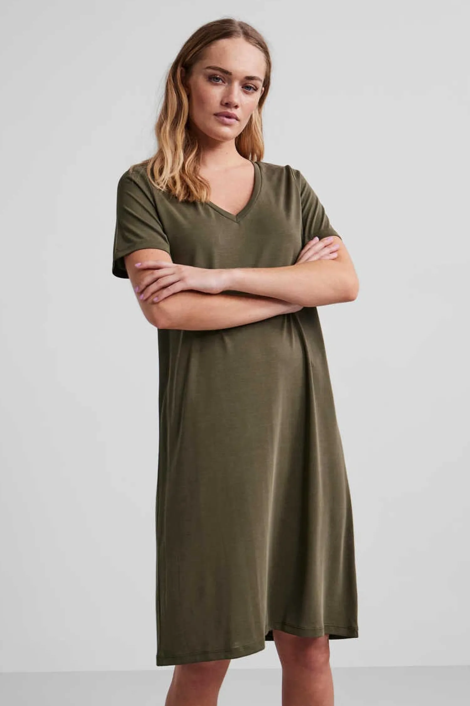 Vestido Midi De Tencel, Manga Curta E Decote Em Bico. Tecido Suave.
