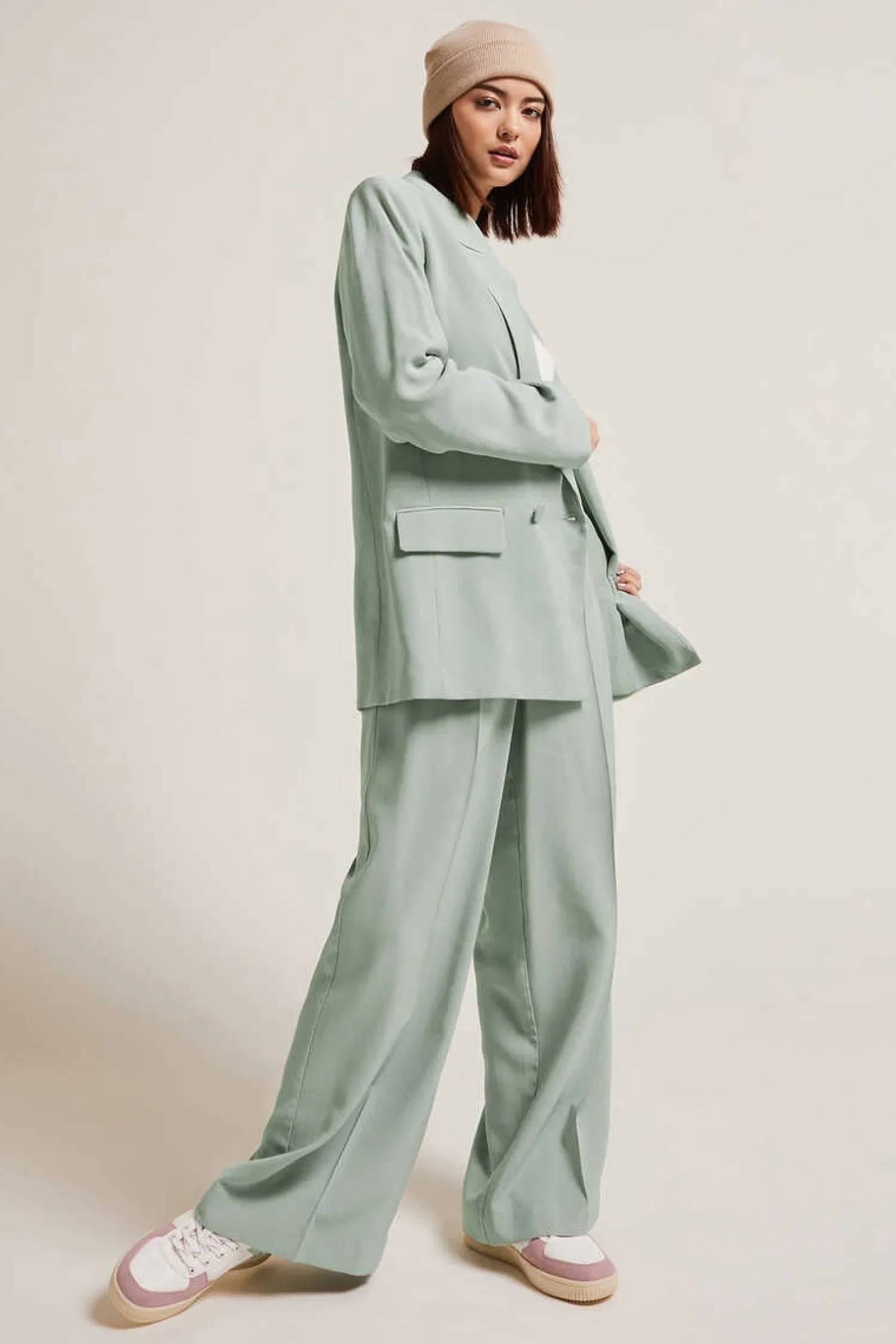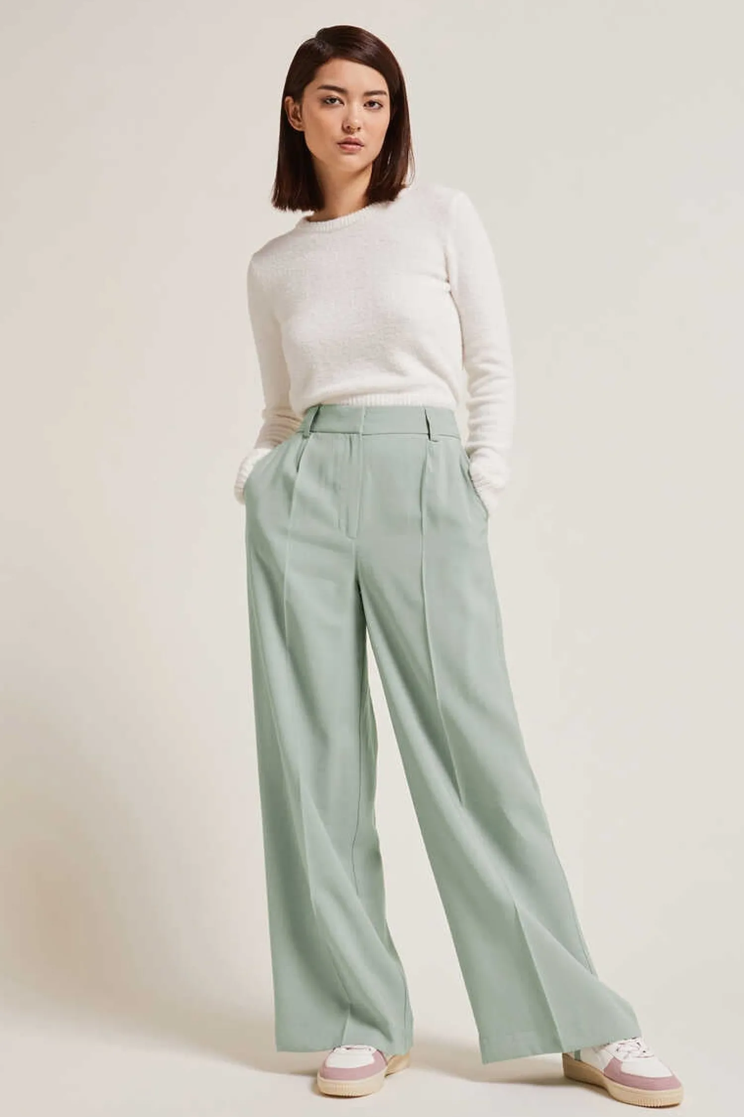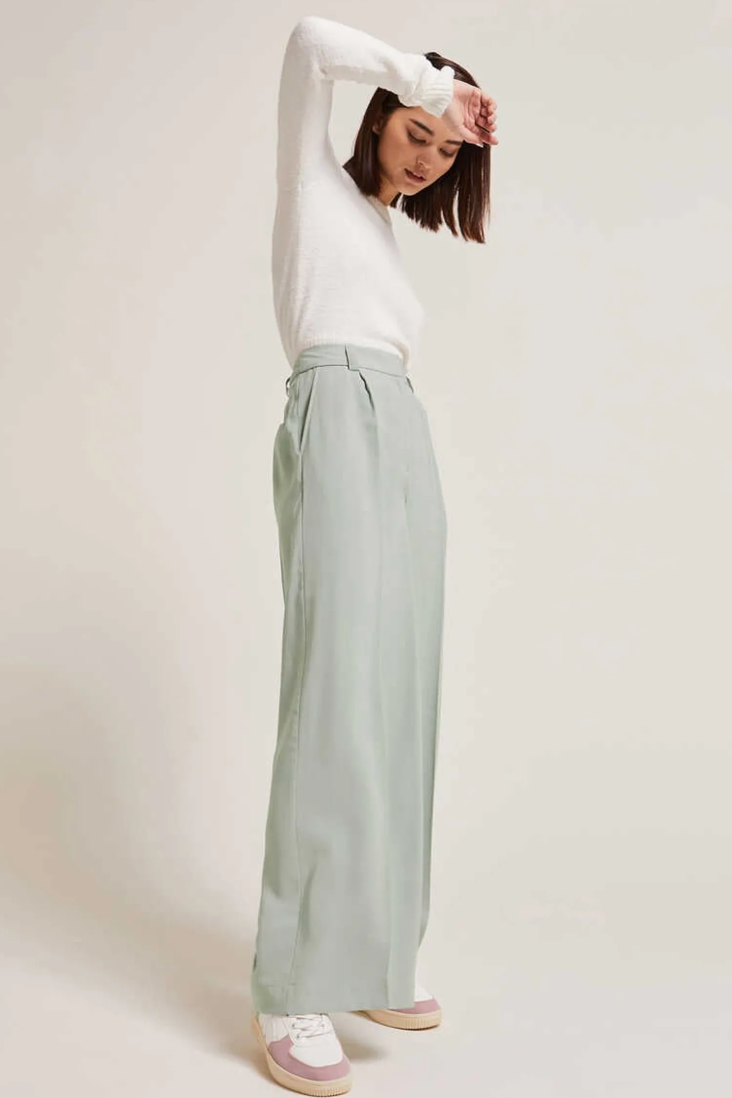 – Calcas Largas De Lona Vaporoso Verde-Claro.